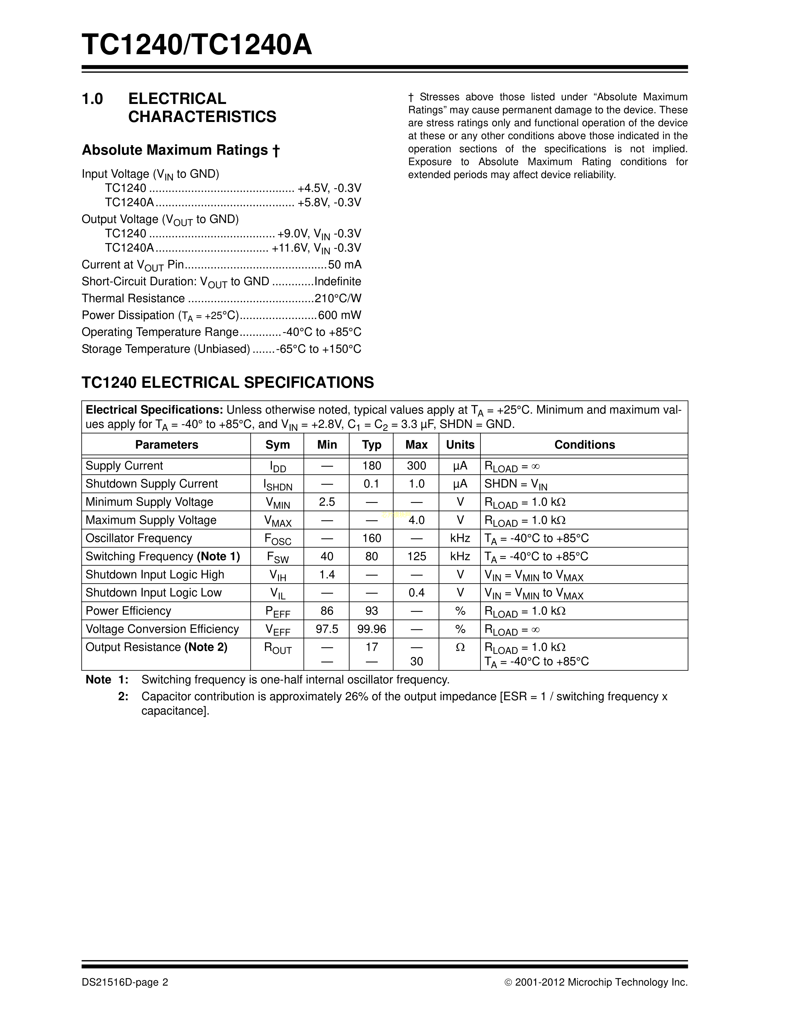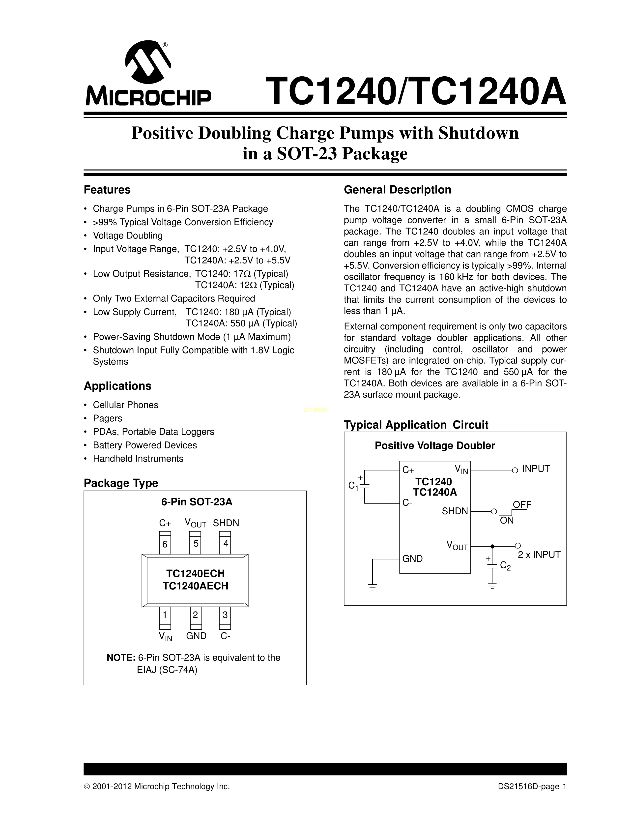 TC1240AECHTR数据手册SOT-23-6封装MICROCHIP(美国微芯)PDF规格书,中英