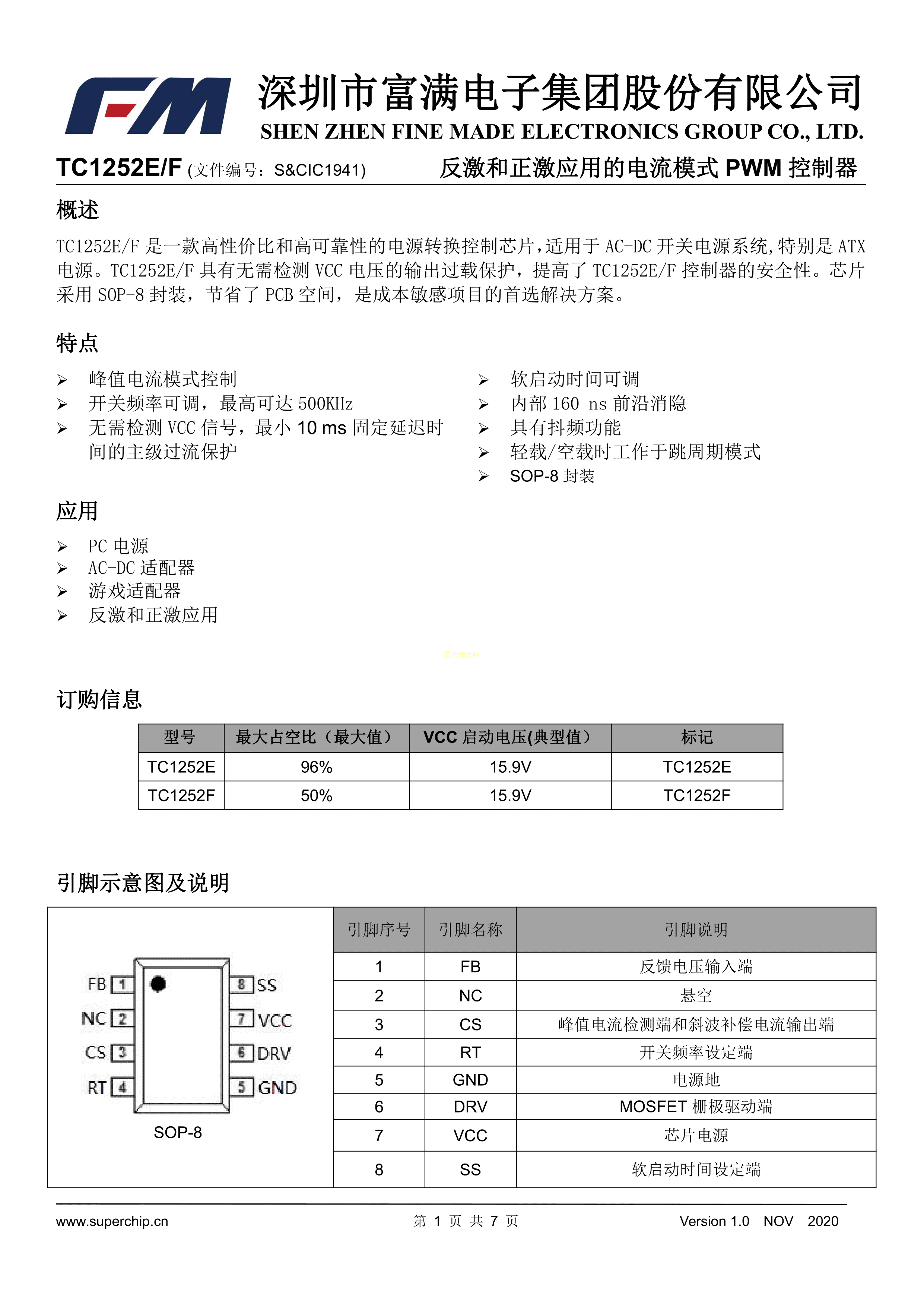 TC1252E数据手册SOP-8封装FM(富满)PDF规格书,中英文下载