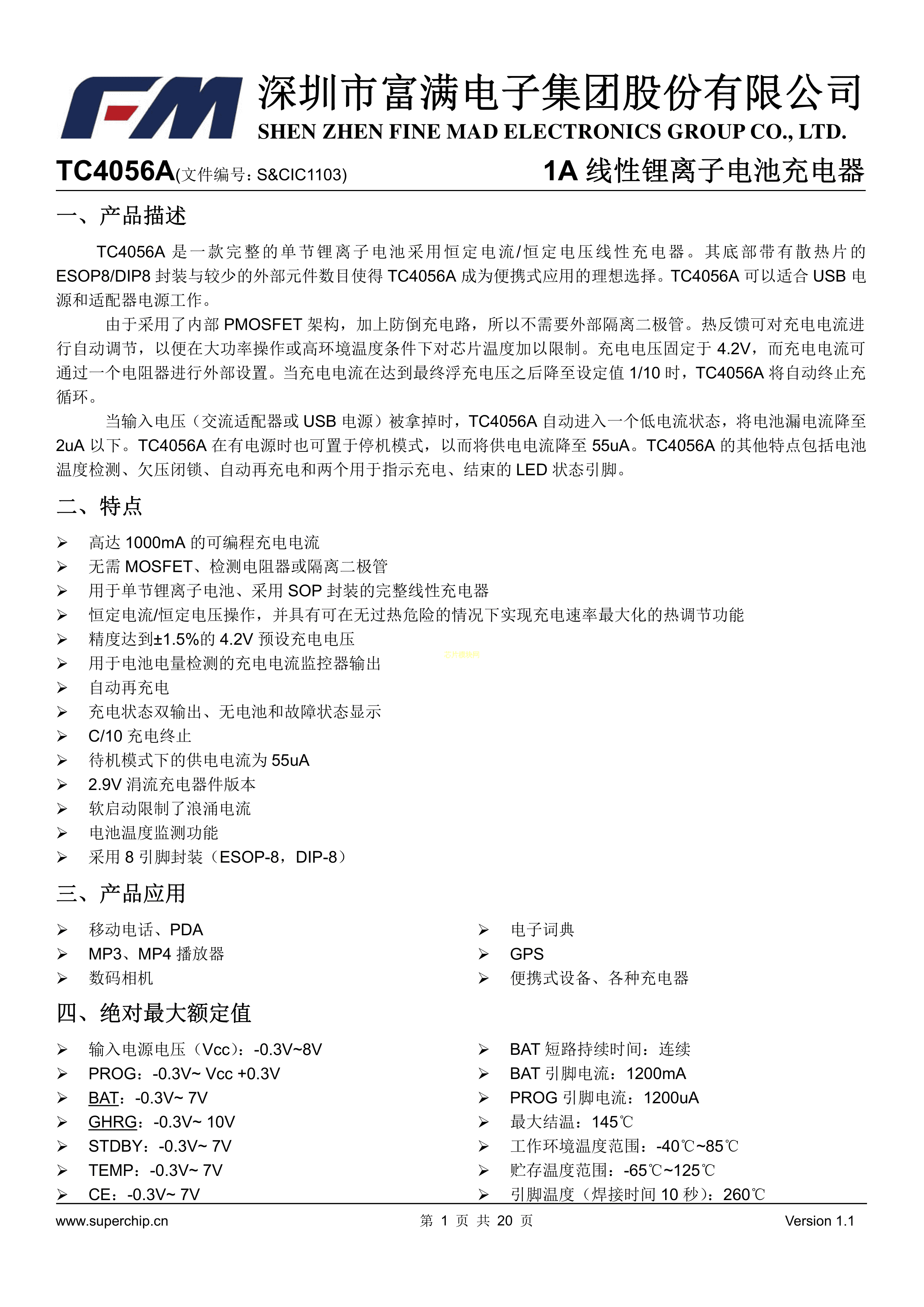 TC4056AAPDF规格书,中英文下载