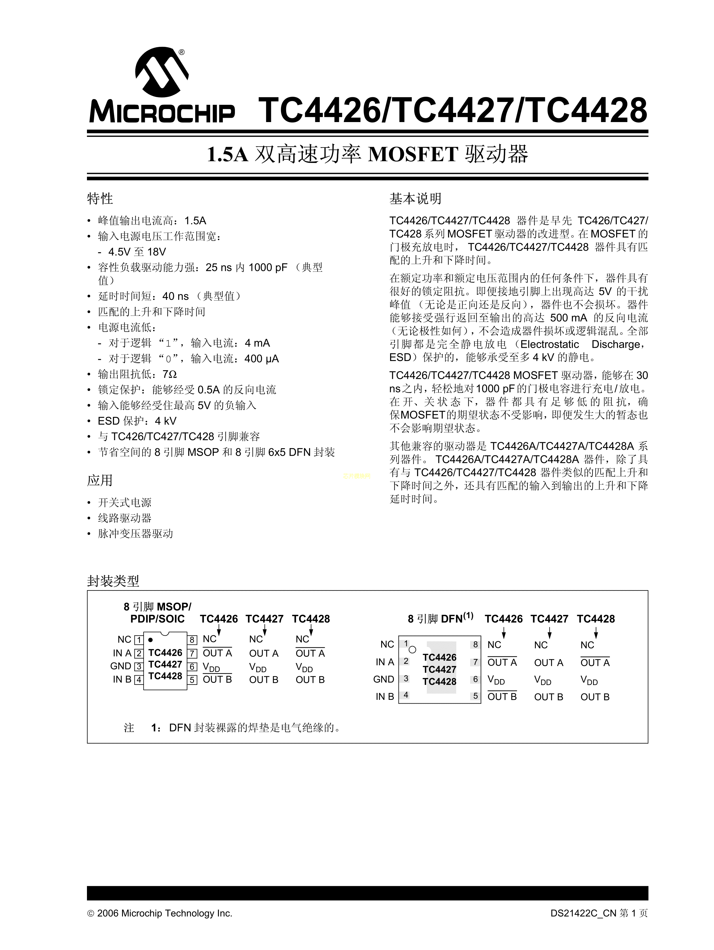TC4426EOA713数据手册SOIC-8_150mil封装MICROCHIP(美国微芯)PDF规格书,中英文下载
