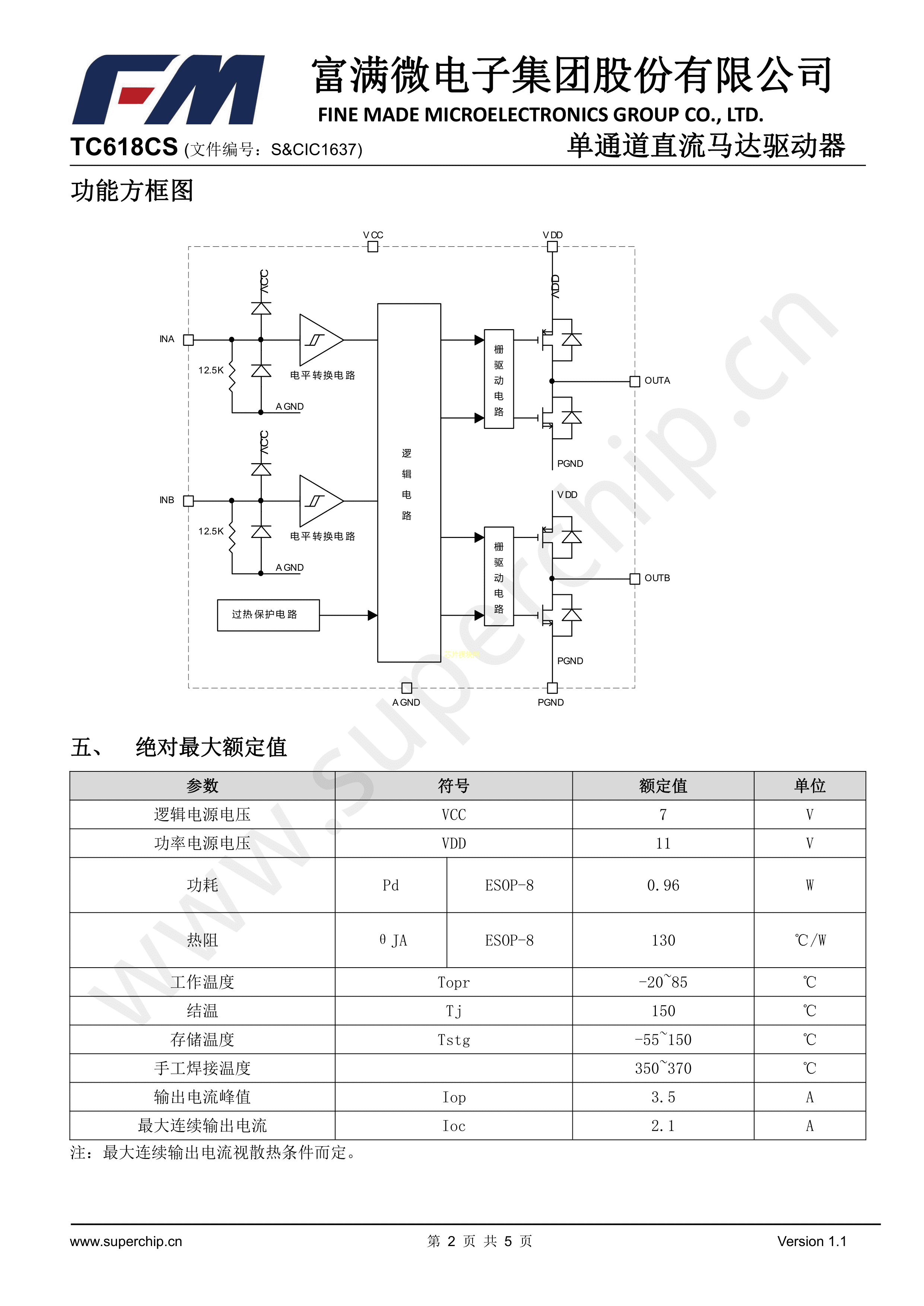 TC618CS数据手册ESOP-8封装FM(富满)PDF规格书,中英文下载
