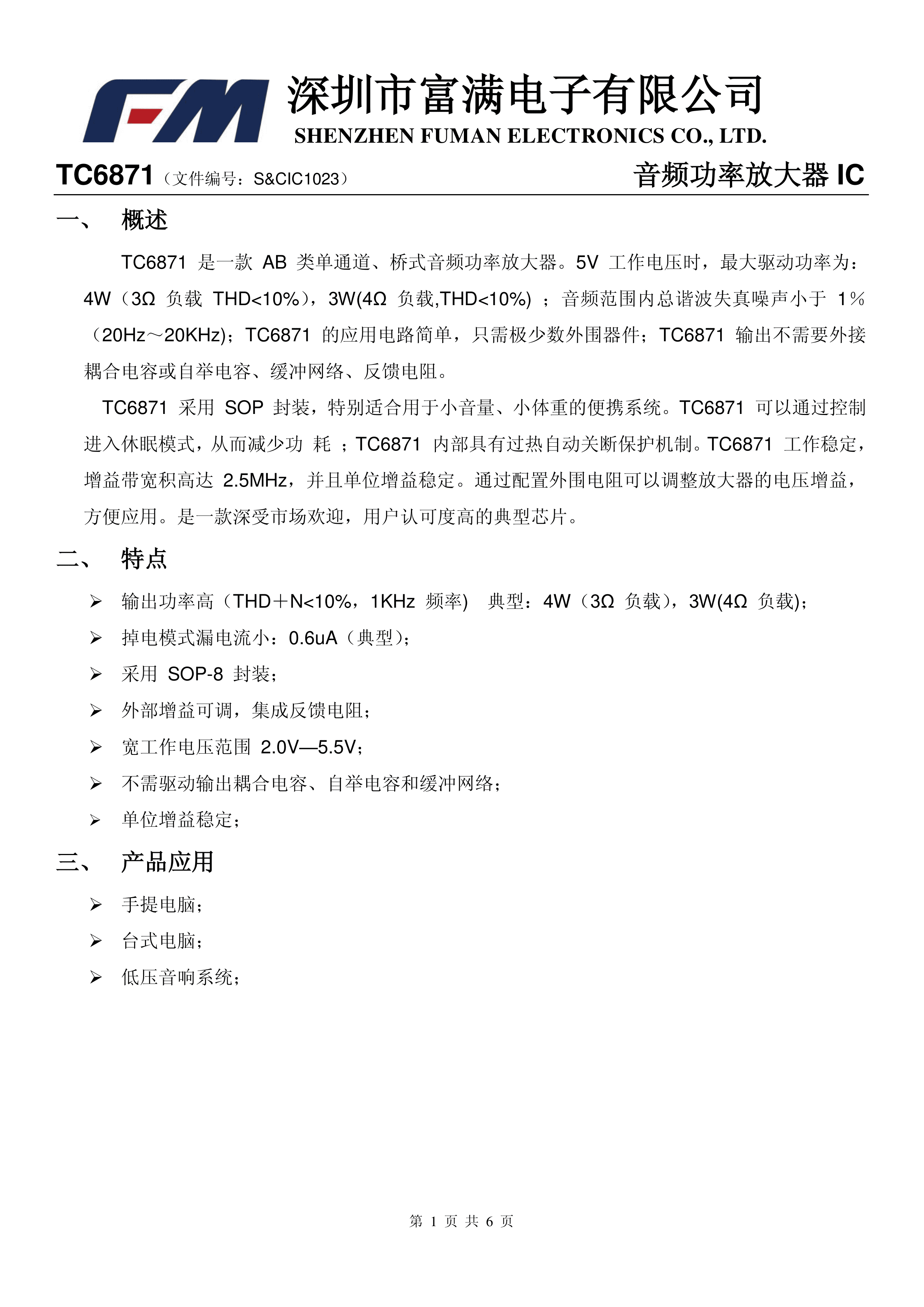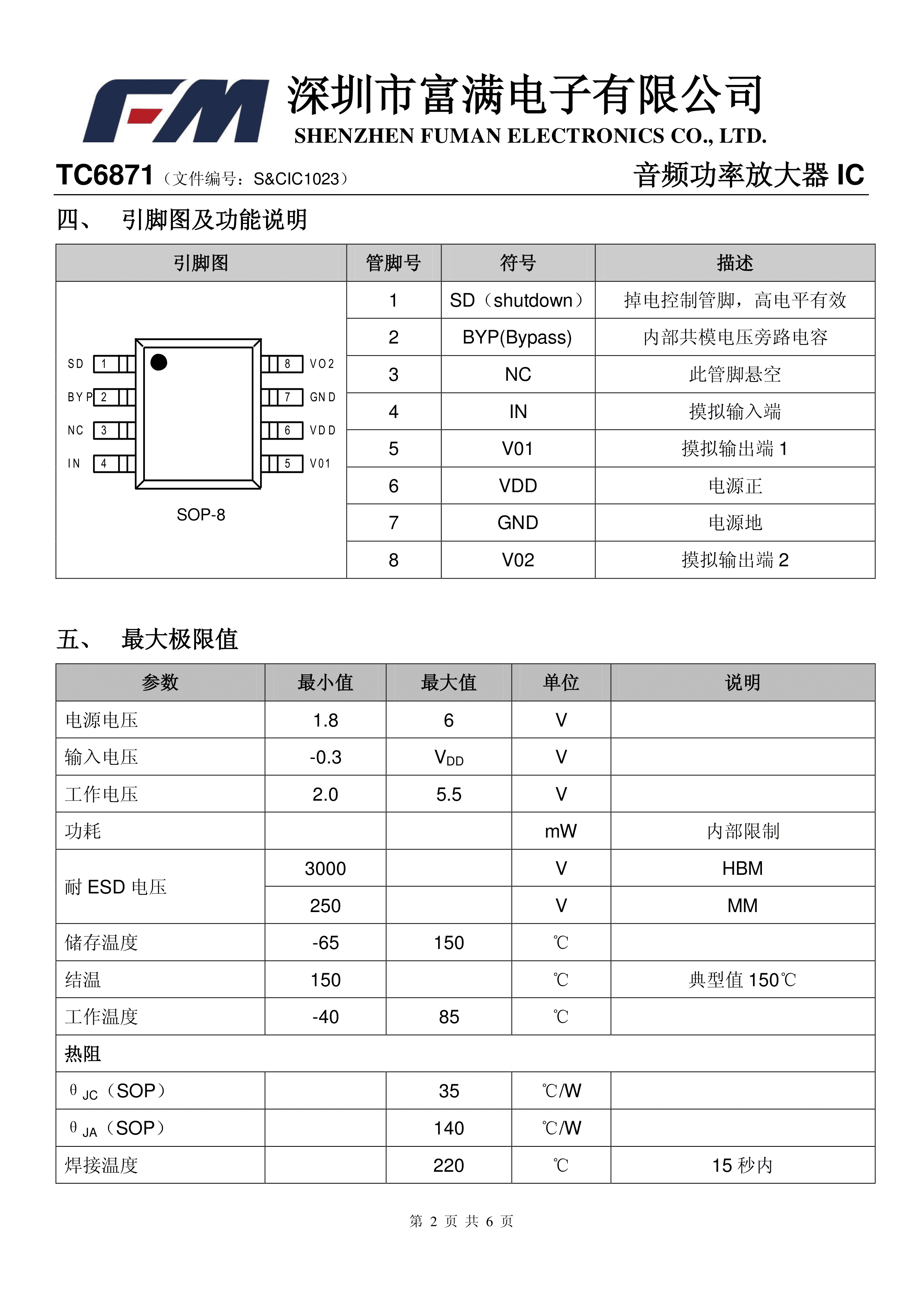 TC6871数据手册SOIC-8_150mil封装FM(富满)PDF规格书,中英文下载
