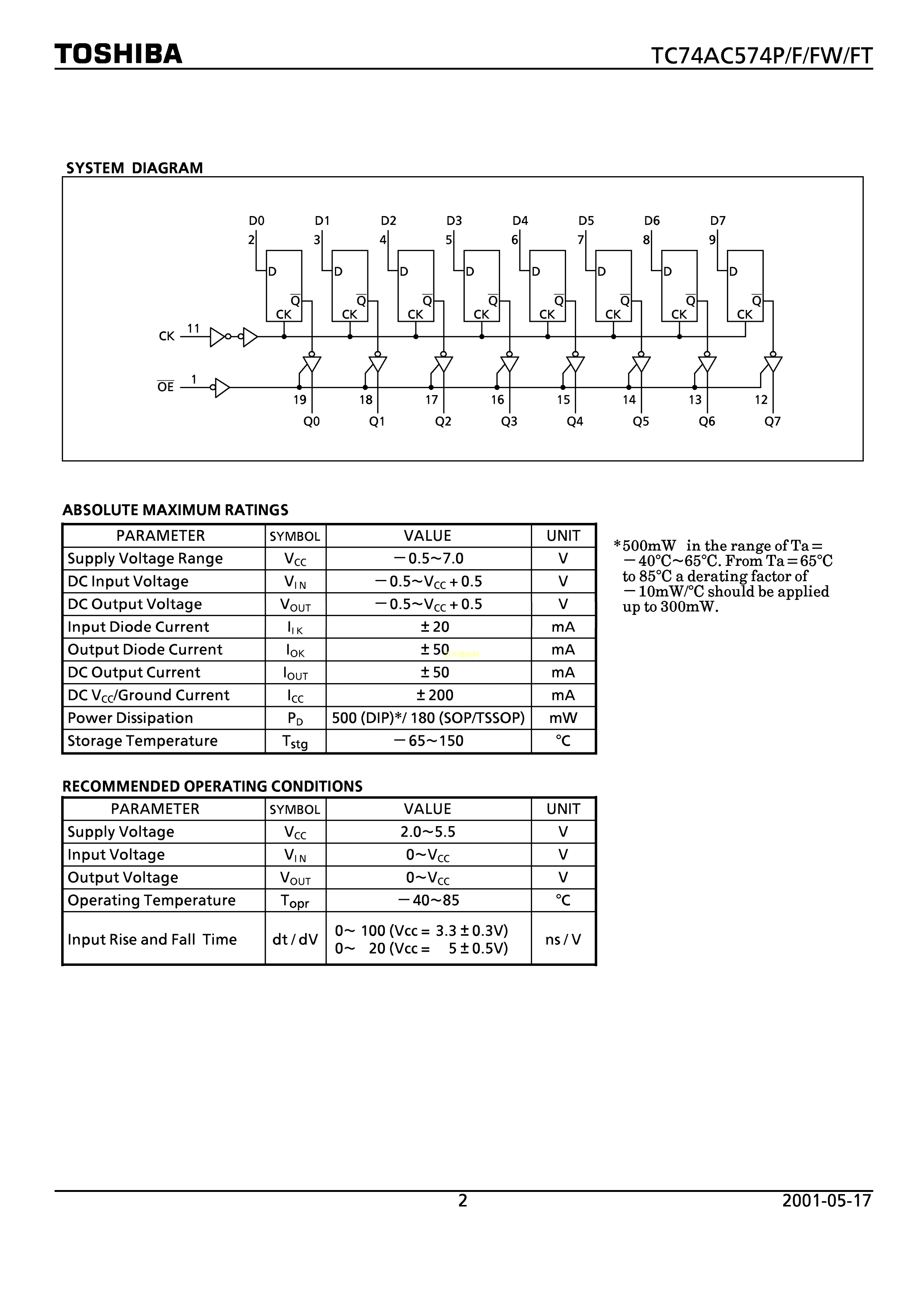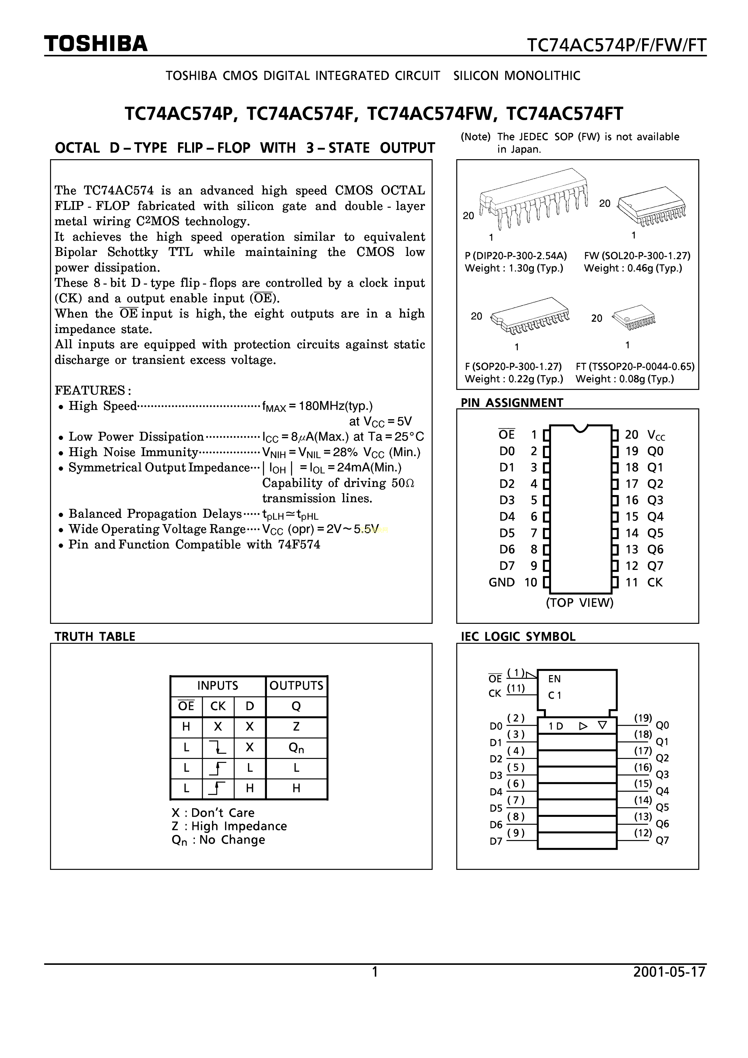 TC74AC574AF数据手册SOP-20_208mil封装TOSHIBA(东芝)PDF规格书,中英