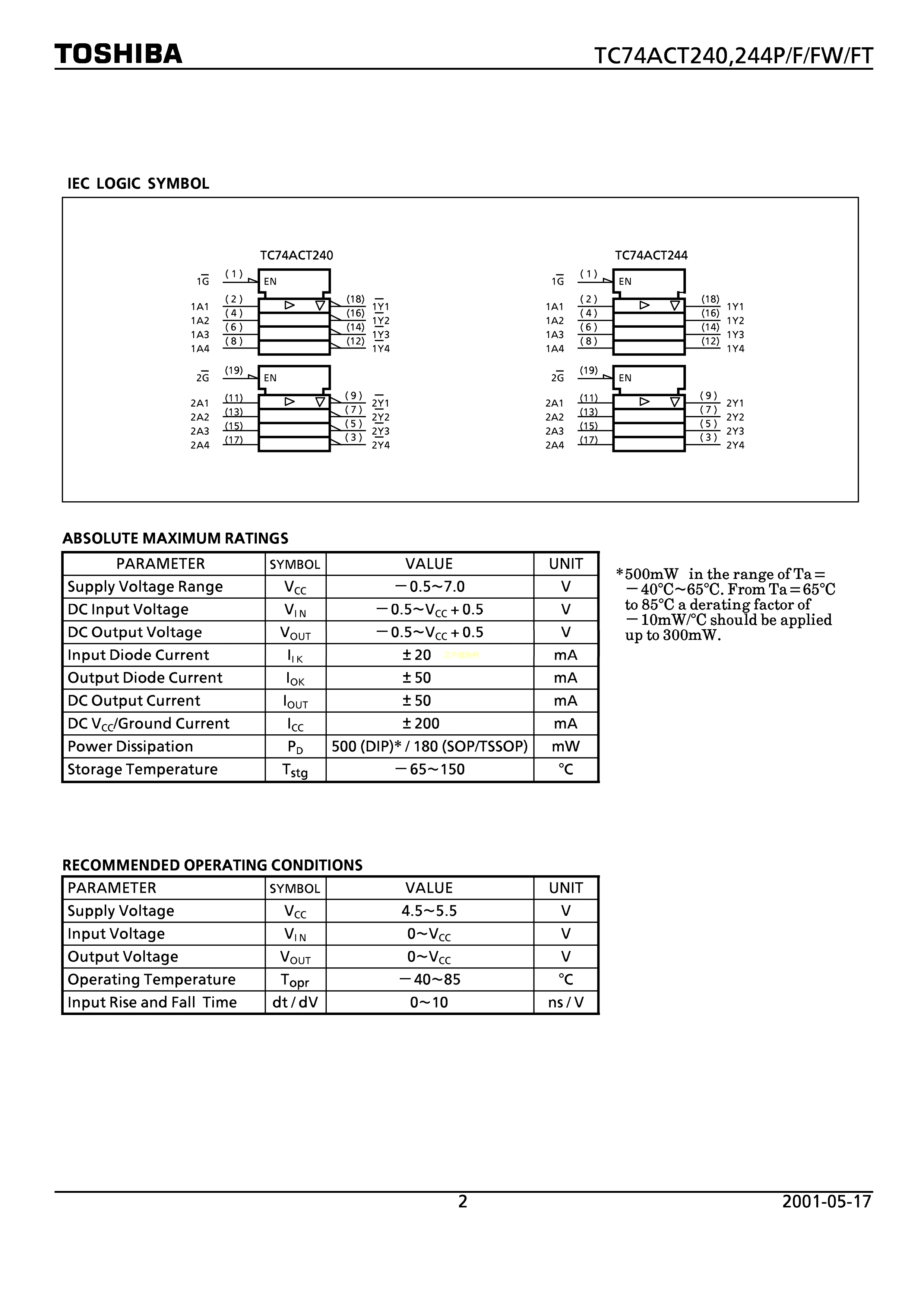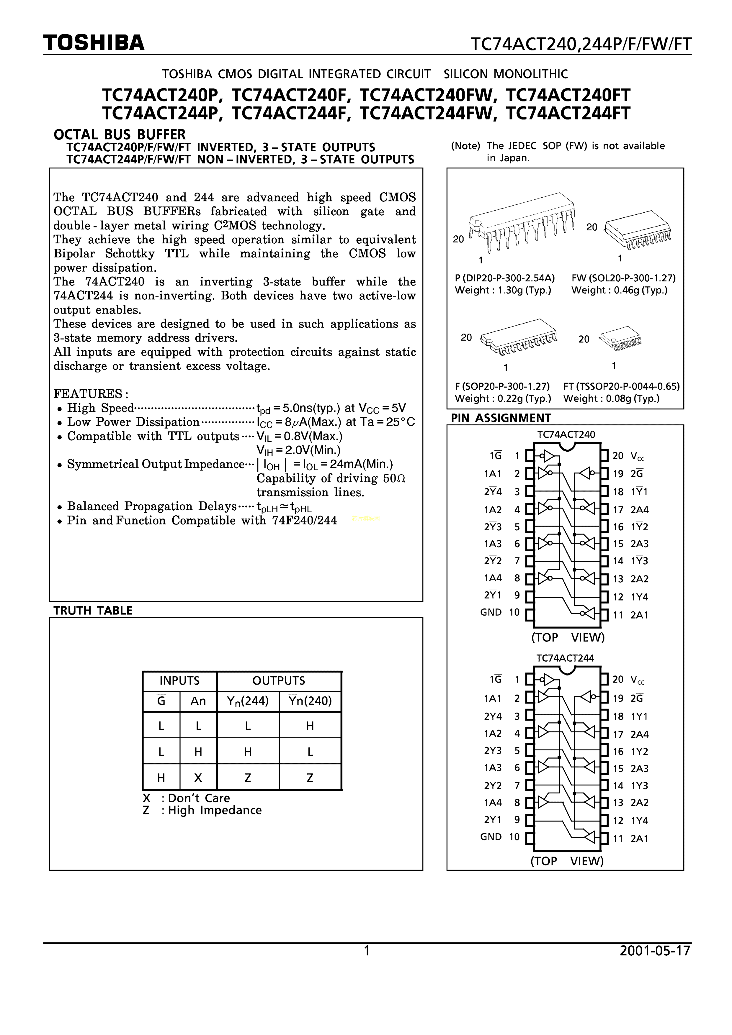 TC74ACT240FEL数据手册SOP-20_208mil封装TOSHIBA(东芝)PDF规格书,