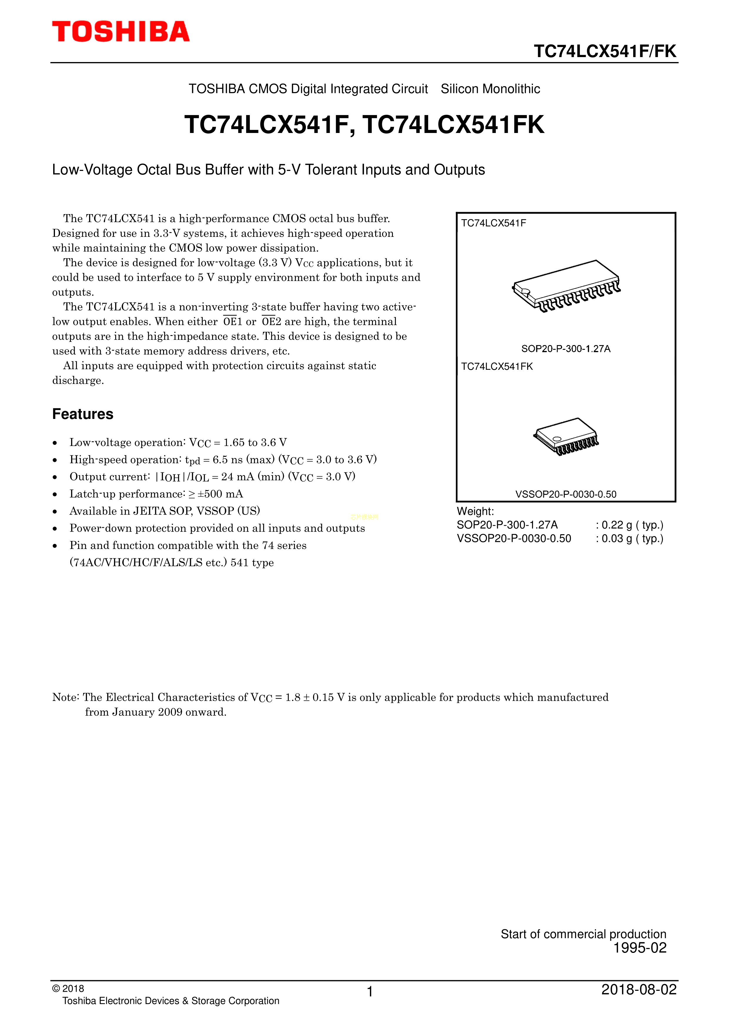 TC74LCX541FK(ELK)数据手册VSSOP-20封装TOSHIBA(东芝)PDF规格书,中