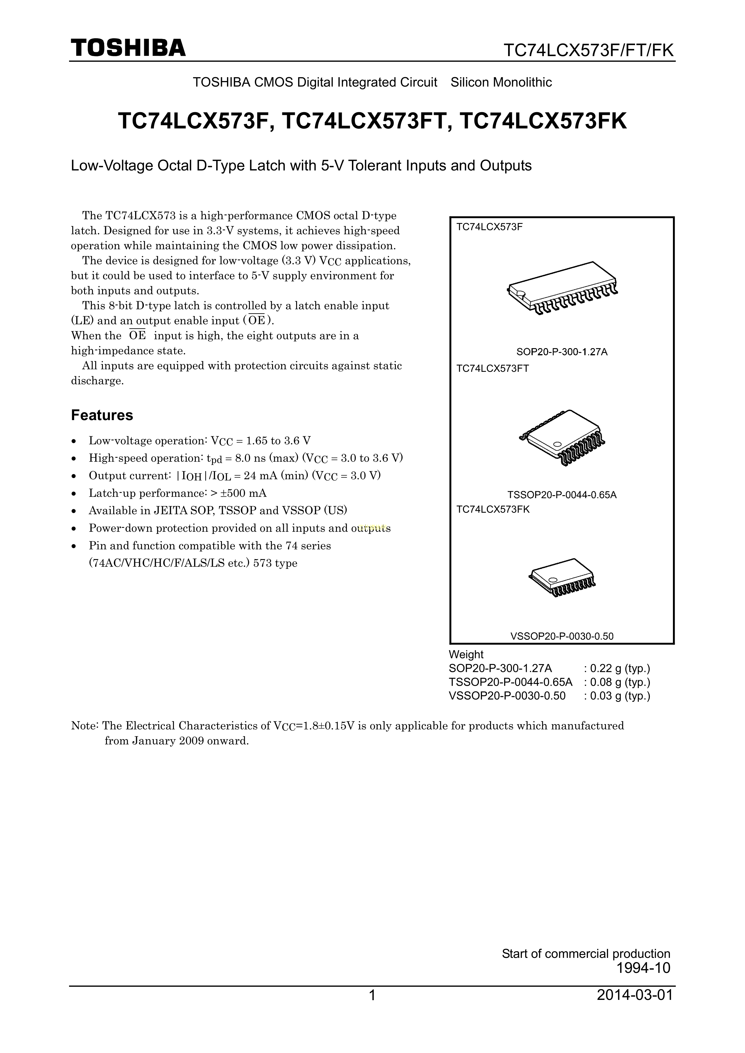 TC74LCX573AF数据手册SOP-20_208mil封装TOSHIBA(东芝)PDF规格书,中