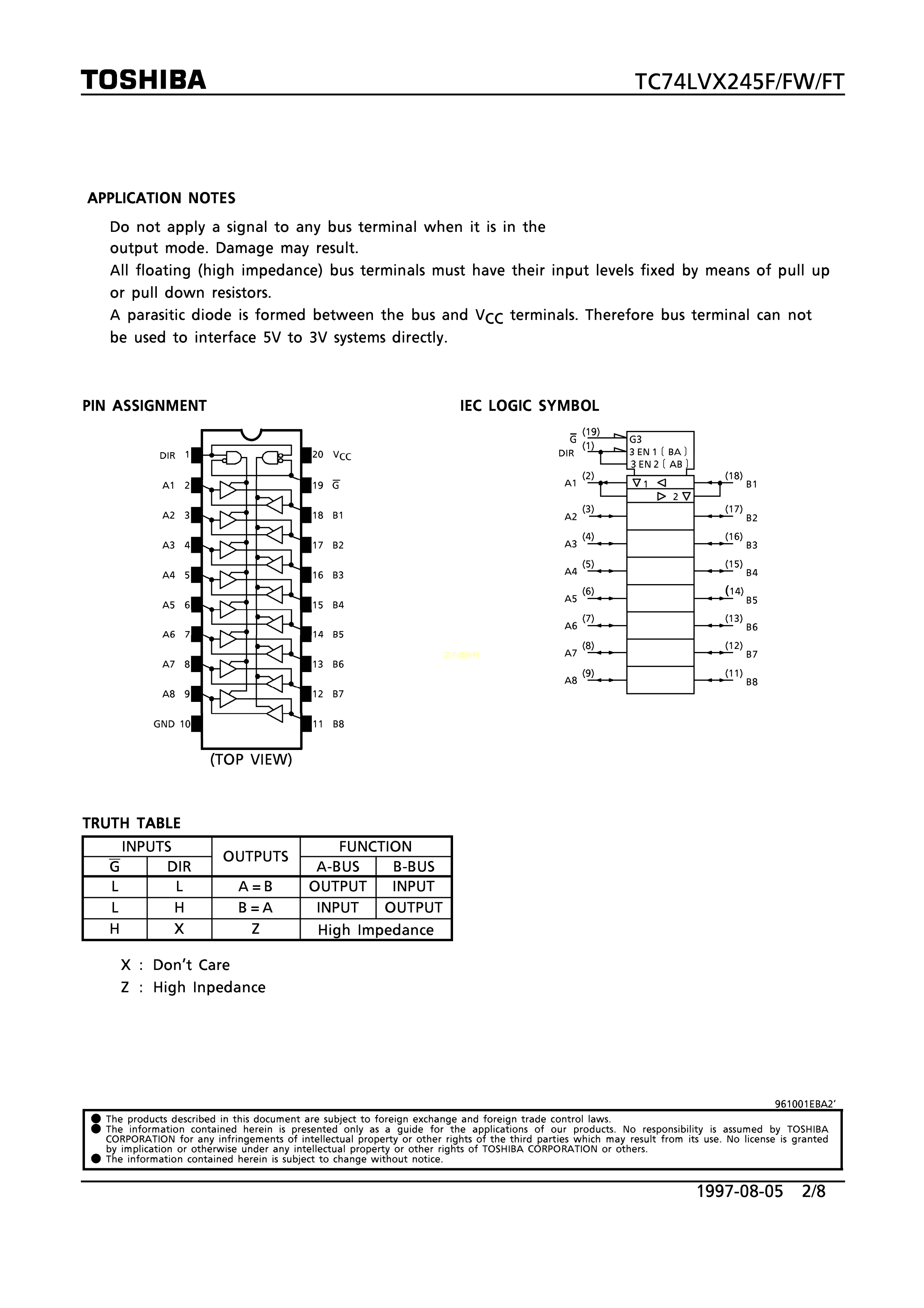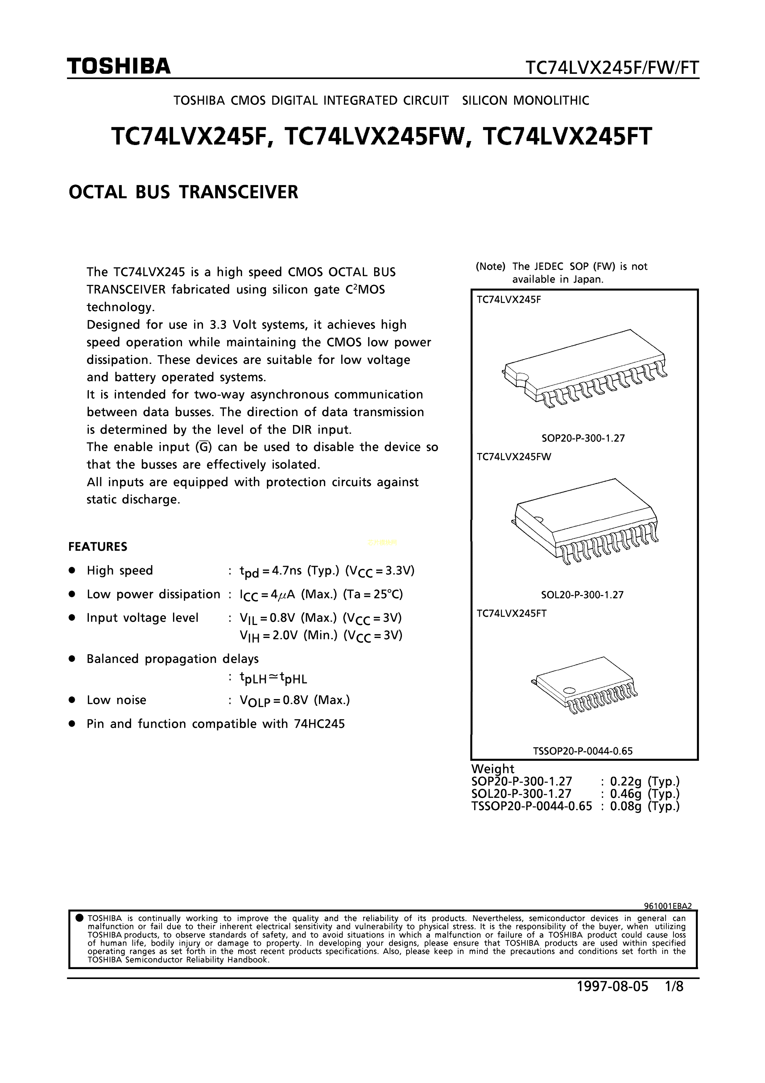 TC74LVX245FT数据手册TSSOP-20封装TOSHIBA(东芝)PDF规格书,中英文下载