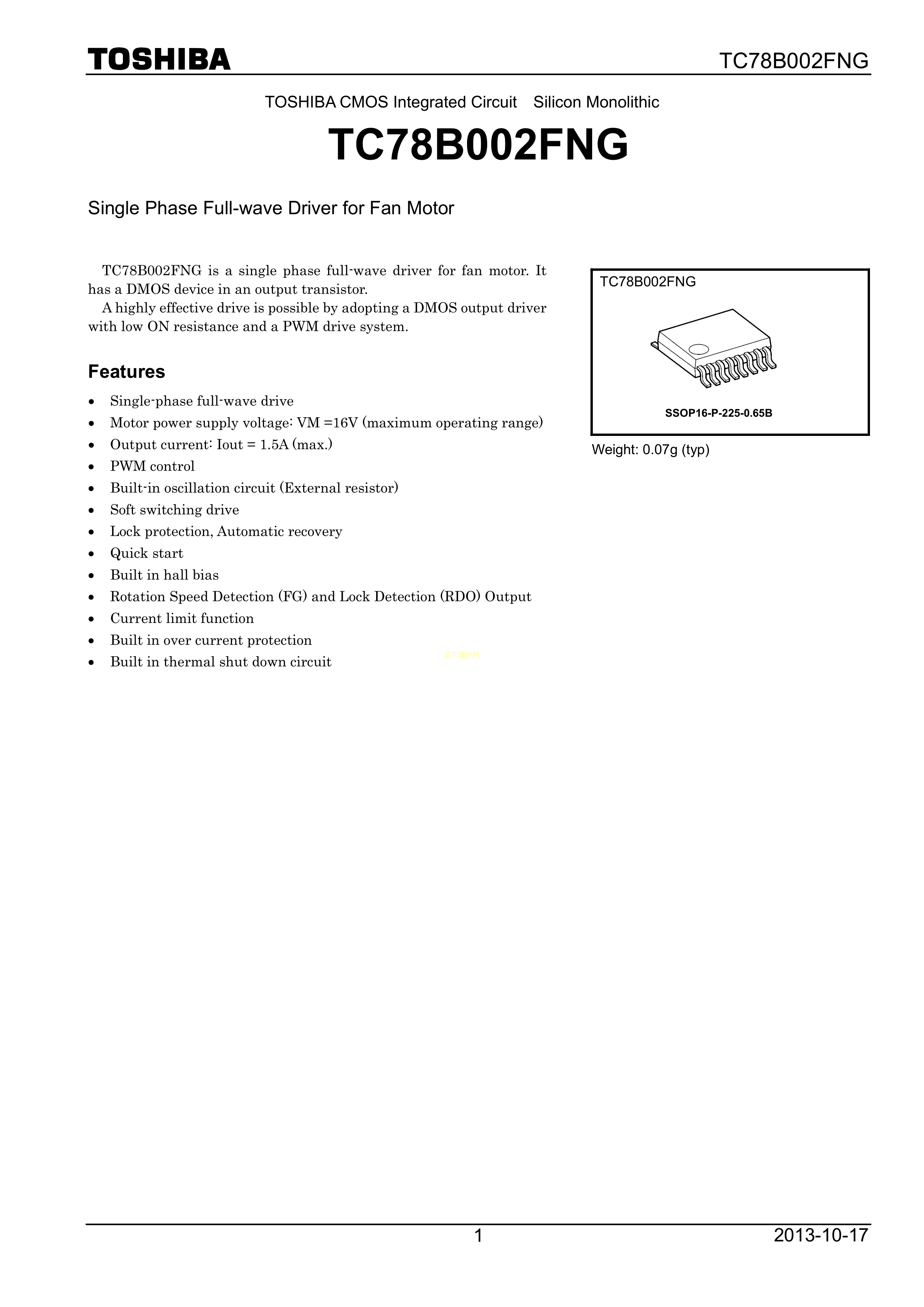 TC78B002FNGEL数据手册SSOP-16封装TOSHIBA(东芝)PDF规格书,中英文下载