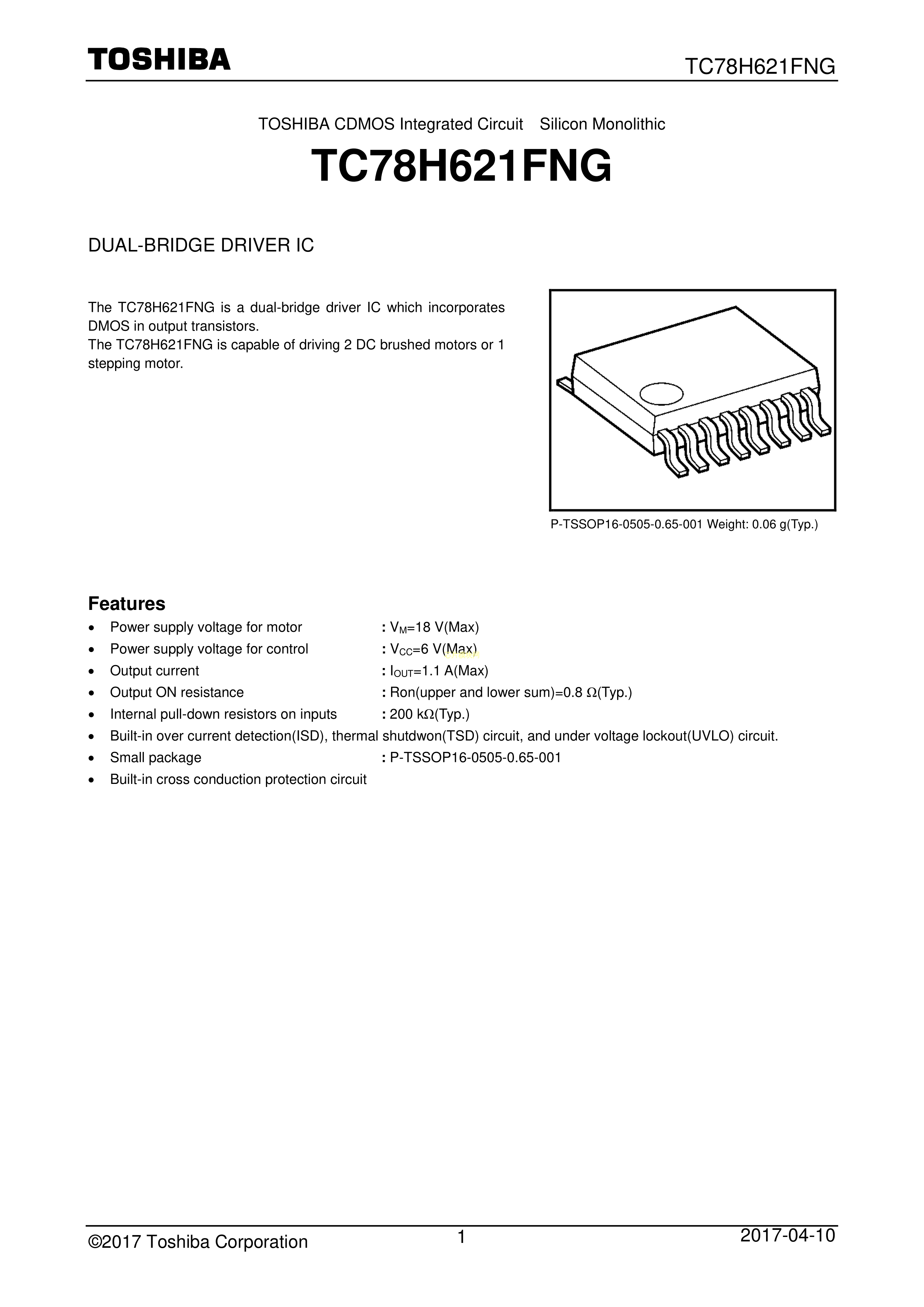 TC78H621FNGEL数据手册TSSOP-16封装TOSHIBA(东芝)PDF规格书,中英文下载