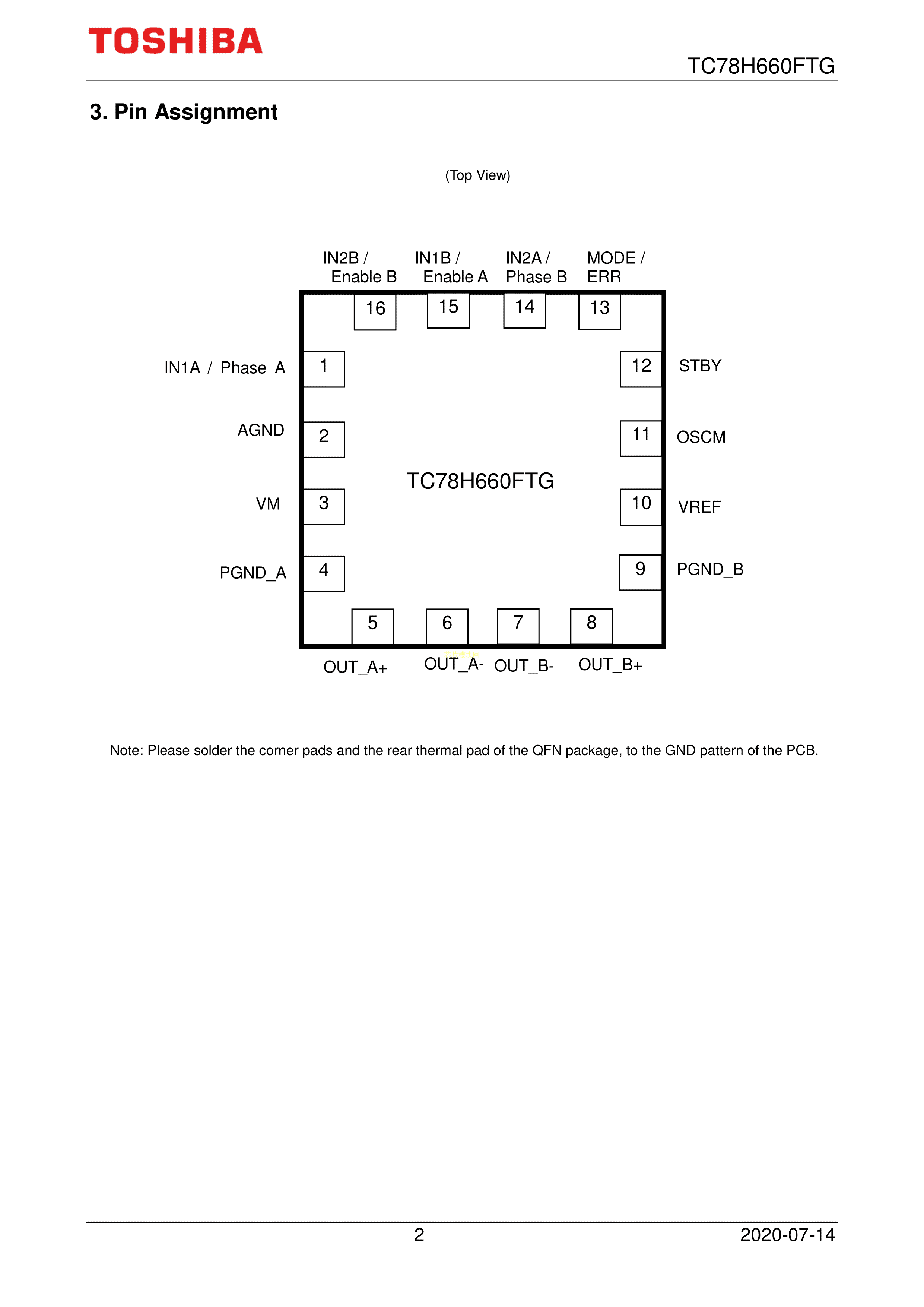 TC78H660FTGEL数据手册VQFN-16(3x3)封装TOSHIBA(东芝)PDF规格书,中