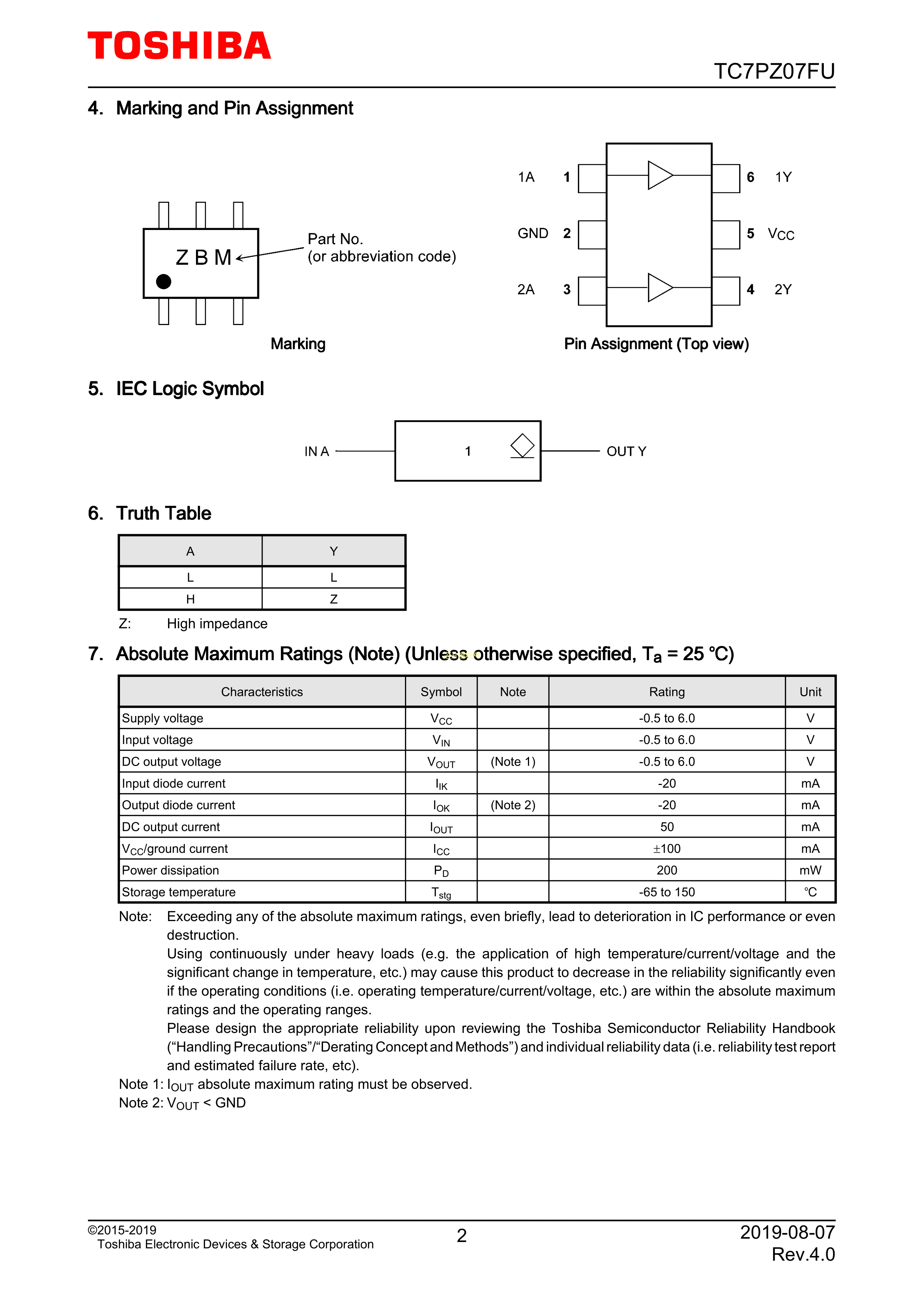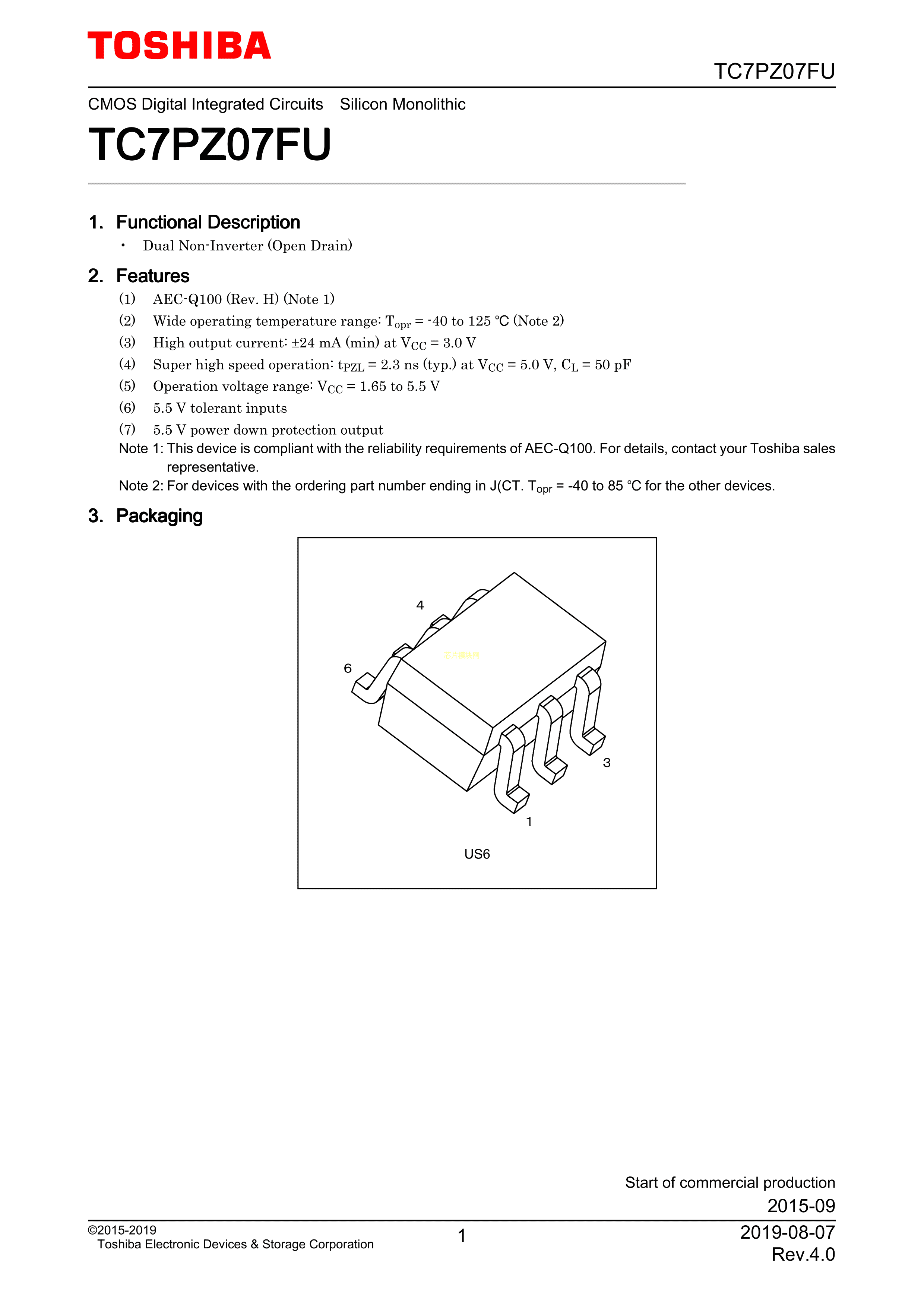 TC7PZ07FULJ(CT数据手册US6封装TOSHIBA(东芝)PDF规格书,中英文下载