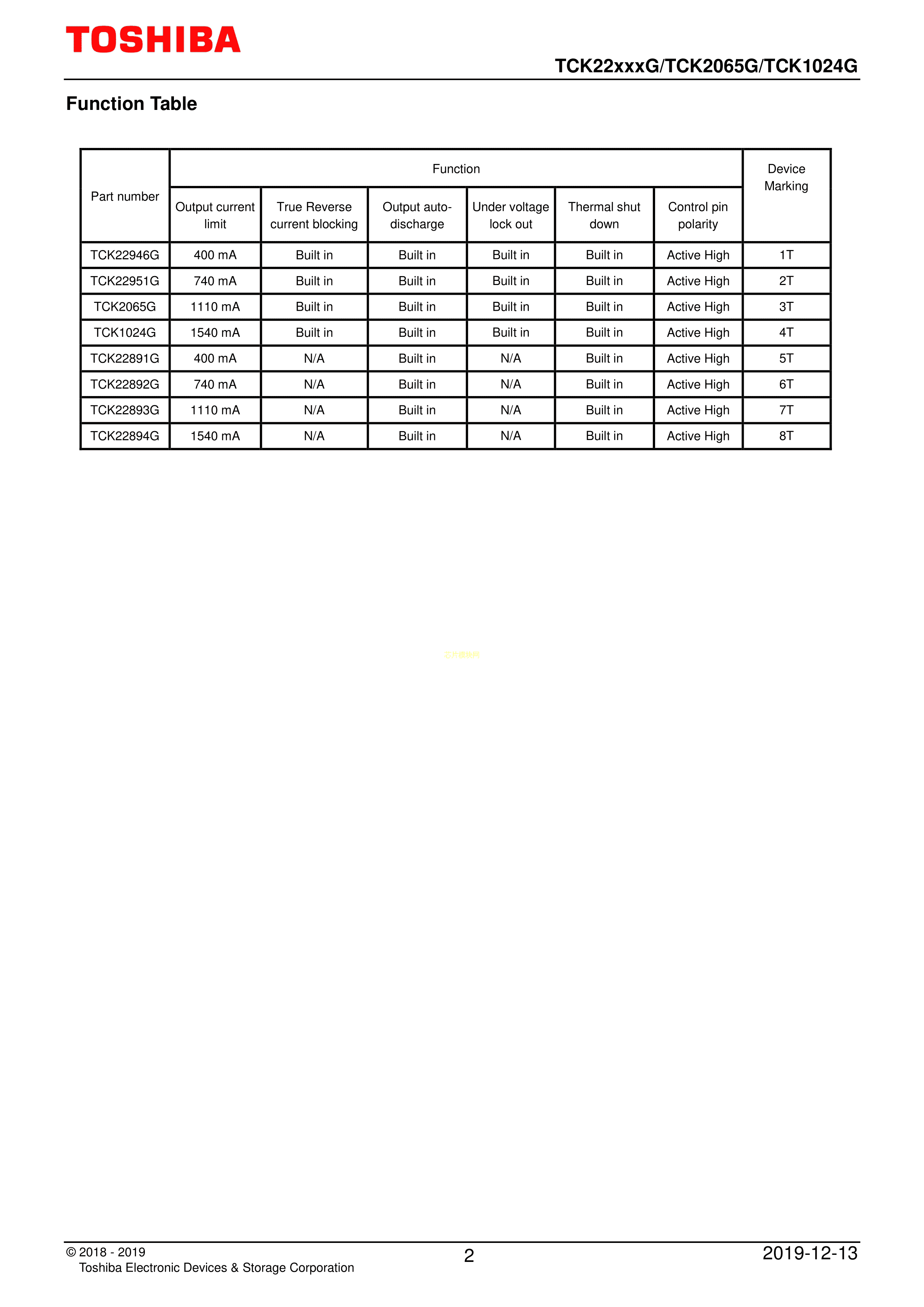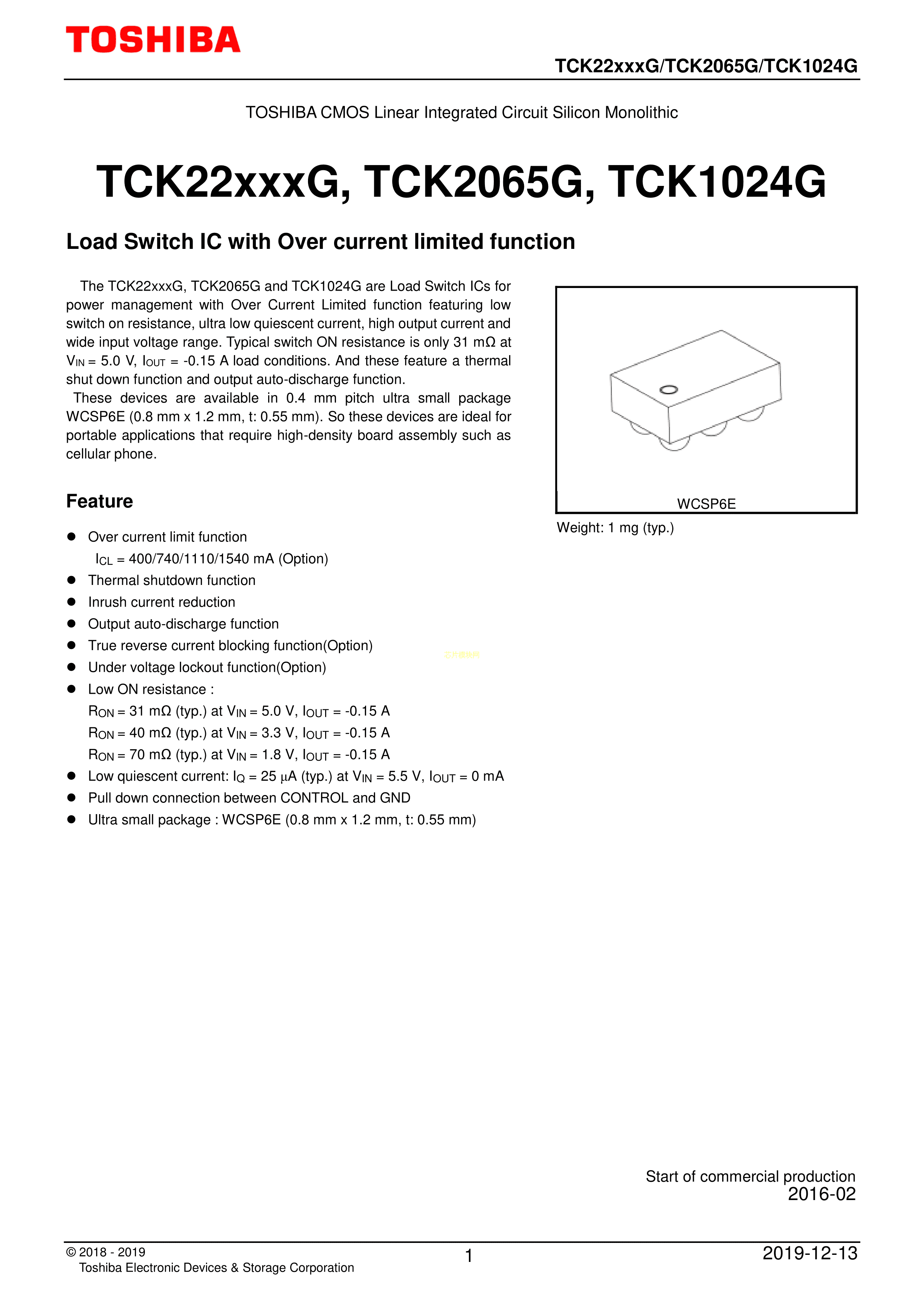 TCK22951GLF数据手册WCSPE-6(0.80x1.2)封装TOSHIBA(东芝)PDF规格