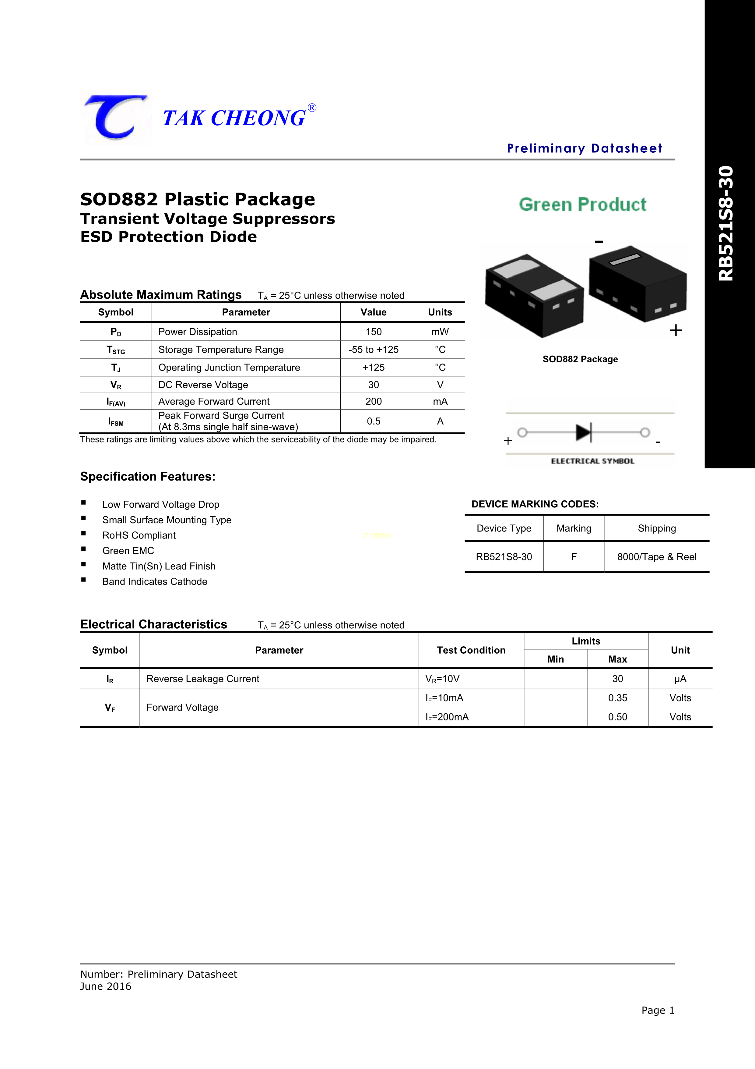 TCRB521S8-30数据手册SOD-882封装TC(德昌)PDF规格书,中英文下载
