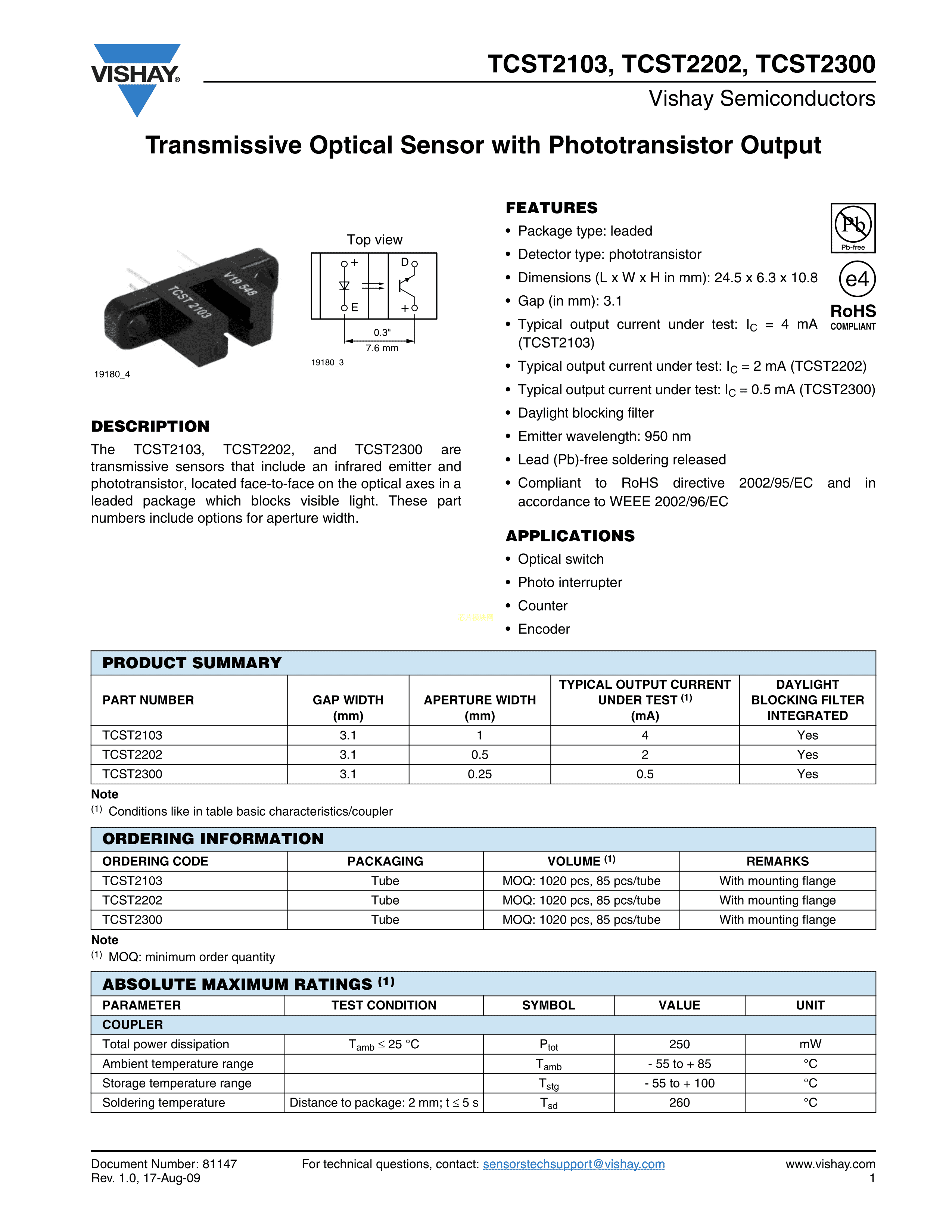 TCST2202数据手册ThroughHole封装VISHAY(威世)PDF规格书,中英文下载