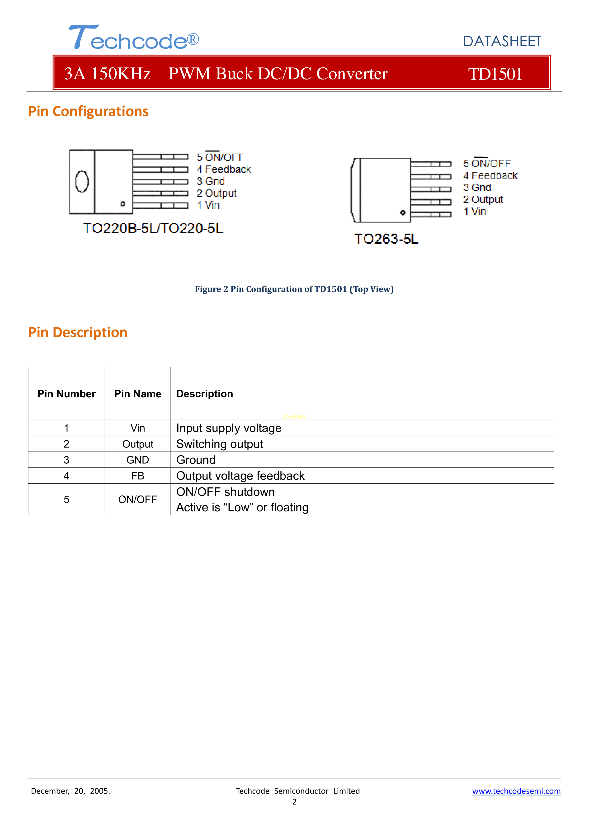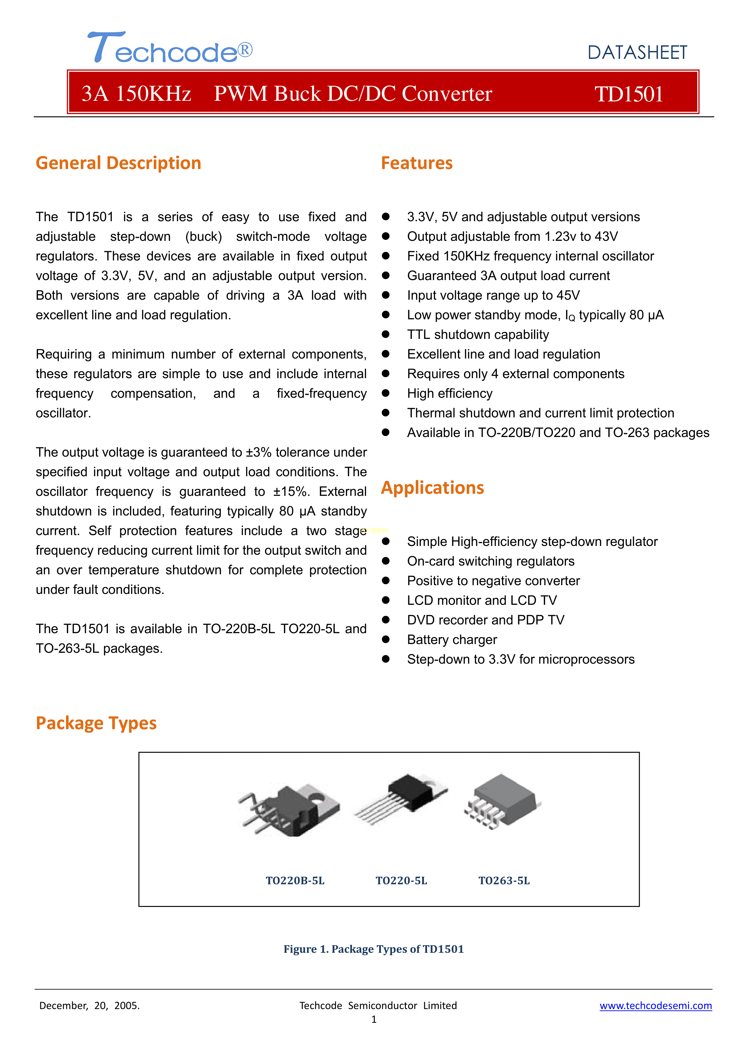 TD1501S50数据手册TO-263-5封装Techcode(泰德)PDF规格书,中英文下载