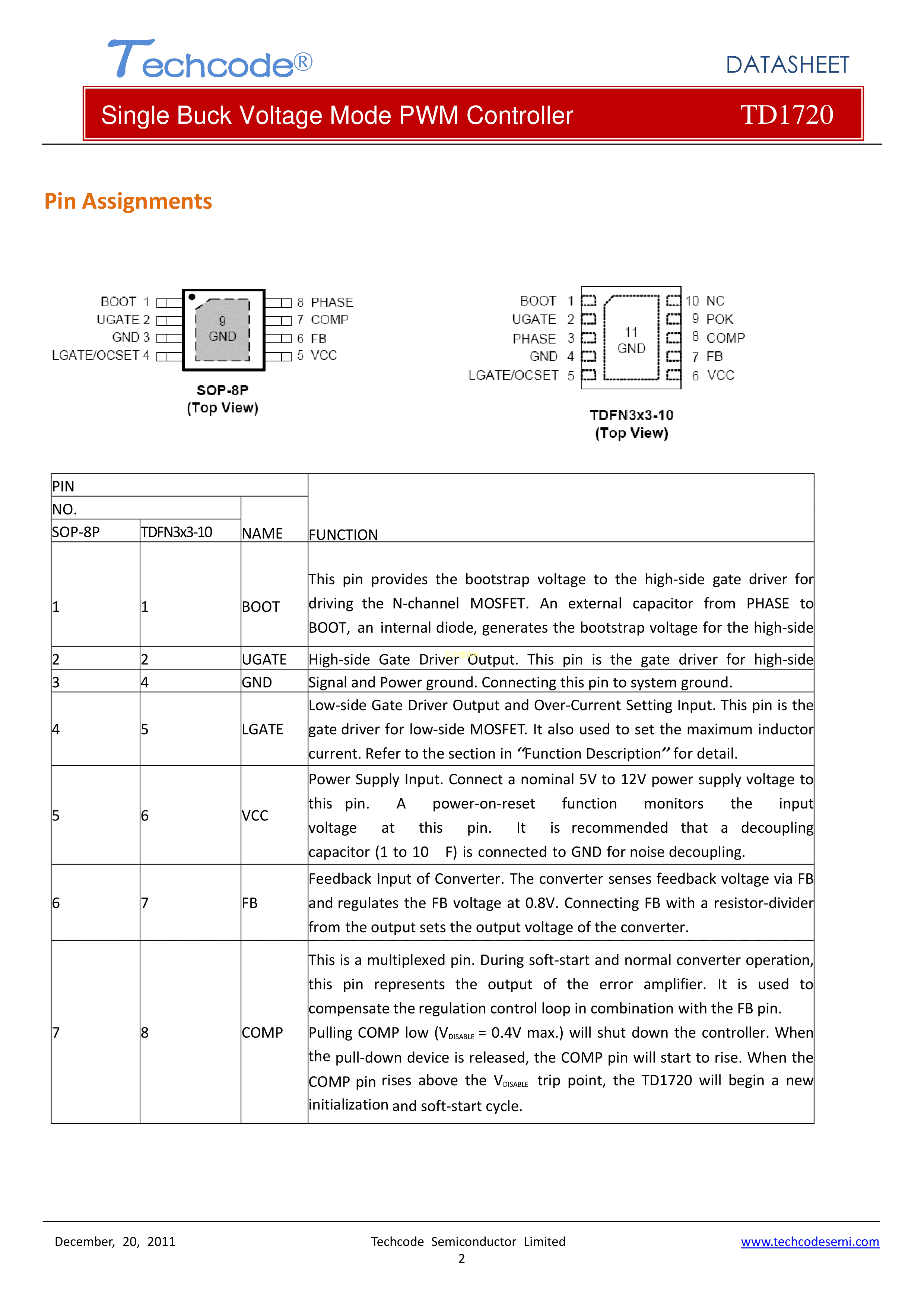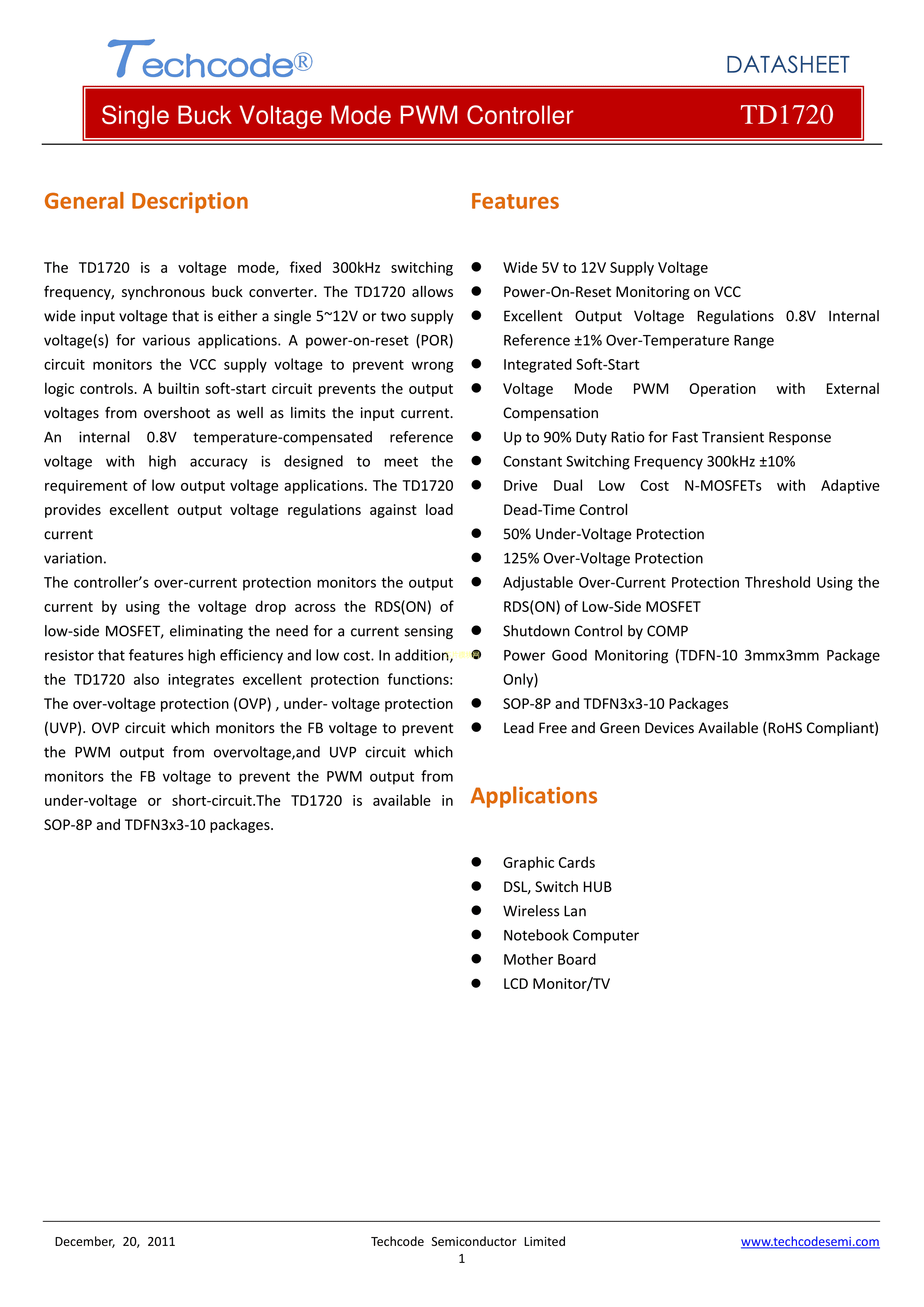 TD1720MR数据手册SOP-8EP_150mil封装Techcode(泰德)PDF规格书,中英文