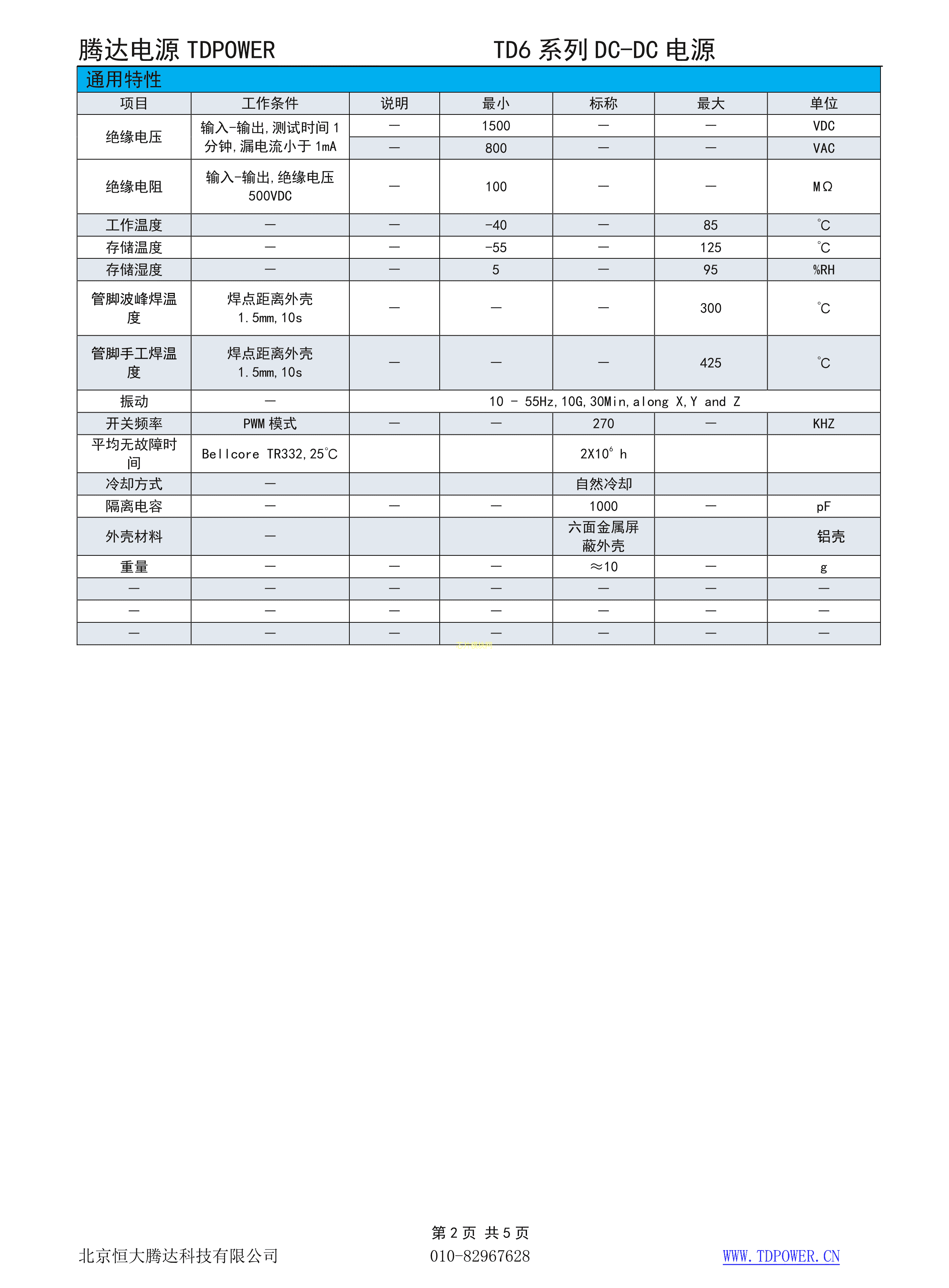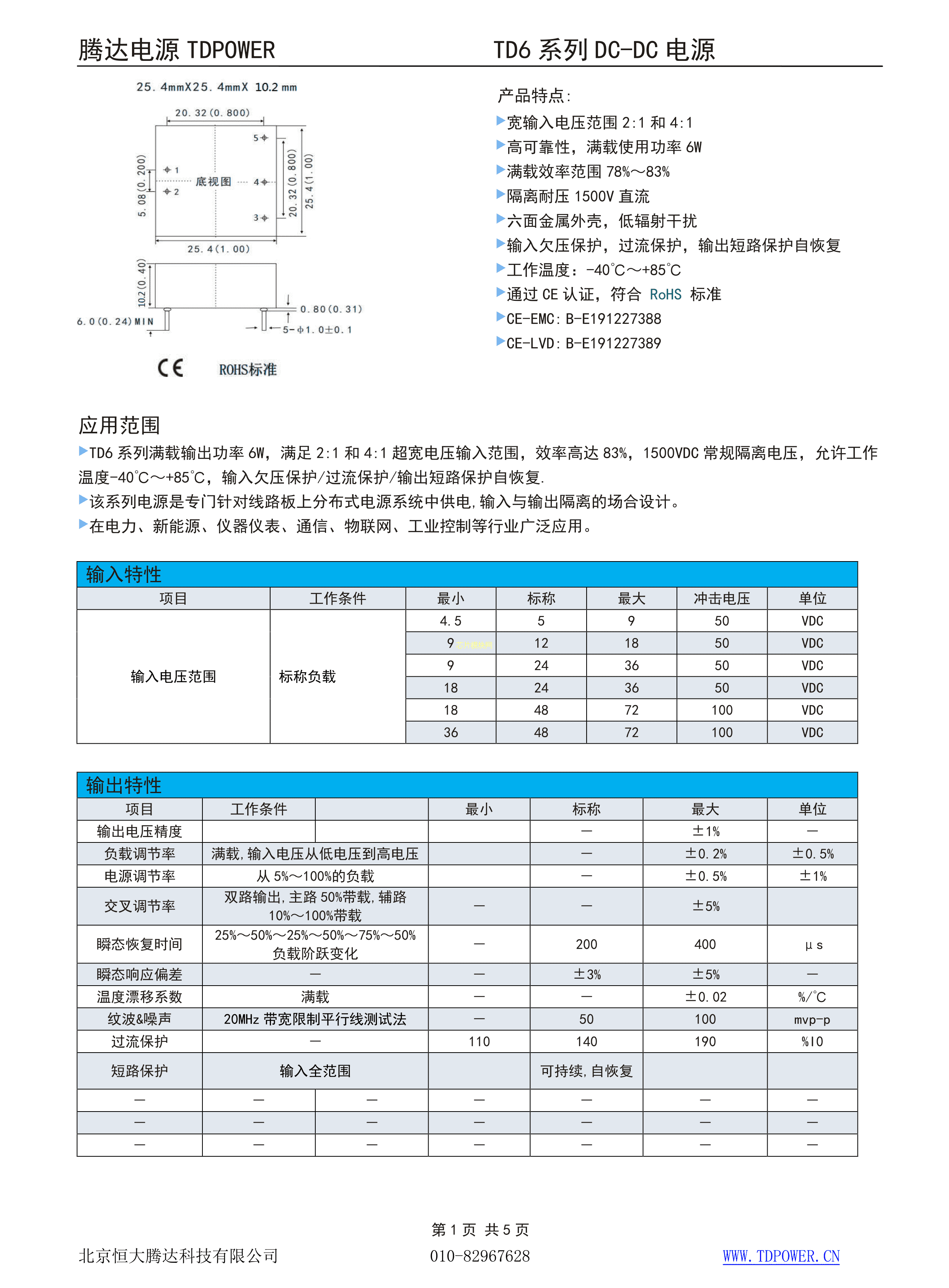 TD6-48D05数据手册插件封装TDPOWER(腾达电源)PDF规格书,中英文下载
