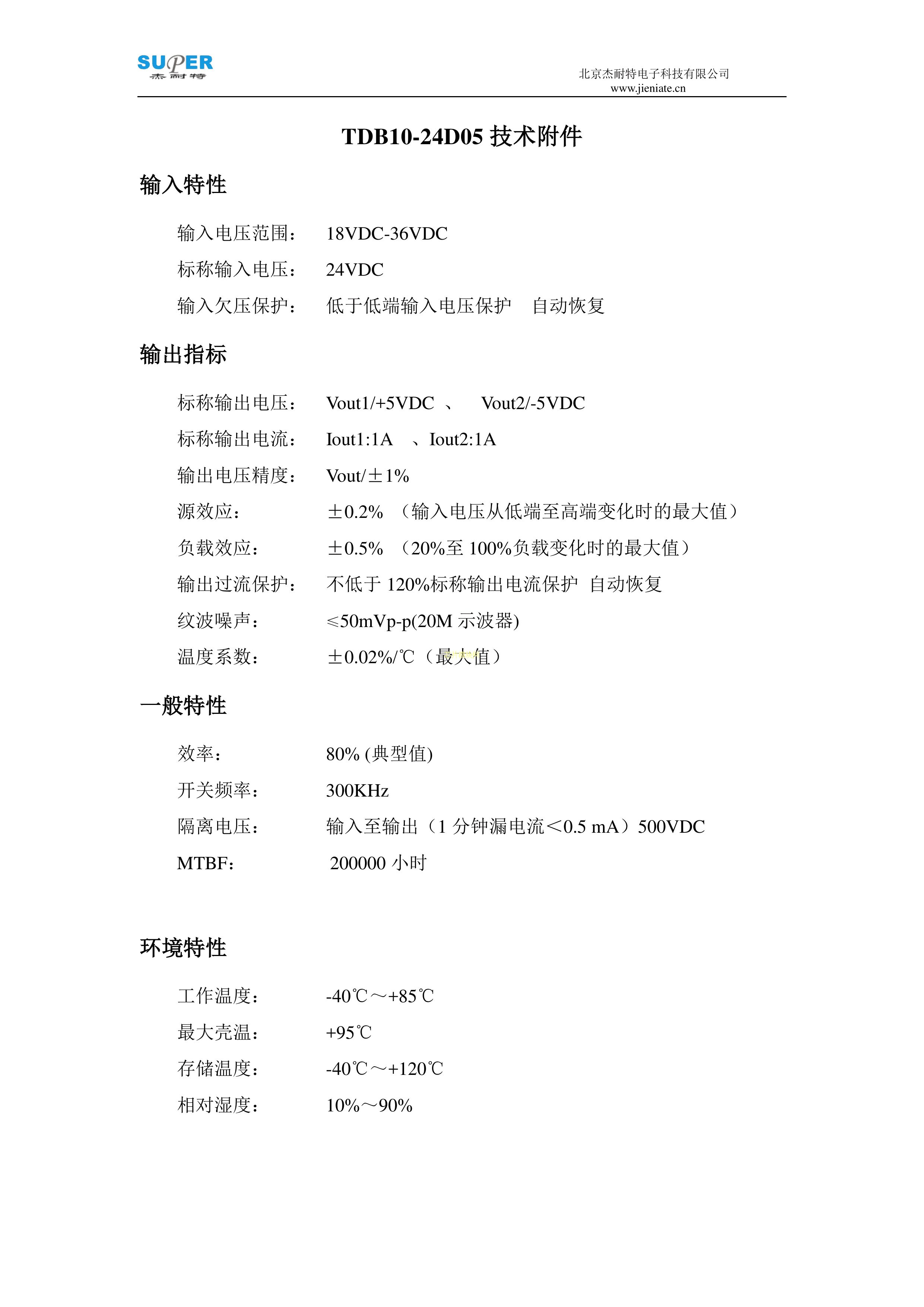 TDB10-24D05数据手册ThroughHole50.8x25.4x10.16mm封装SUPER(杰耐特)PDF规格书,中英文下载