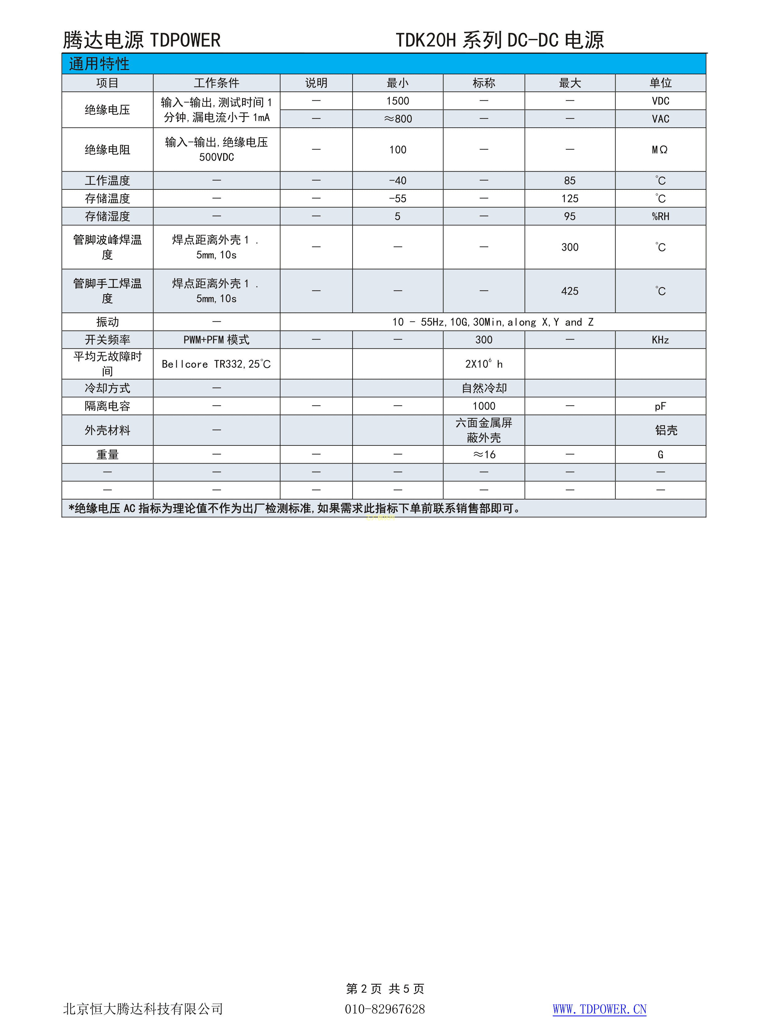 TDK20-24S24WH数据手册插件封装TDPOWER(腾达电源)PDF规格书,中英文下载
