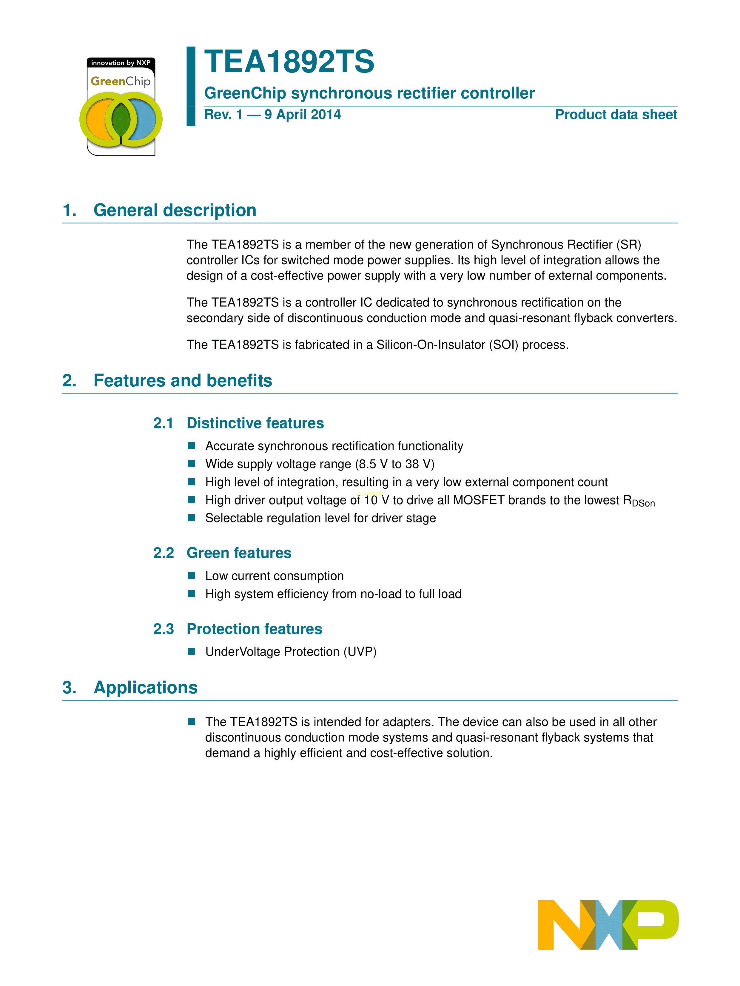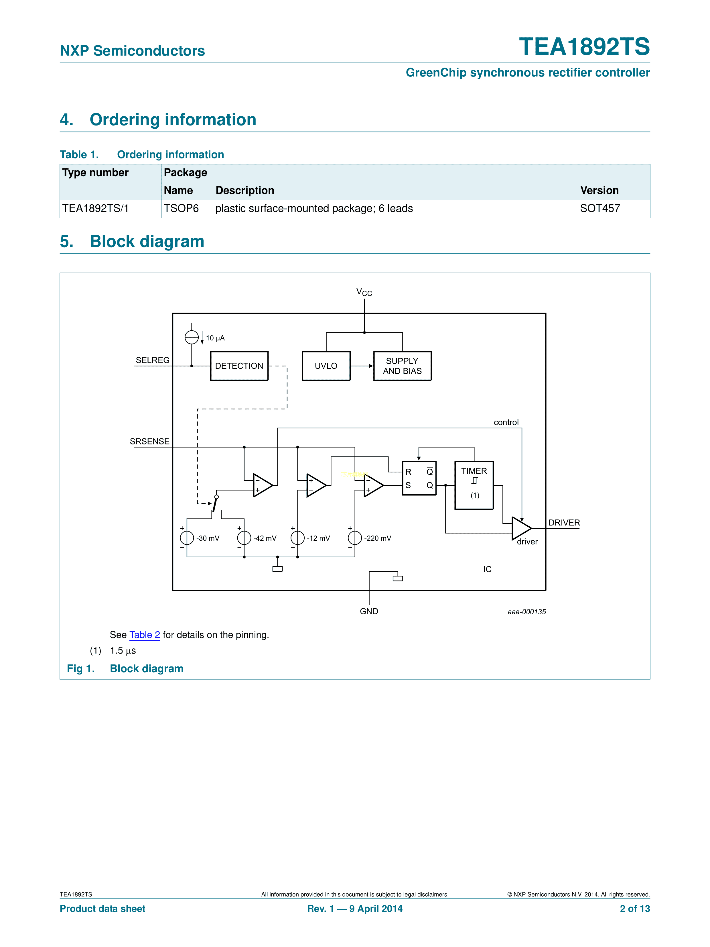 TEA1892TS-1H数据手册TSOP-6封装NXP(恩智浦)PDF规格书,中英文下载