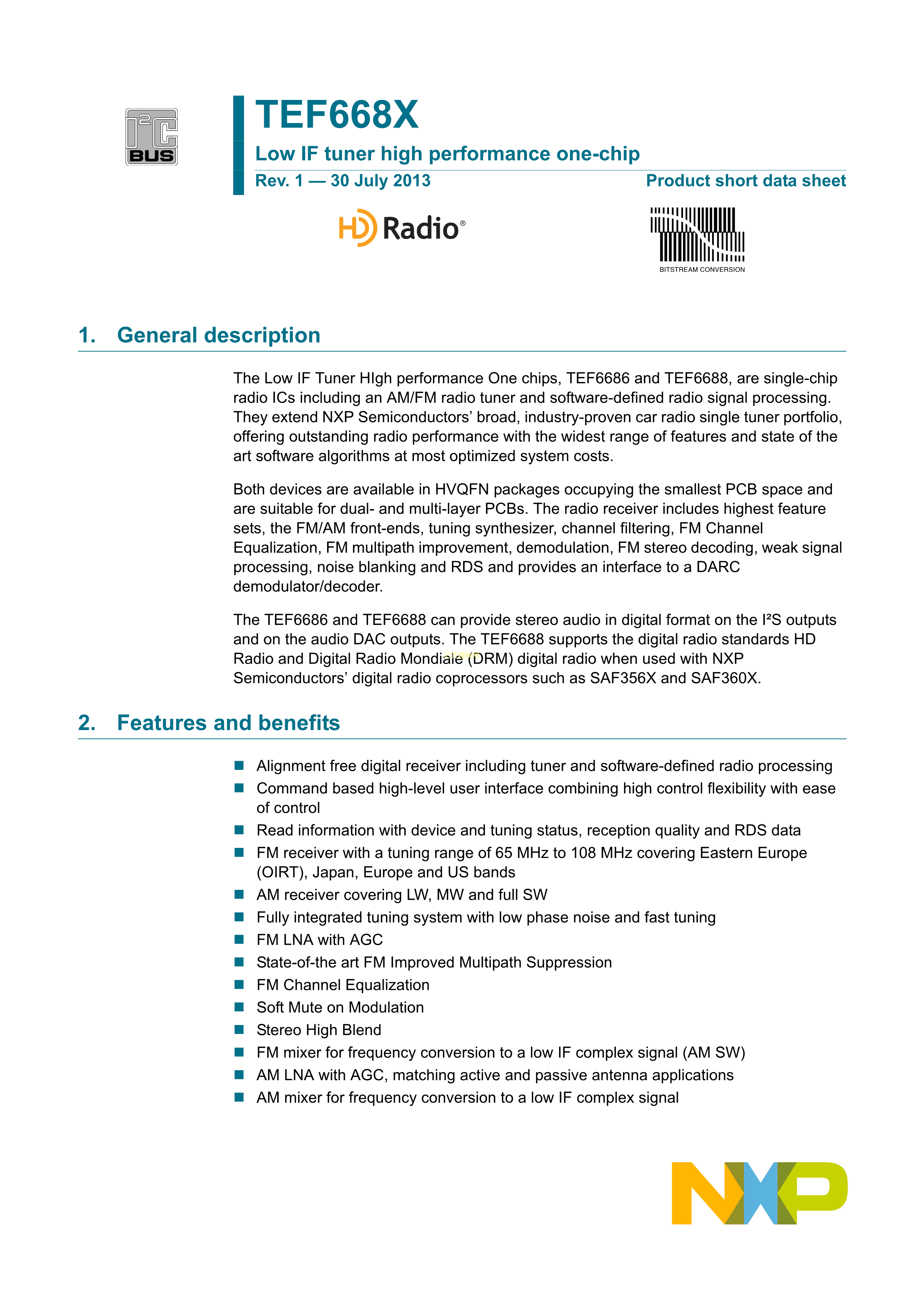 TEF6686HN-V102K数据手册HVQFN-32封装NXP(恩智浦)PDF规格书,中英文下载