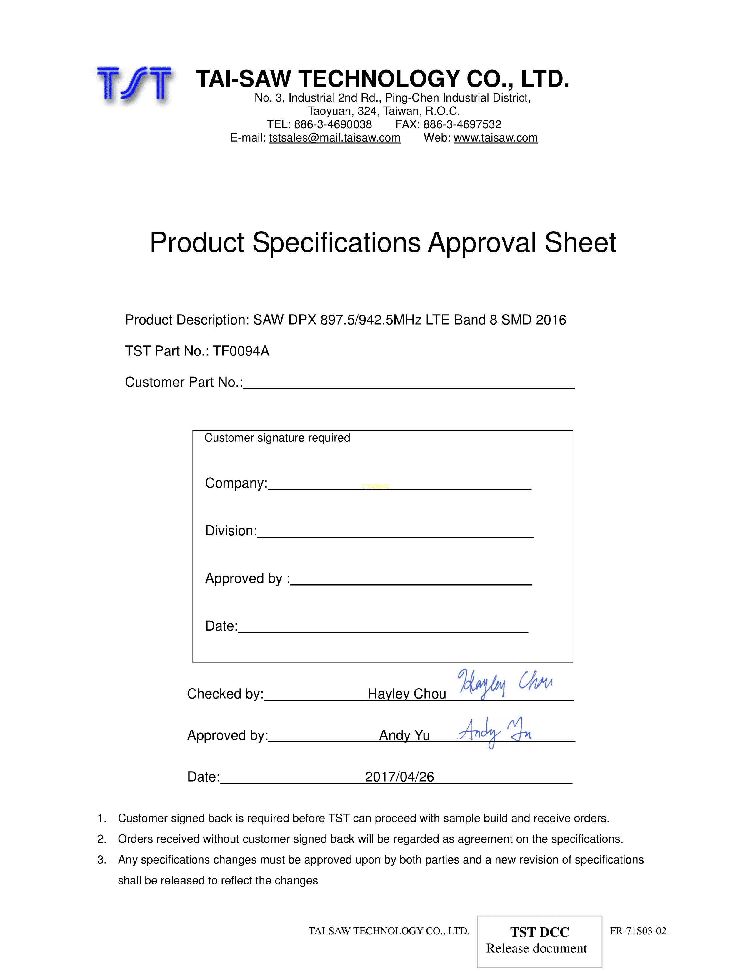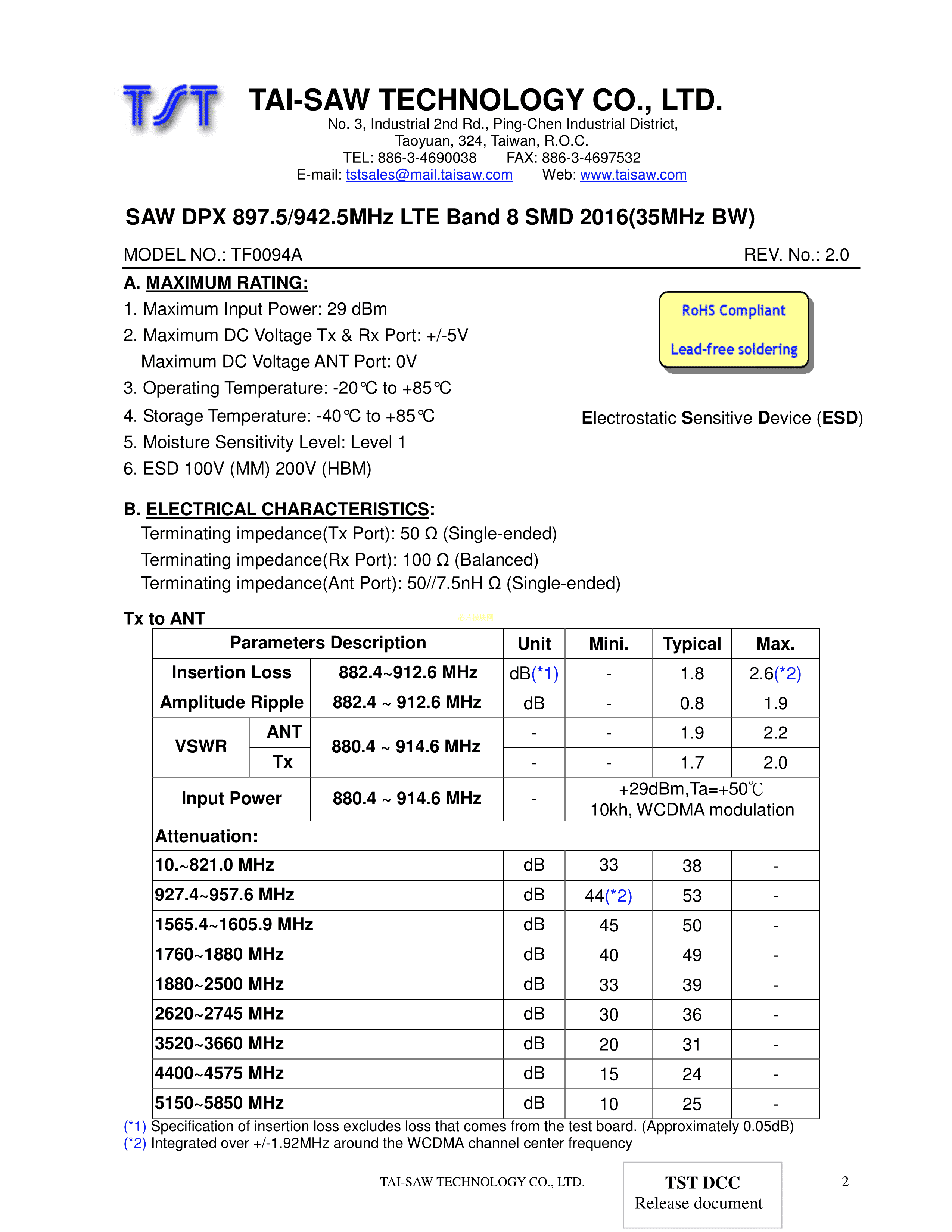 TF0094A数据手册SMD封装TST(台湾嘉硕)PDF规格书,中英文下载