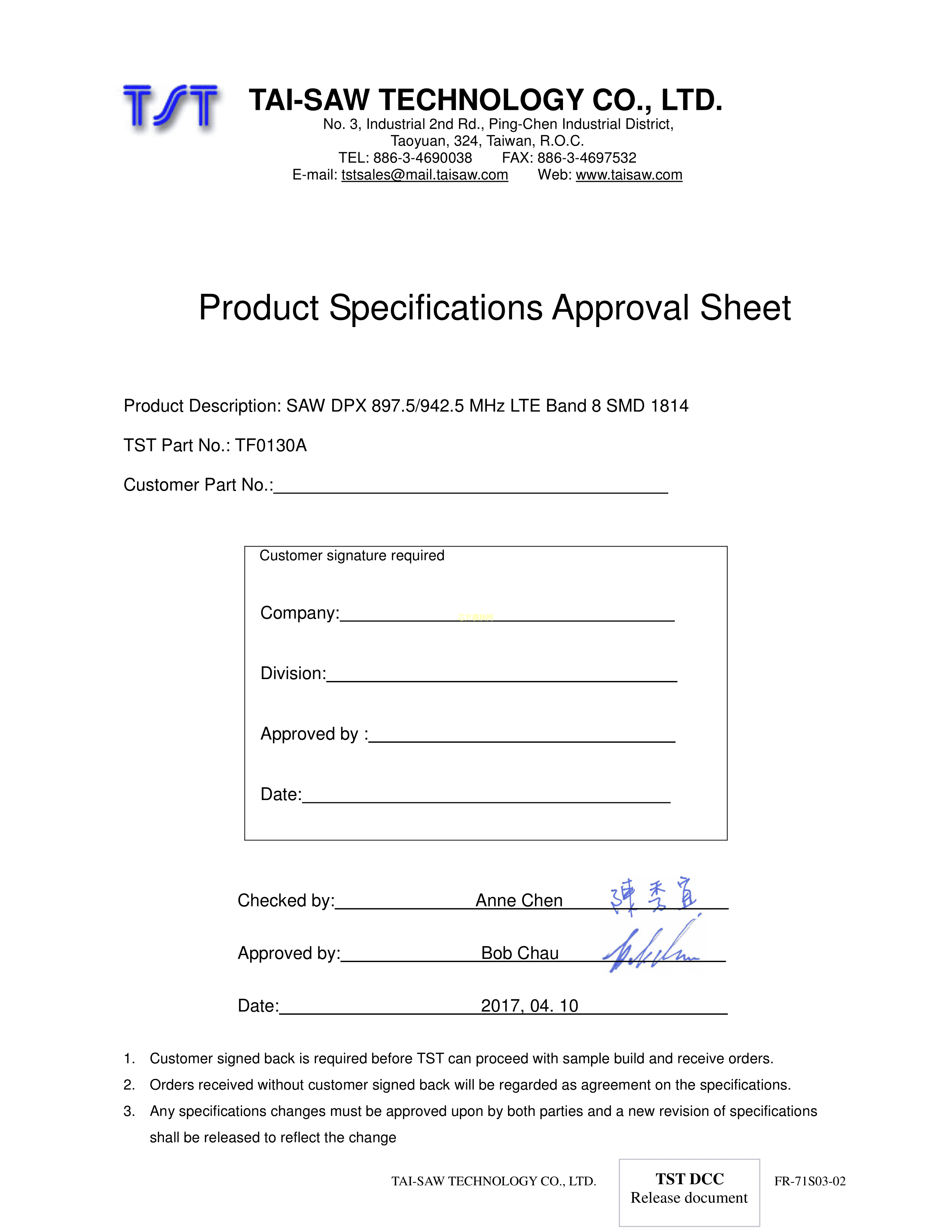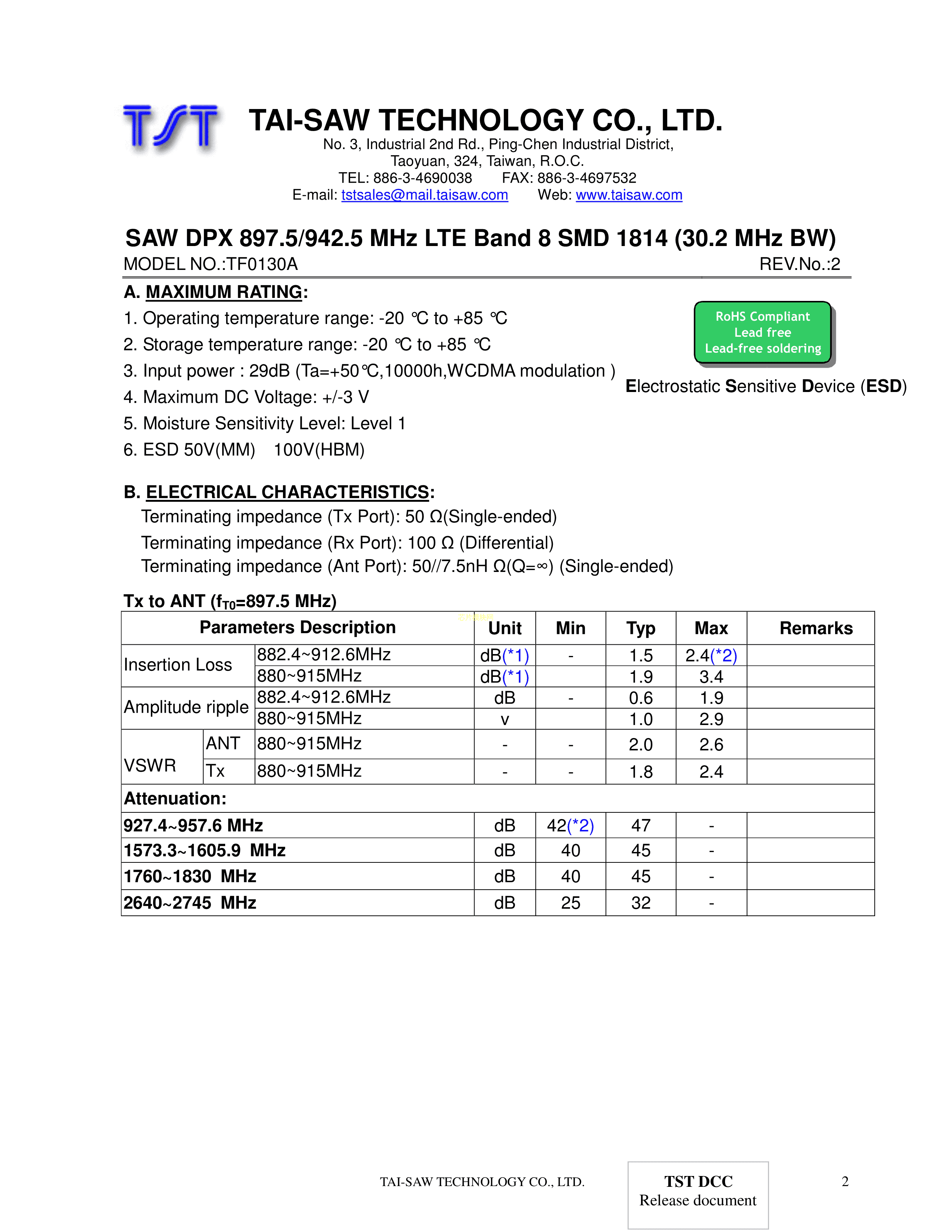 TF0130A数据手册SMD封装TST(台湾嘉硕)PDF规格书,中英文下载