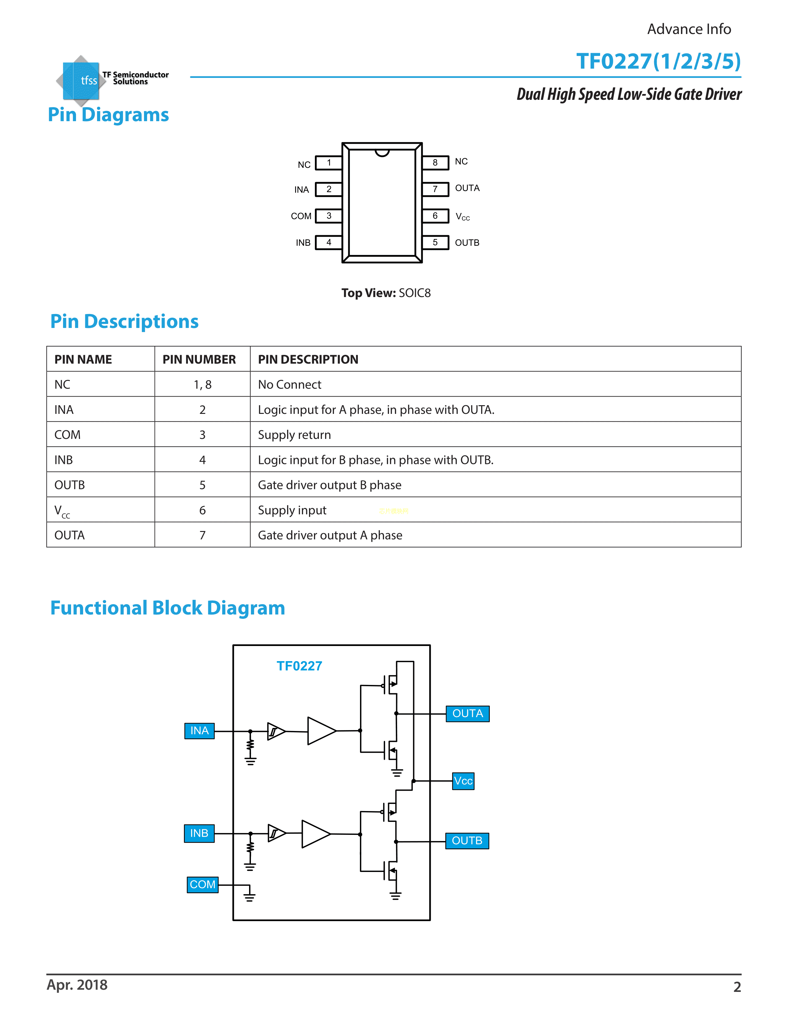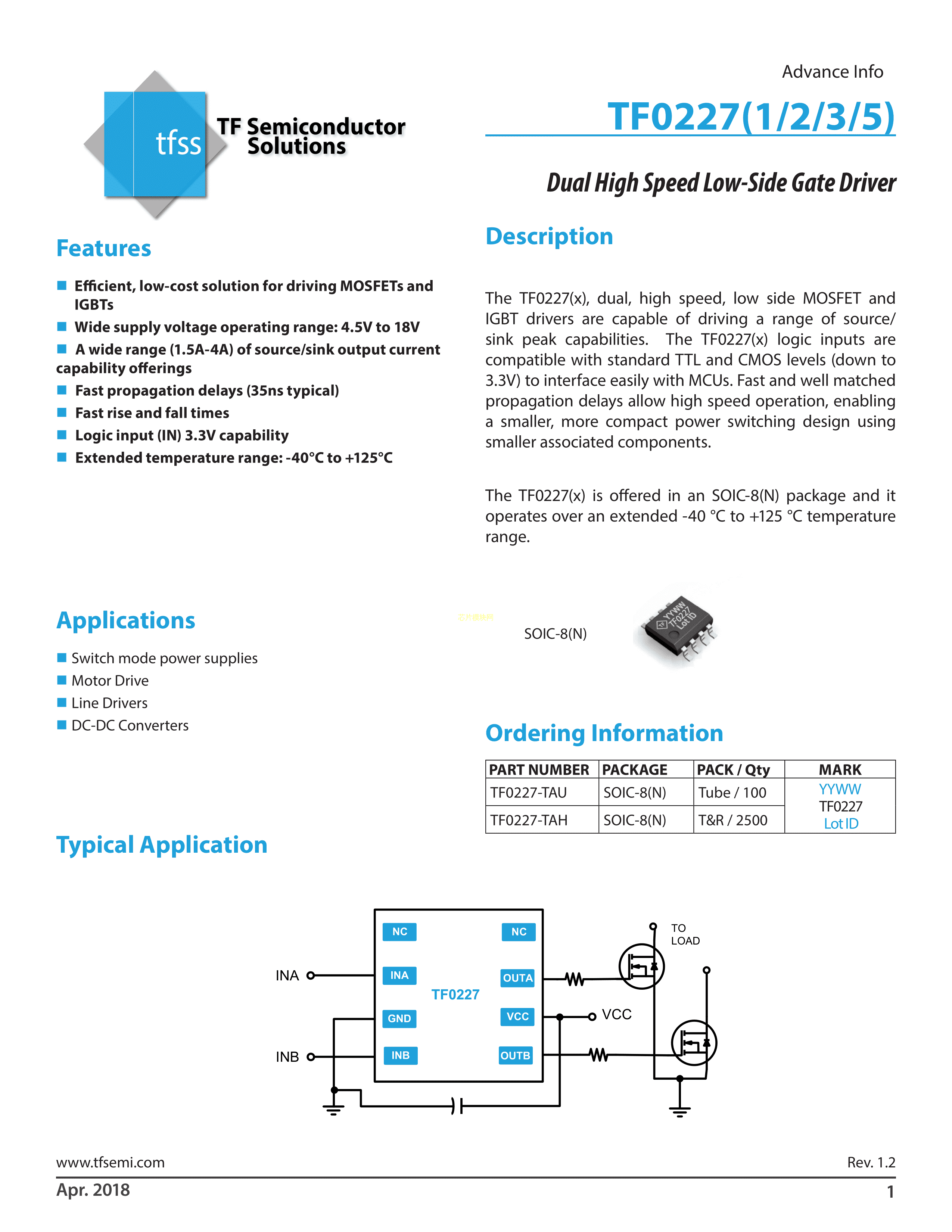 TF0227-TAH数据手册SOIC-8封装TFSS(德律风根)PDF规格书,中英文下载