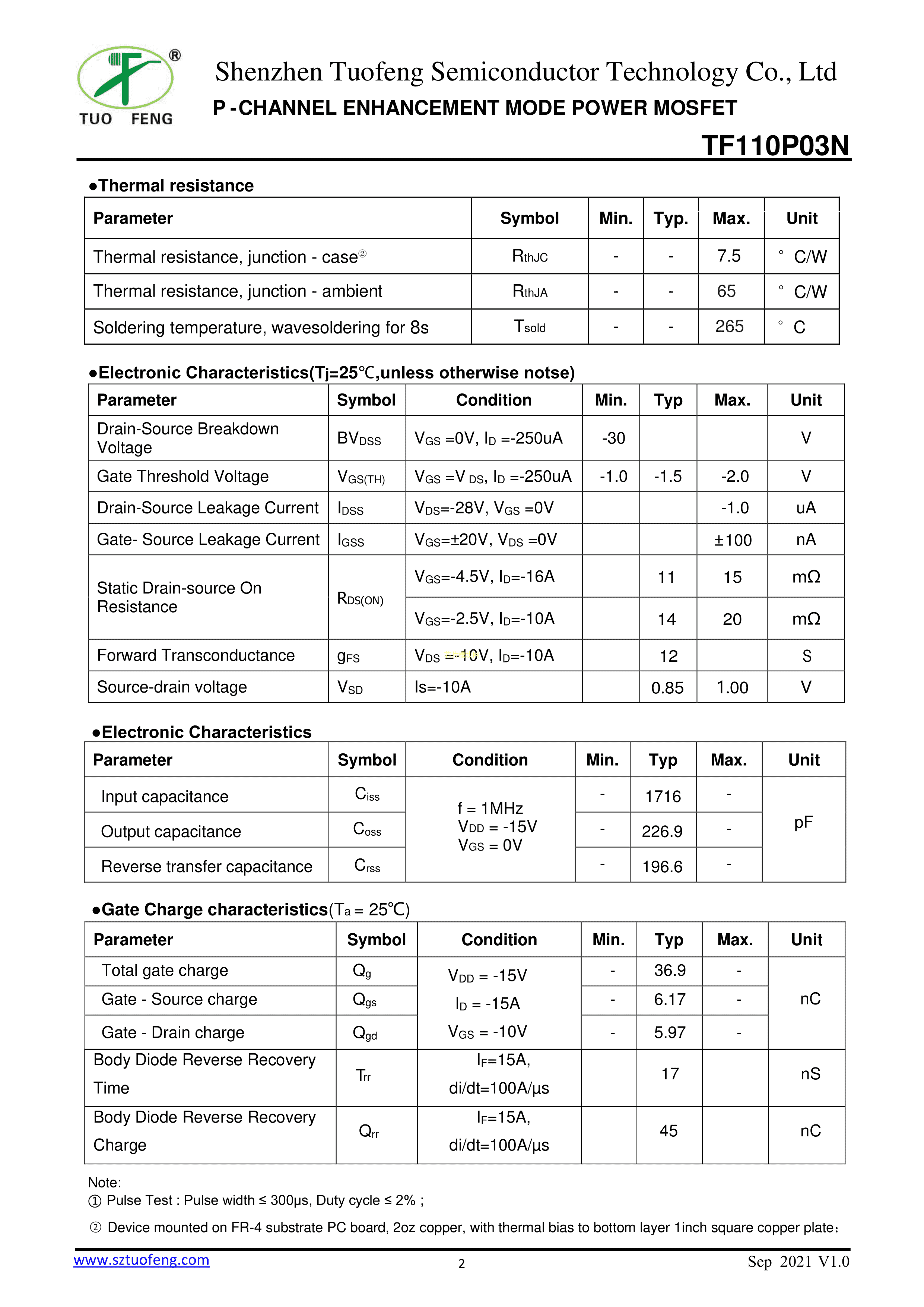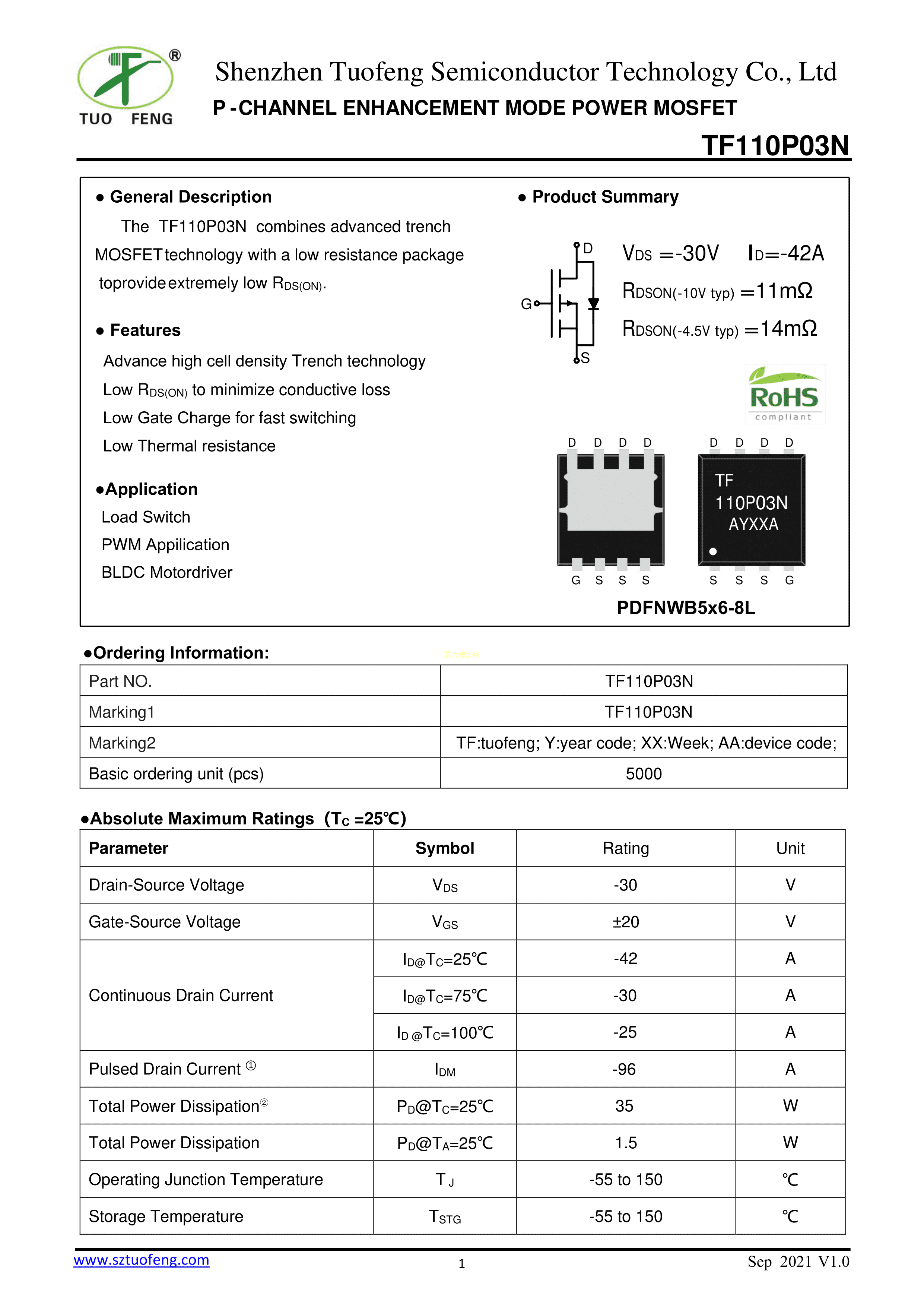 TF110P03N数据手册PDFNWB5x6-8L封装TF(拓锋)PDF规格书,中英文下载