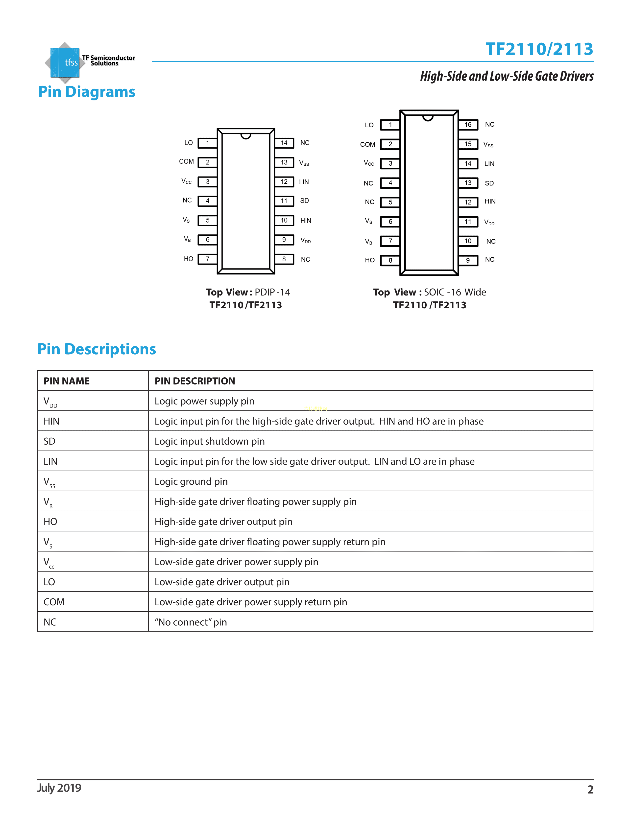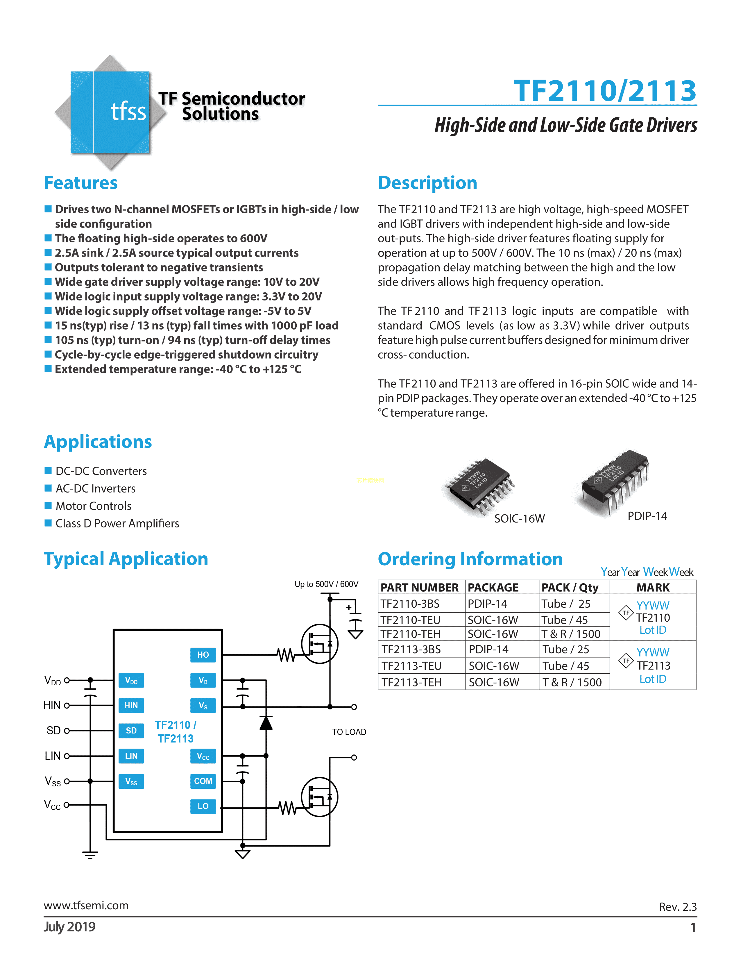 TF2113-3BS数据手册PDIP-14封装TFSS(德律风根)PDF规格书,中英文下载