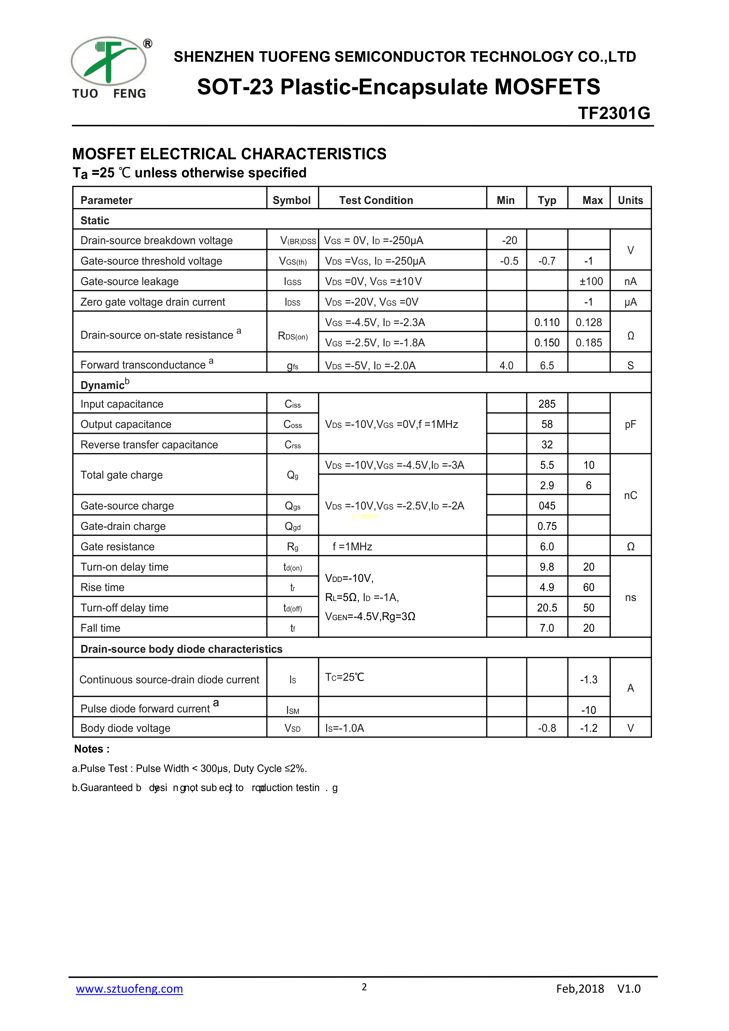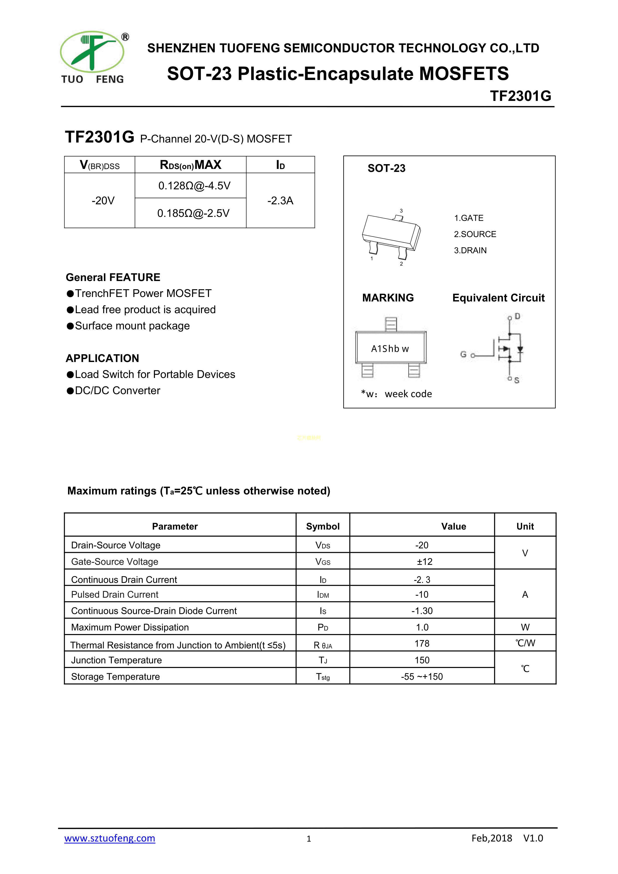 TF2301G数据手册SOT-23封装TF(拓锋)PDF规格书,中英文下载