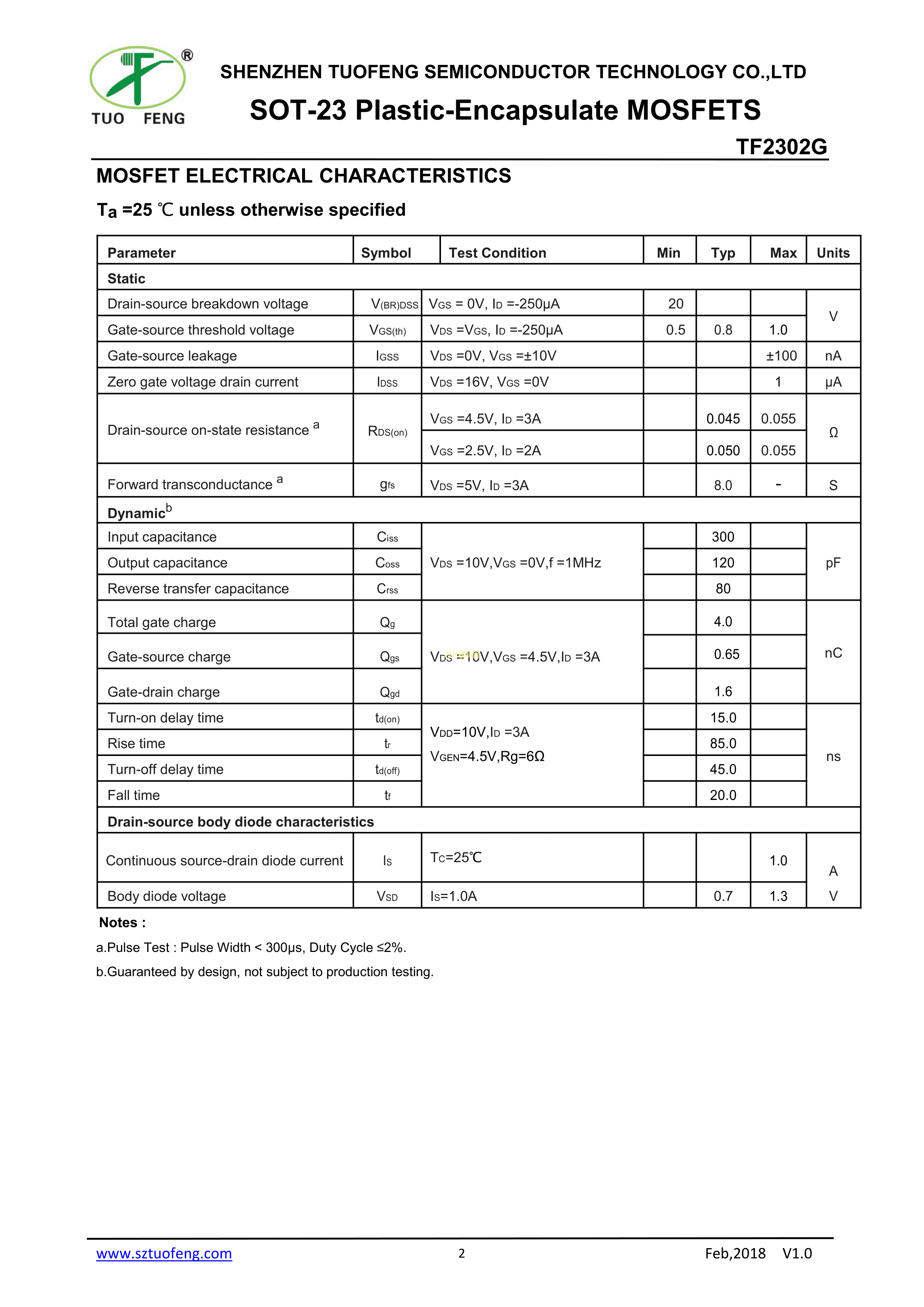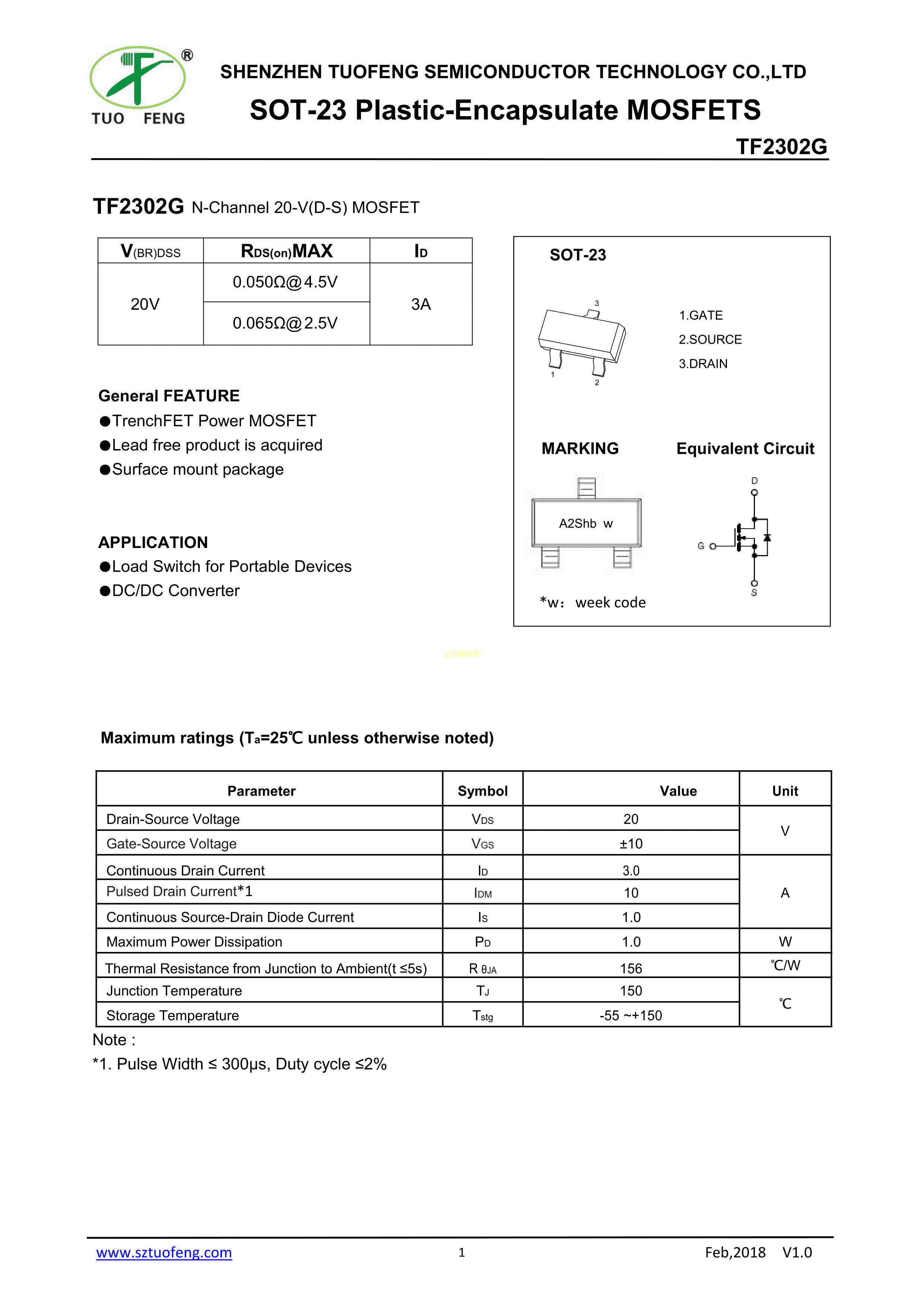TF2302G数据手册SOT-23封装TF(拓锋)PDF规格书,中英文下载