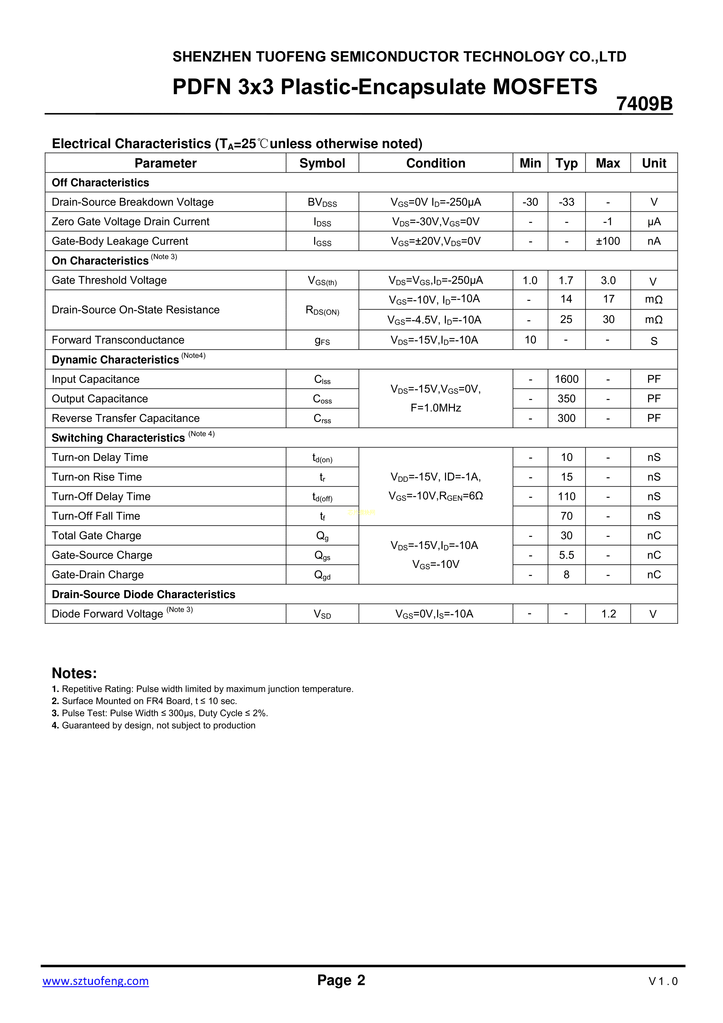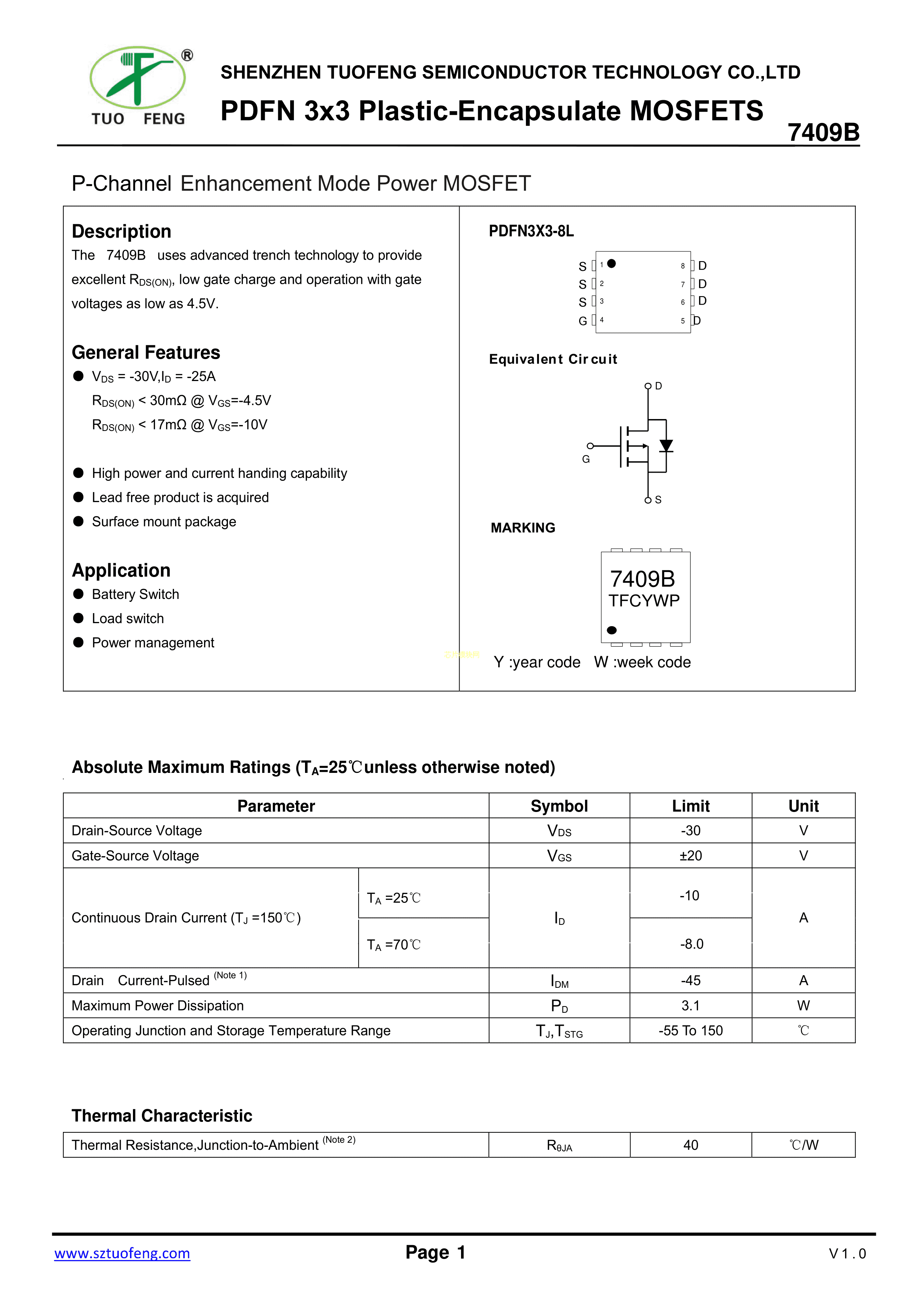 TF7409B数据手册PDFN3x3-8L封装TF(拓锋)PDF规格书,中英文下载