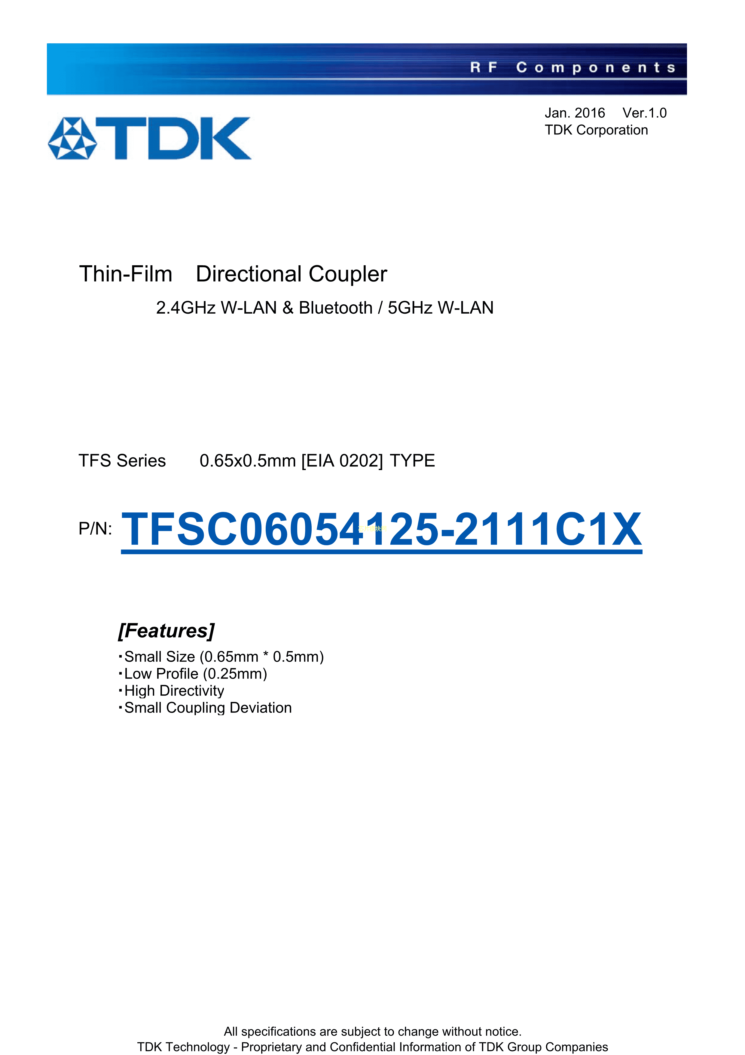 TFSC06054125-2111C1X数据手册SMD0.65x0.5mm封装TDKPDF规格书,中
