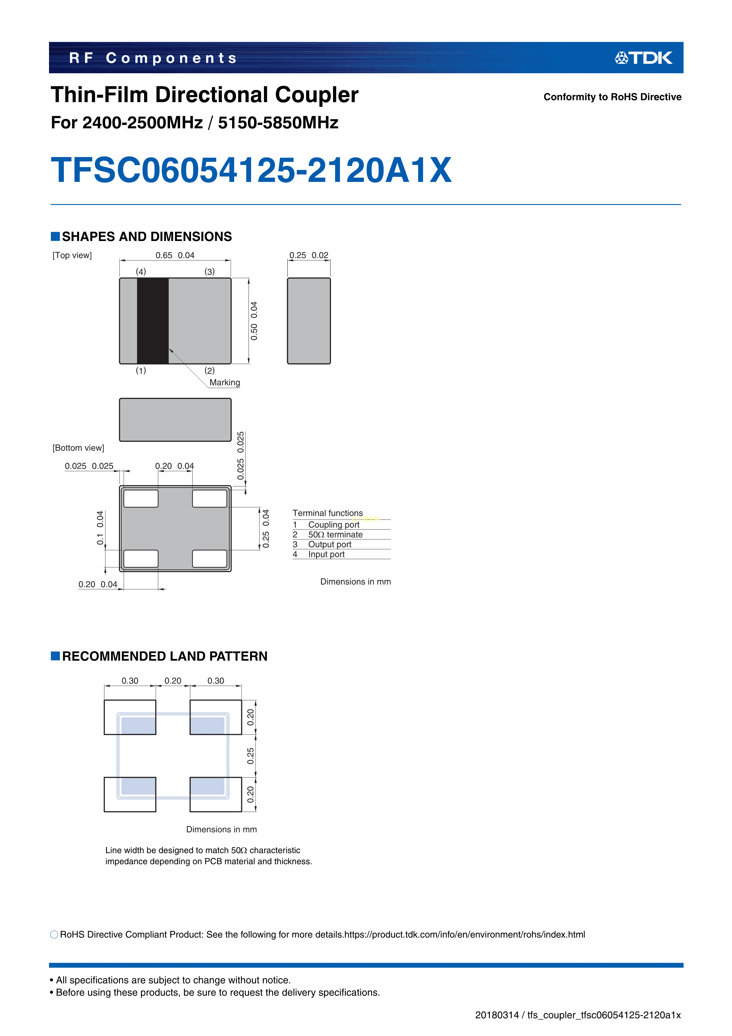 TFSC06054125-2120A1X数据手册0402封装TDKPDF规格书,中英文下载