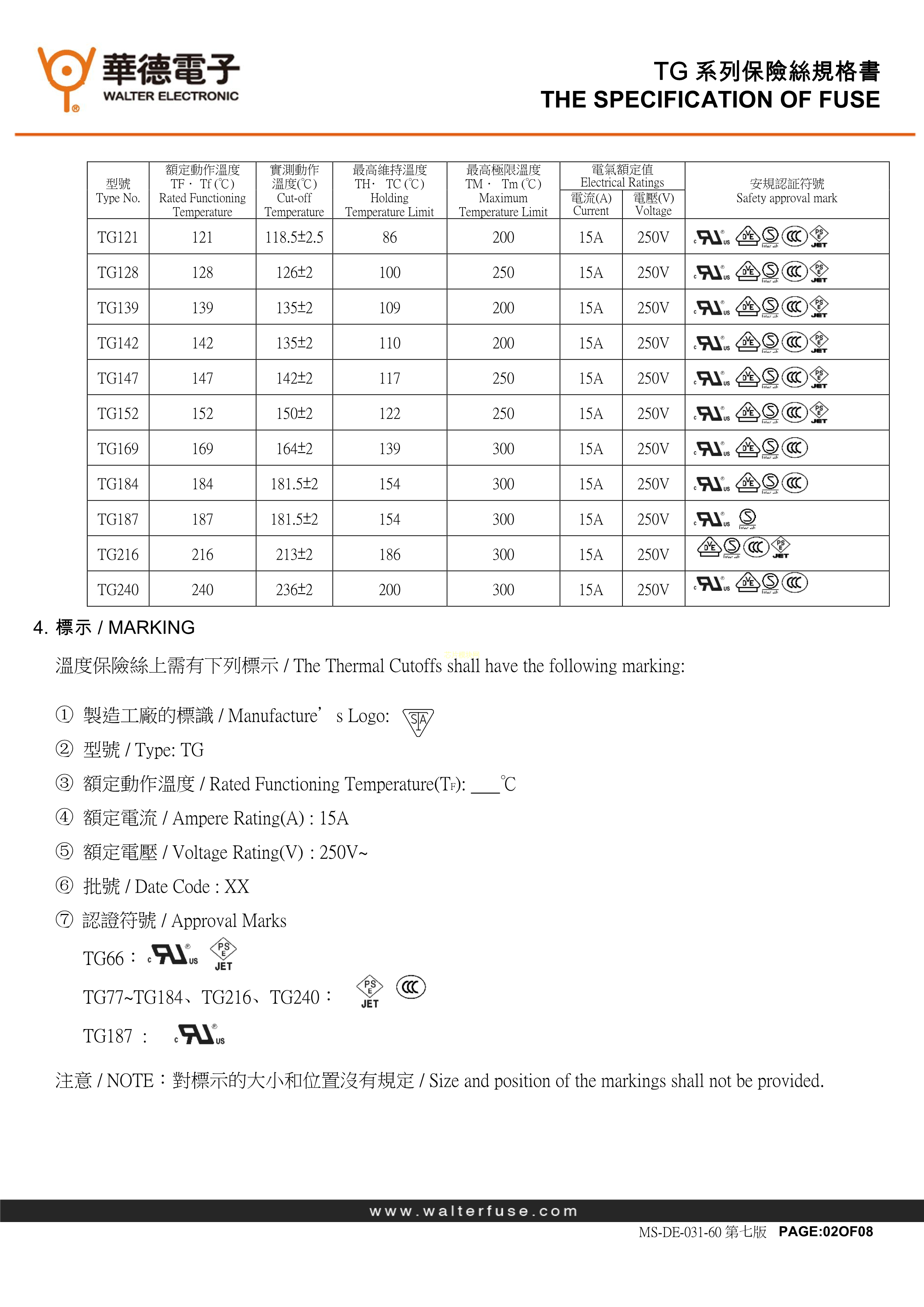 TG-15215A250T001BG数据手册轴向引线封装WALTER(华德)PDF规格书,中英文下载