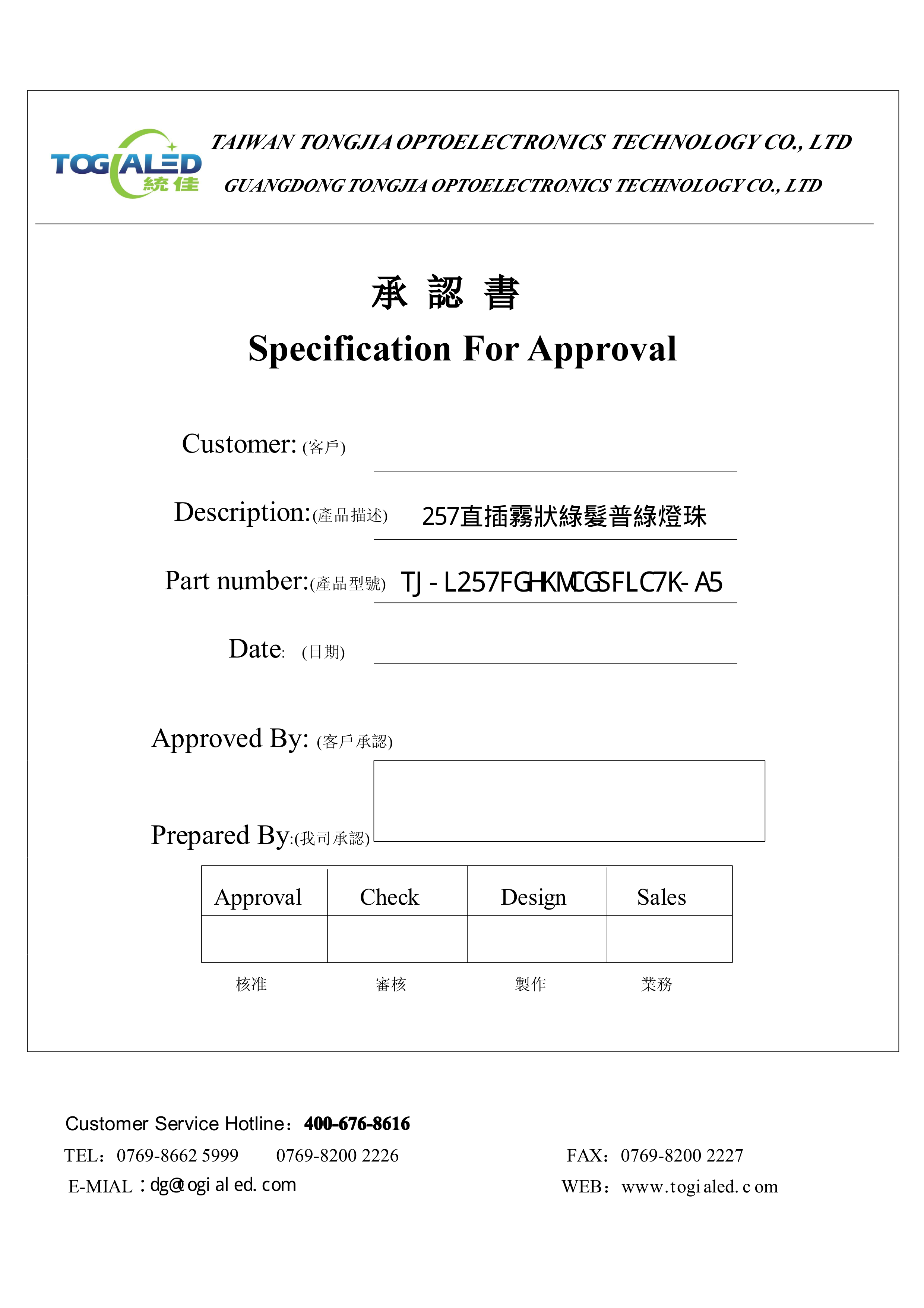 TJ-L257FGHKMCGSFLC7K-A5数据手册插件封装TOGIALED(台湾统佳)PDF规格