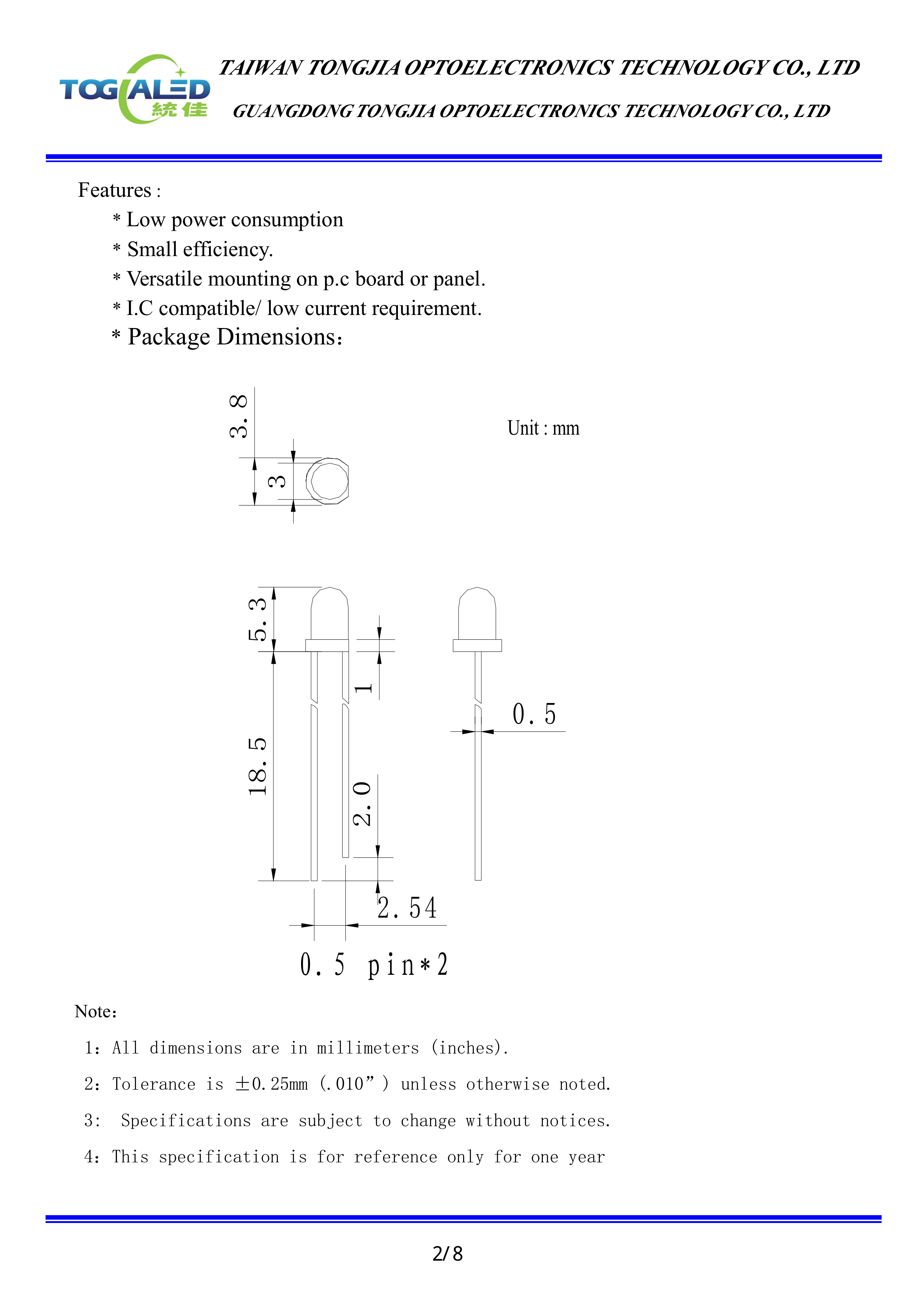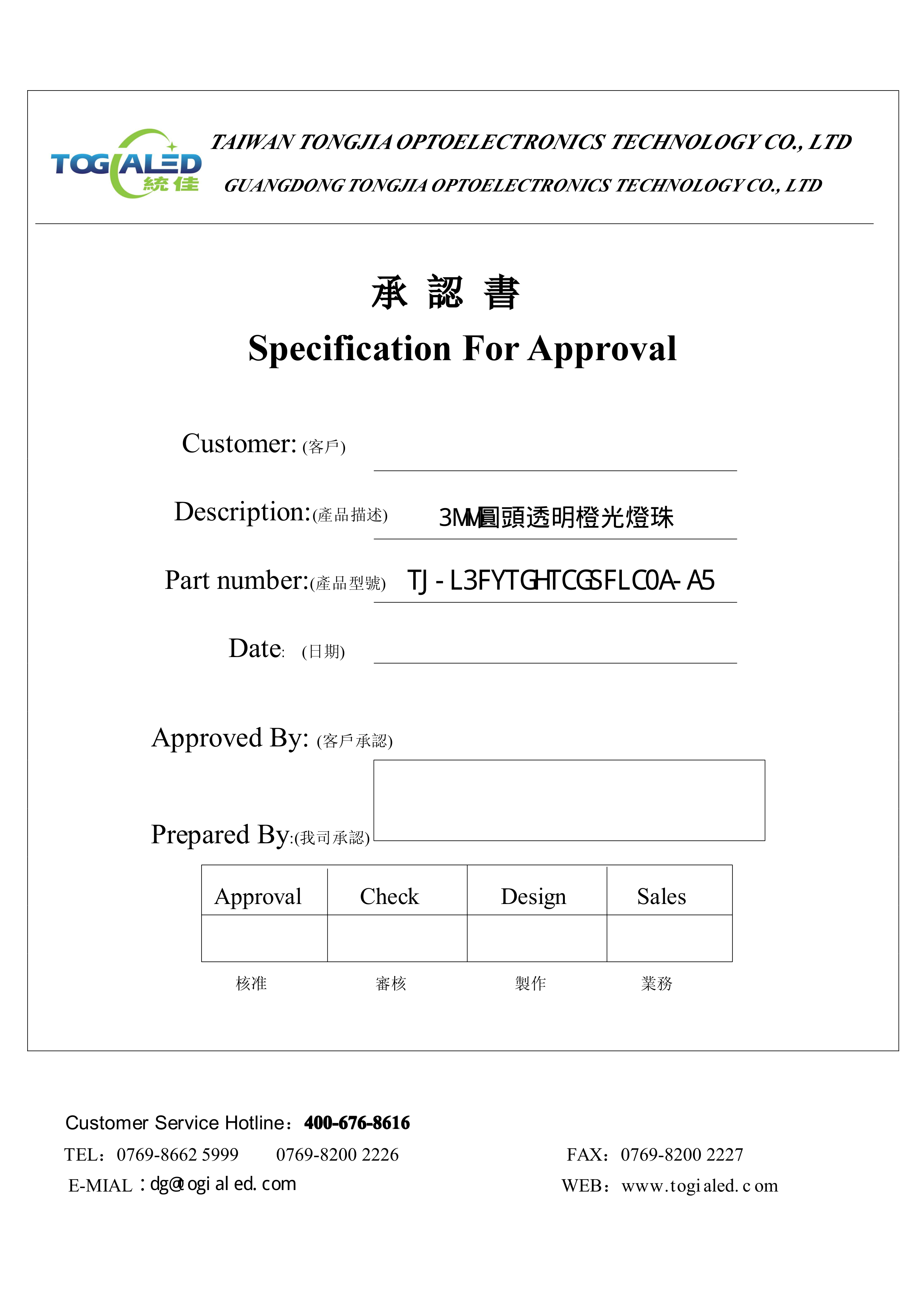 TJ-L3FYTGHTCGSFLC0A-A5数据手册插件封装TOGIALED(台湾统佳)PDF规格书