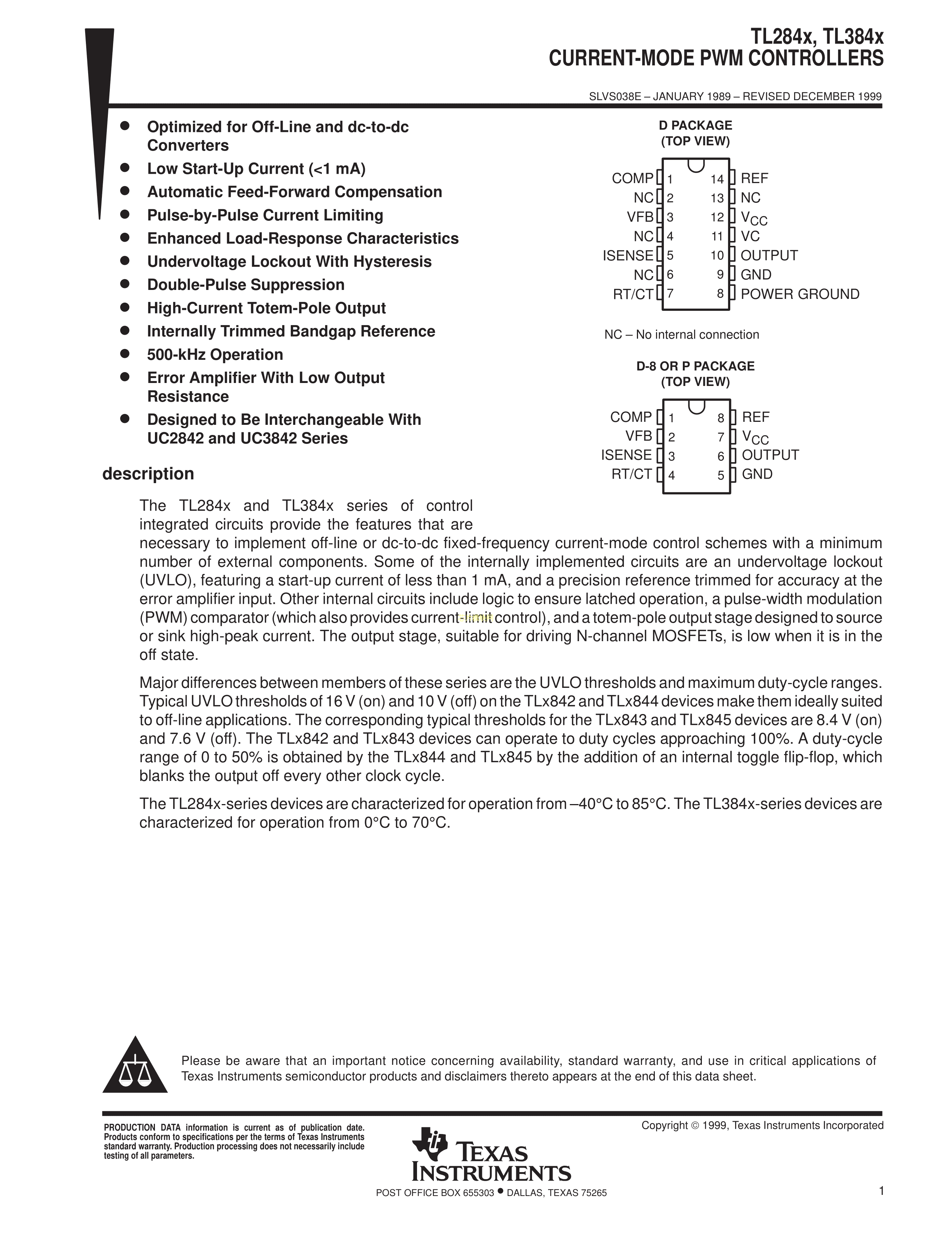 TL3843P数据手册DIP-8封装TI(德州仪器)PDF规格书,中英文下载