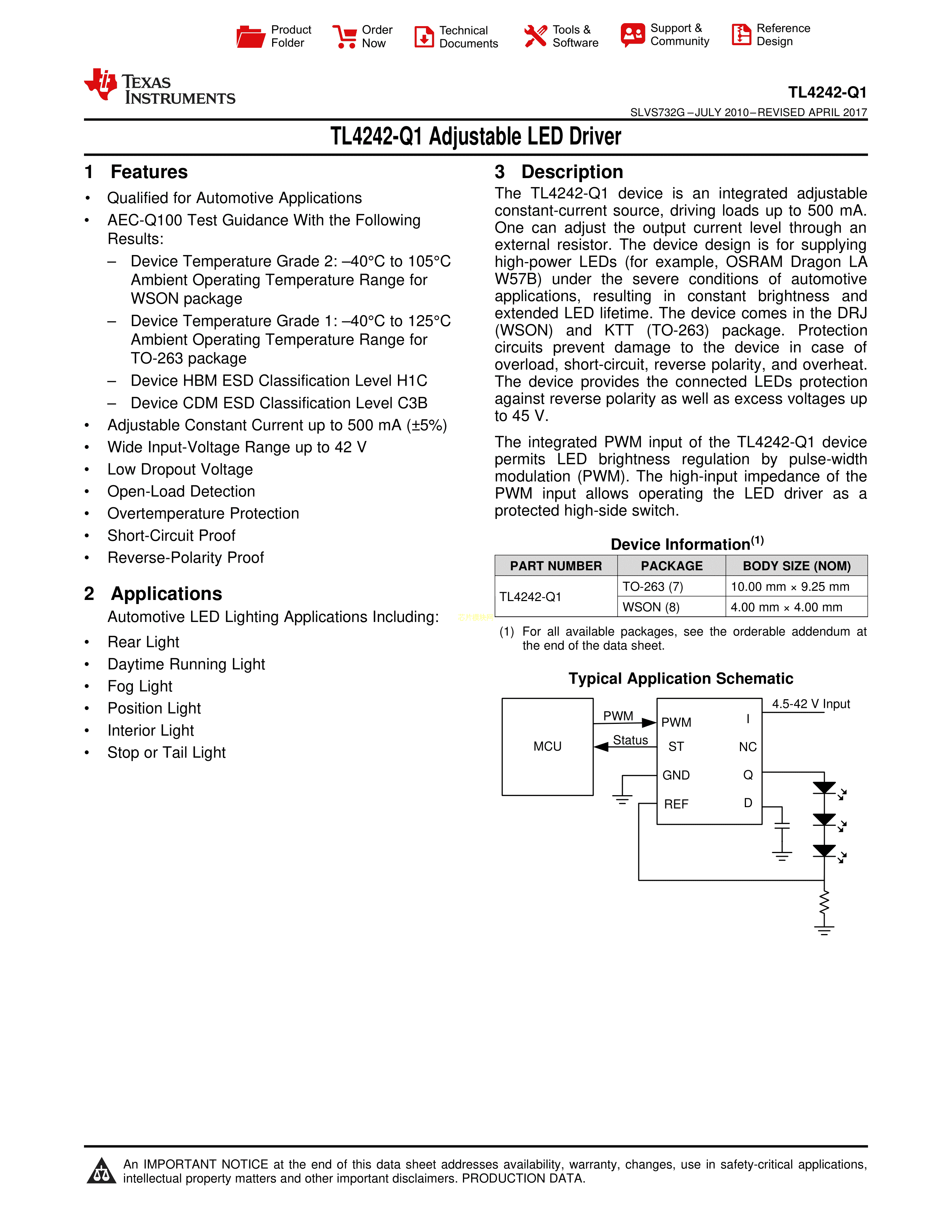 TL4242QKTTRQ1数据手册TO-263-7封装TI(德州仪器)PDF规格书,中英文下载