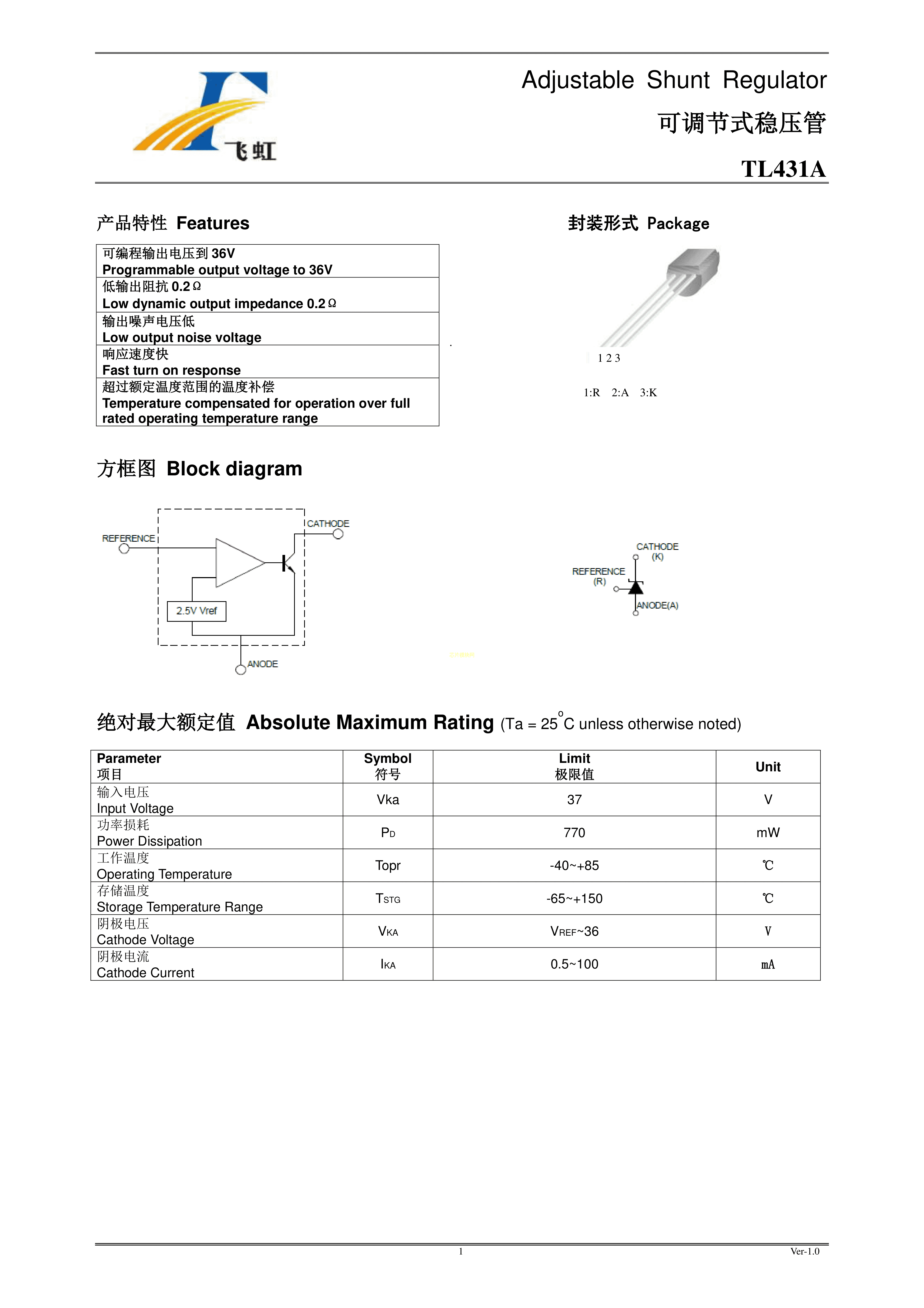 TL431A数据手册TO-92封装FeiHong(飞虹)PDF规格书,中英文下载