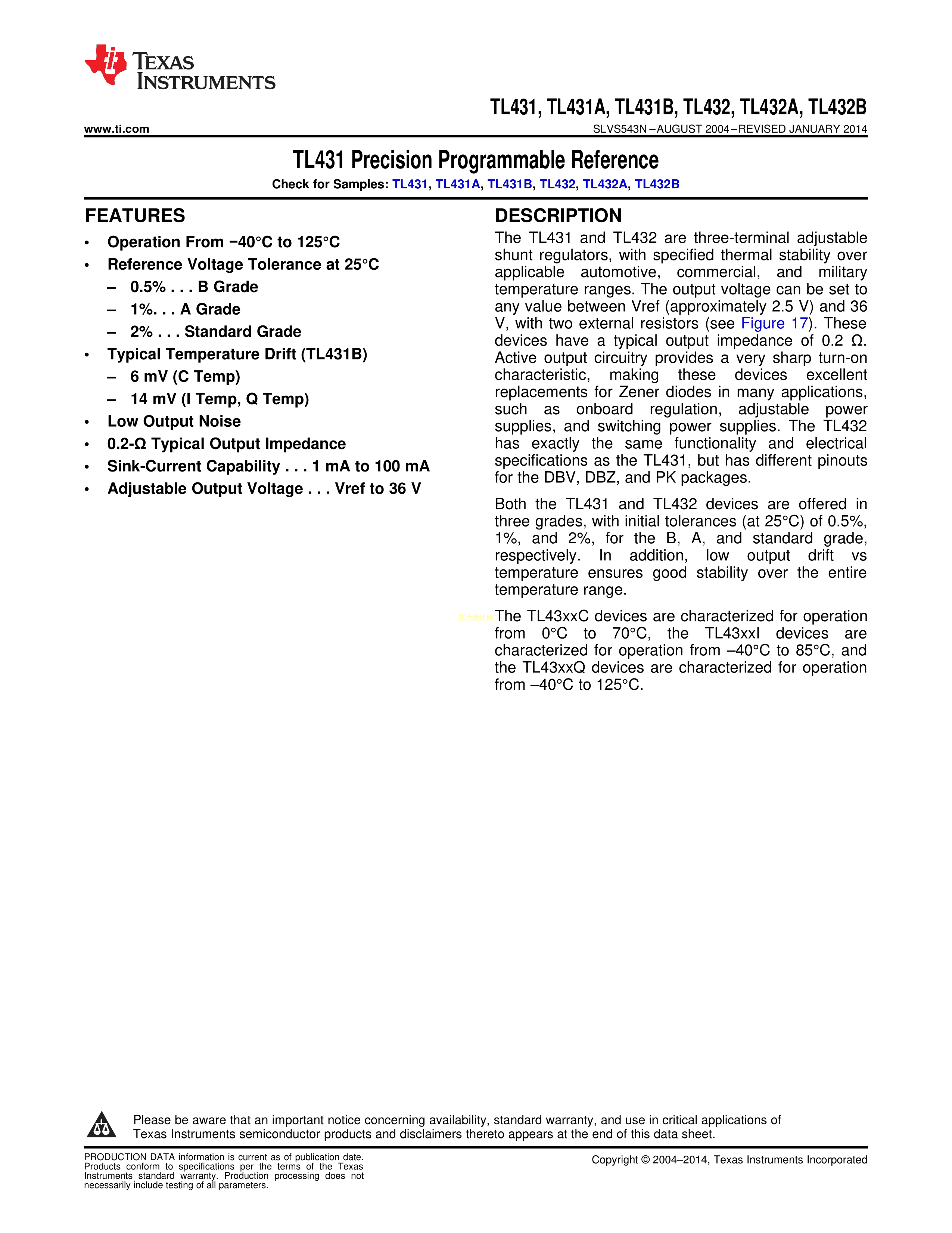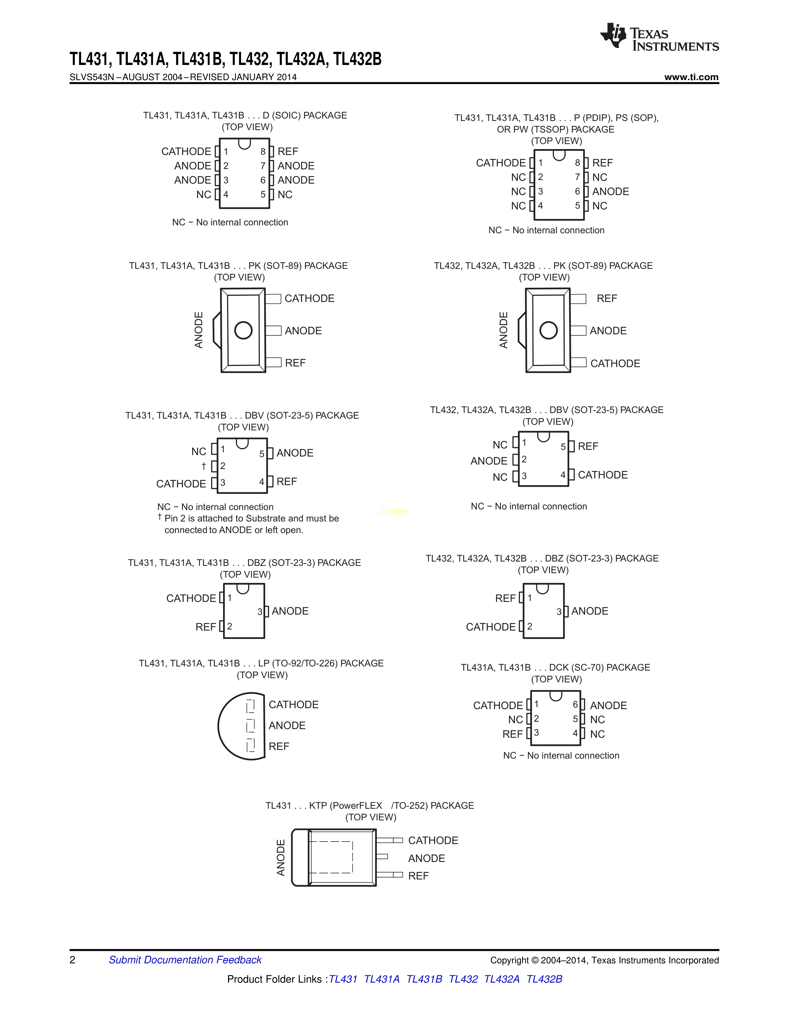 TL431BCDBZR数据手册SOT-23(SOT-23-3)封装TI(德州仪器)PDF规格书,中英