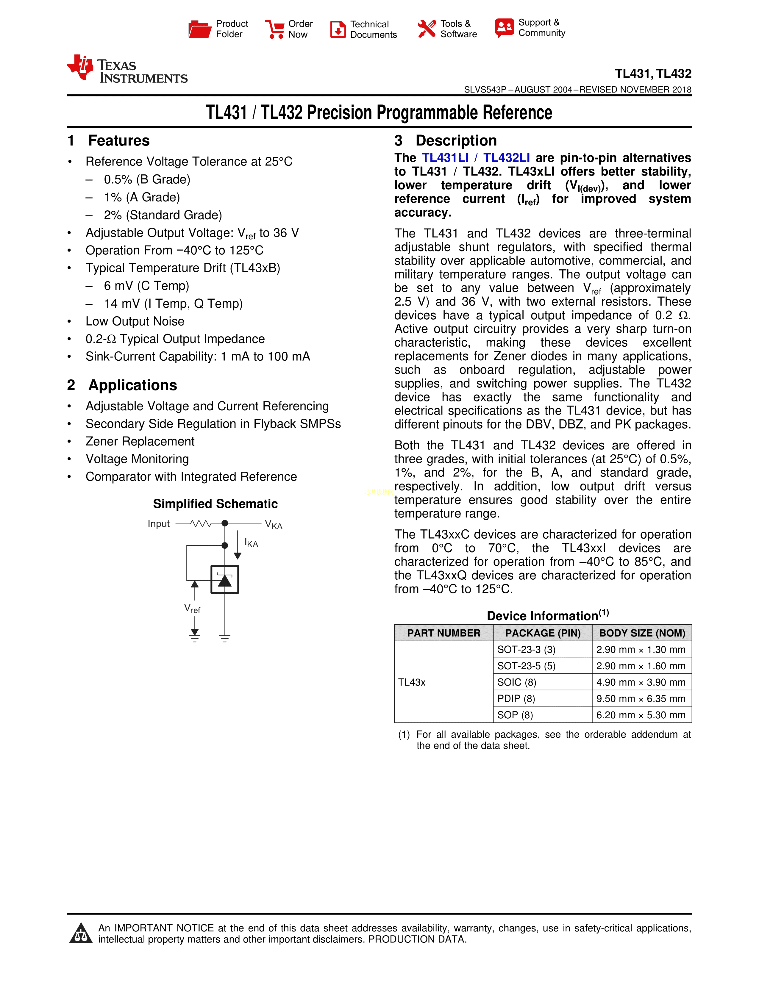 TL431IDBVR数据手册SOT-23-5封装TI(德州仪器)PDF规格书,中英文下载