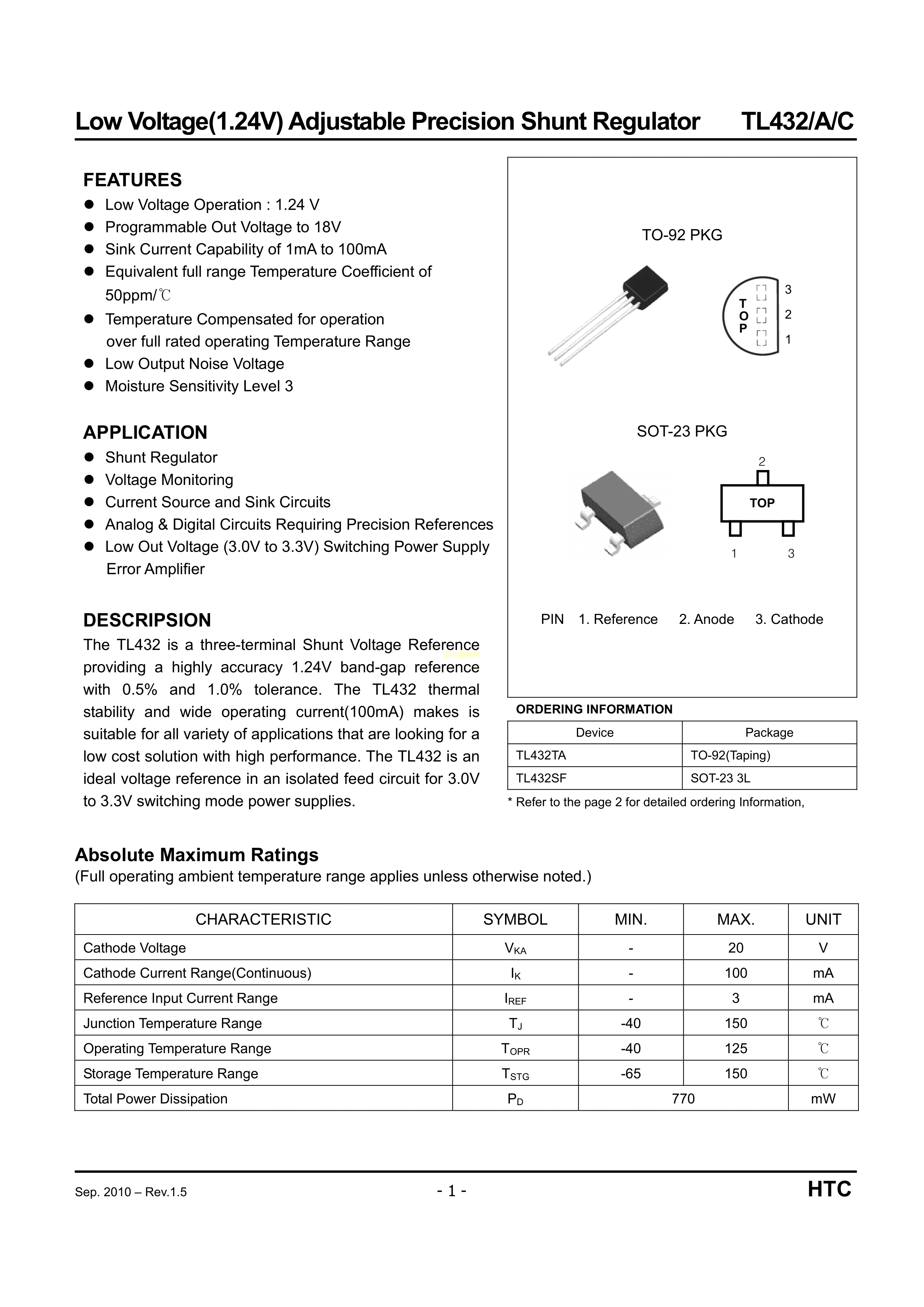 TL432ASF数据手册SOT-23(SOT-23-3)封装HTCPDF规格书,中英文下载