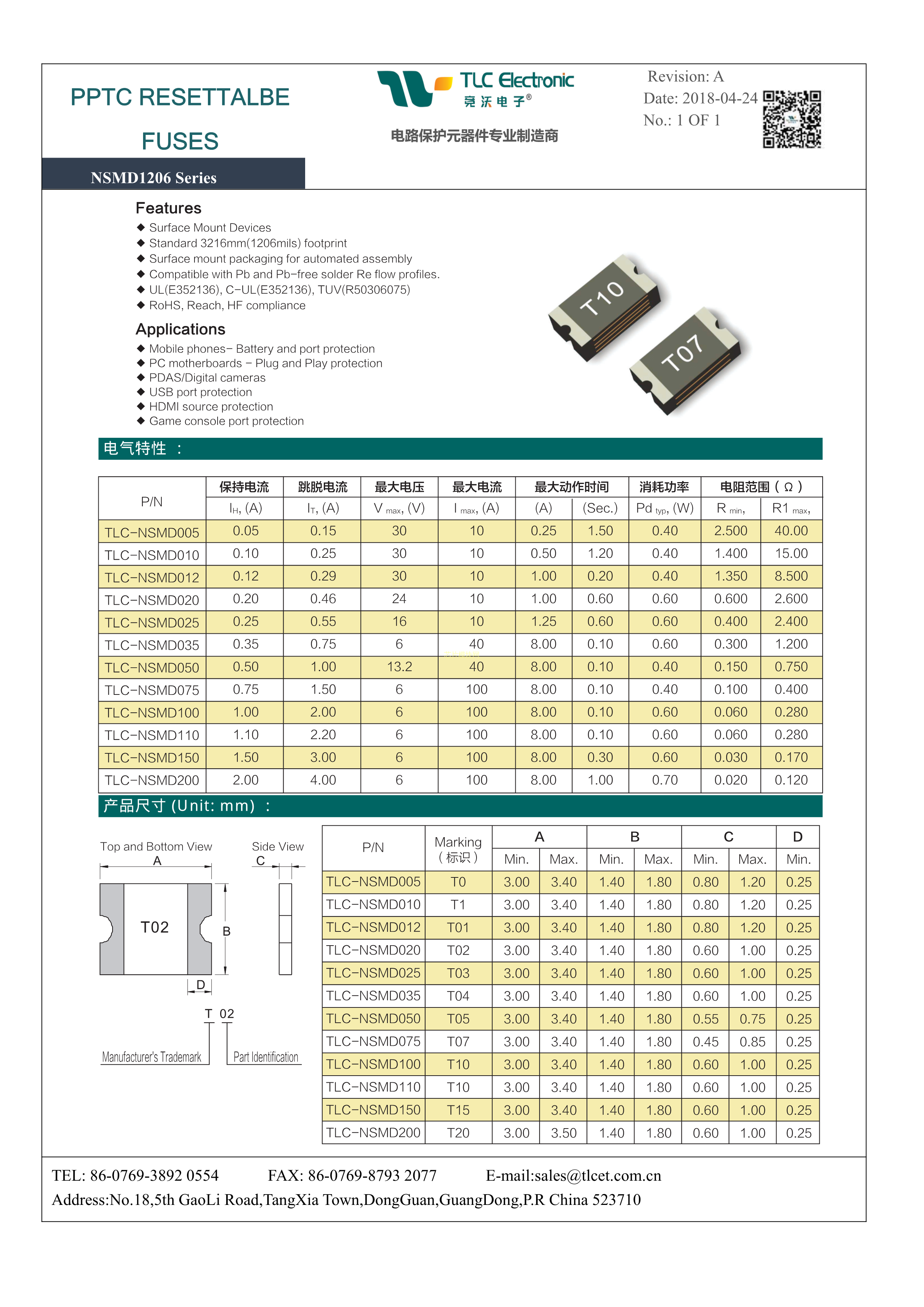 TLC-NSMD200数据手册1206封装TLC(竞沃)PDF规格书,中英文下载