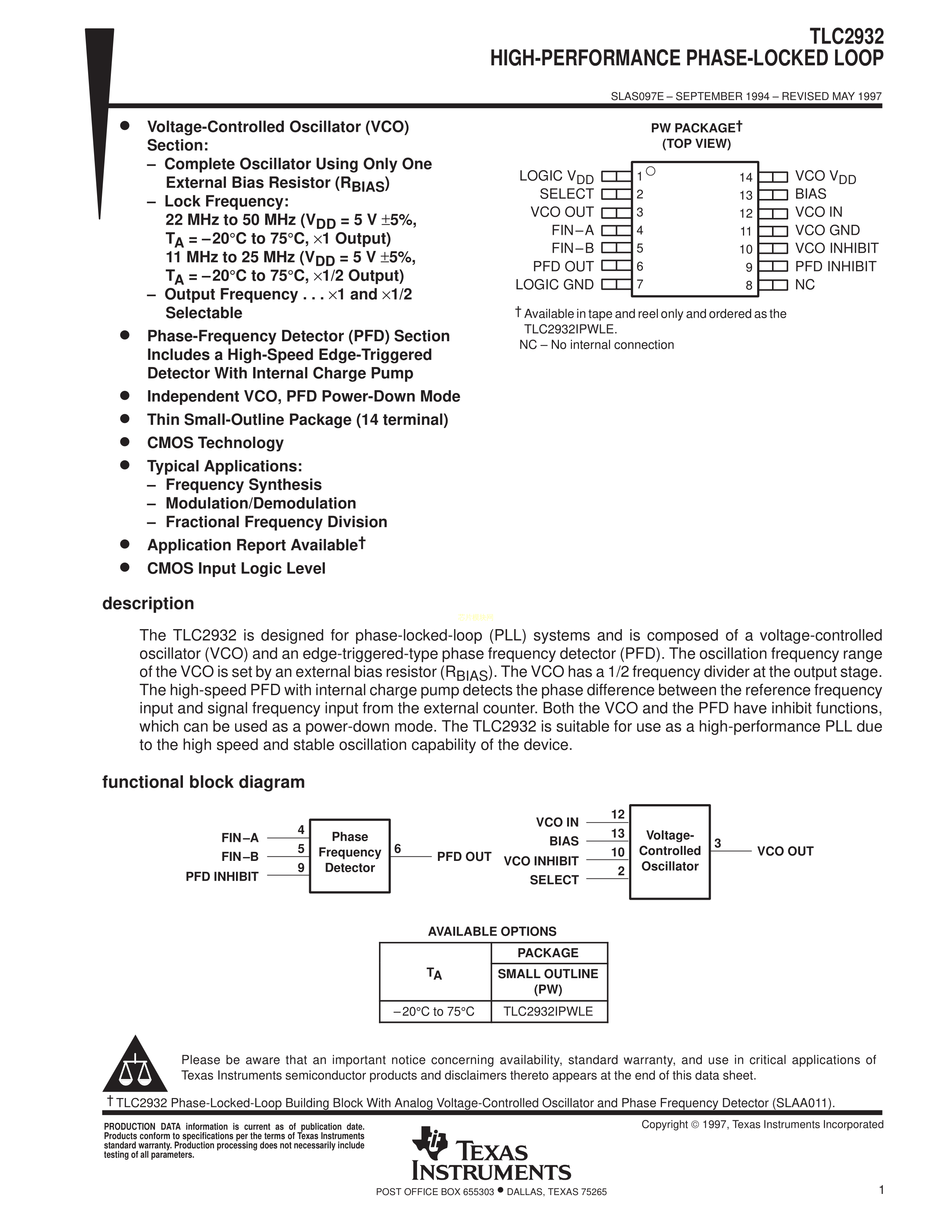 TLC2932IPWR数据手册TSSOP-14封装TI(德州仪器)PDF规格书,中英文下载
