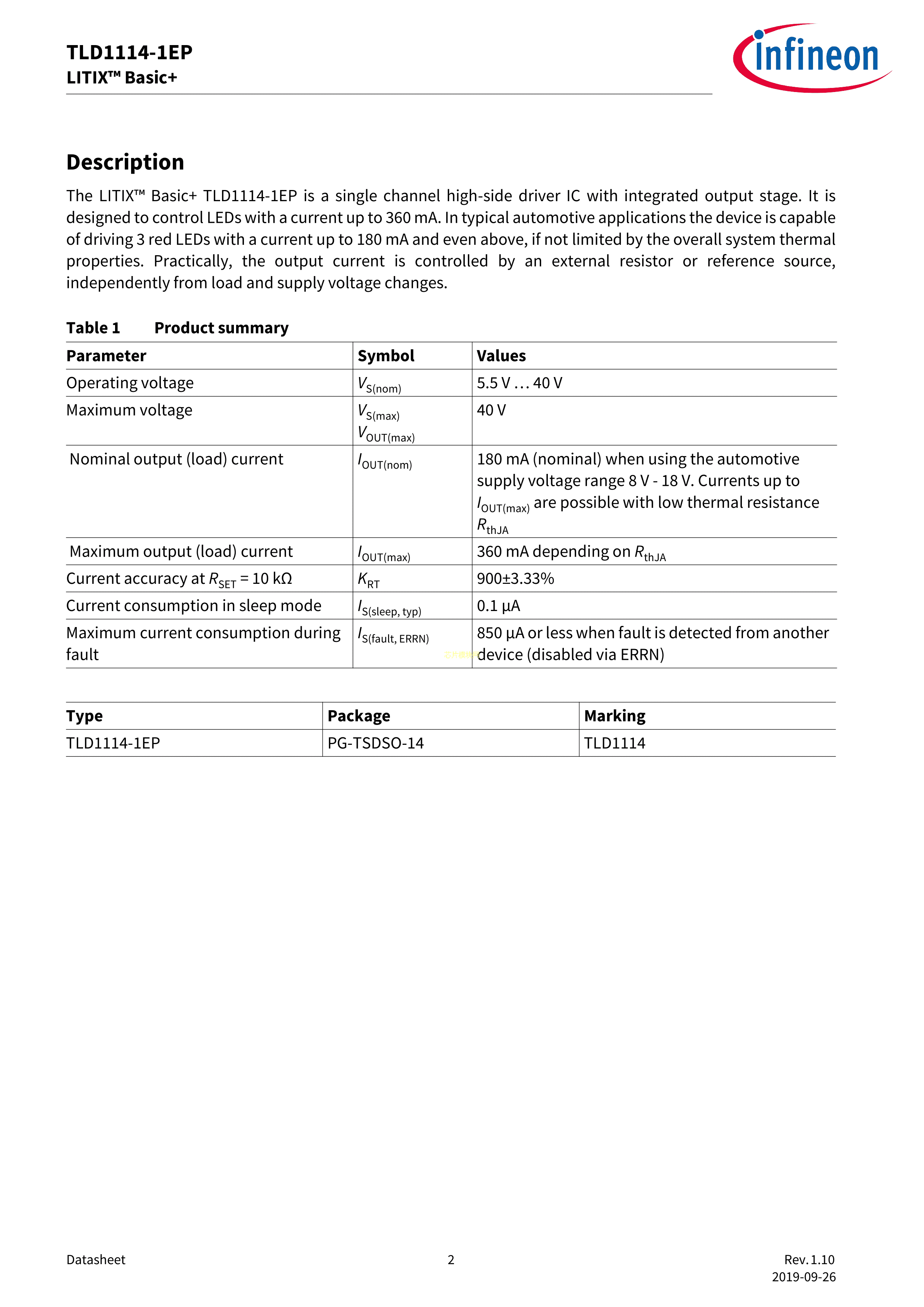 TLD1114-1EP数据手册PG-TSDSO-14封装Infineon(英飞凌)PDF规格书,中英