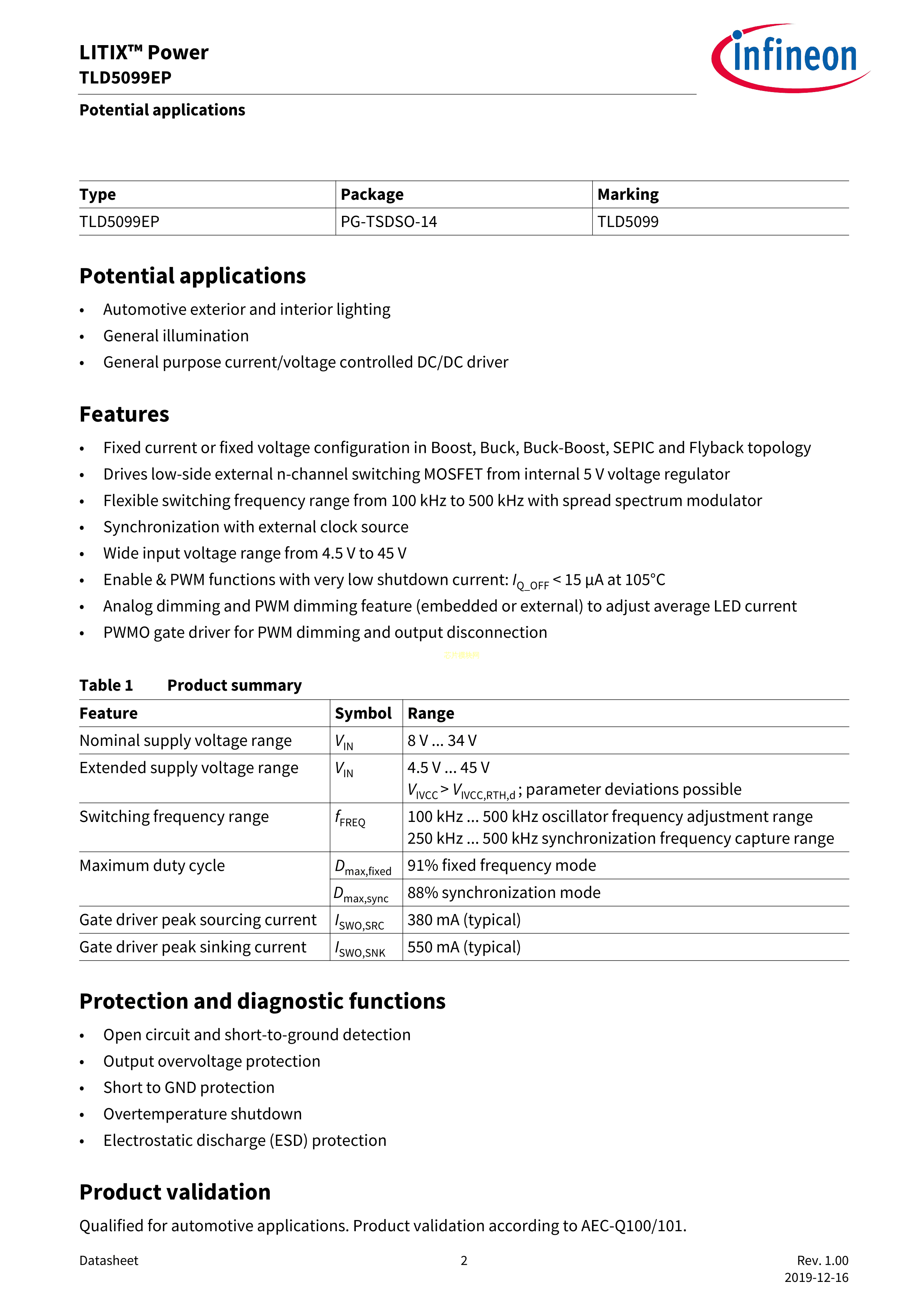 TLD5099EP数据手册PG-TSDSO-14封装Infineon(英飞凌)PDF规格书,中英文下