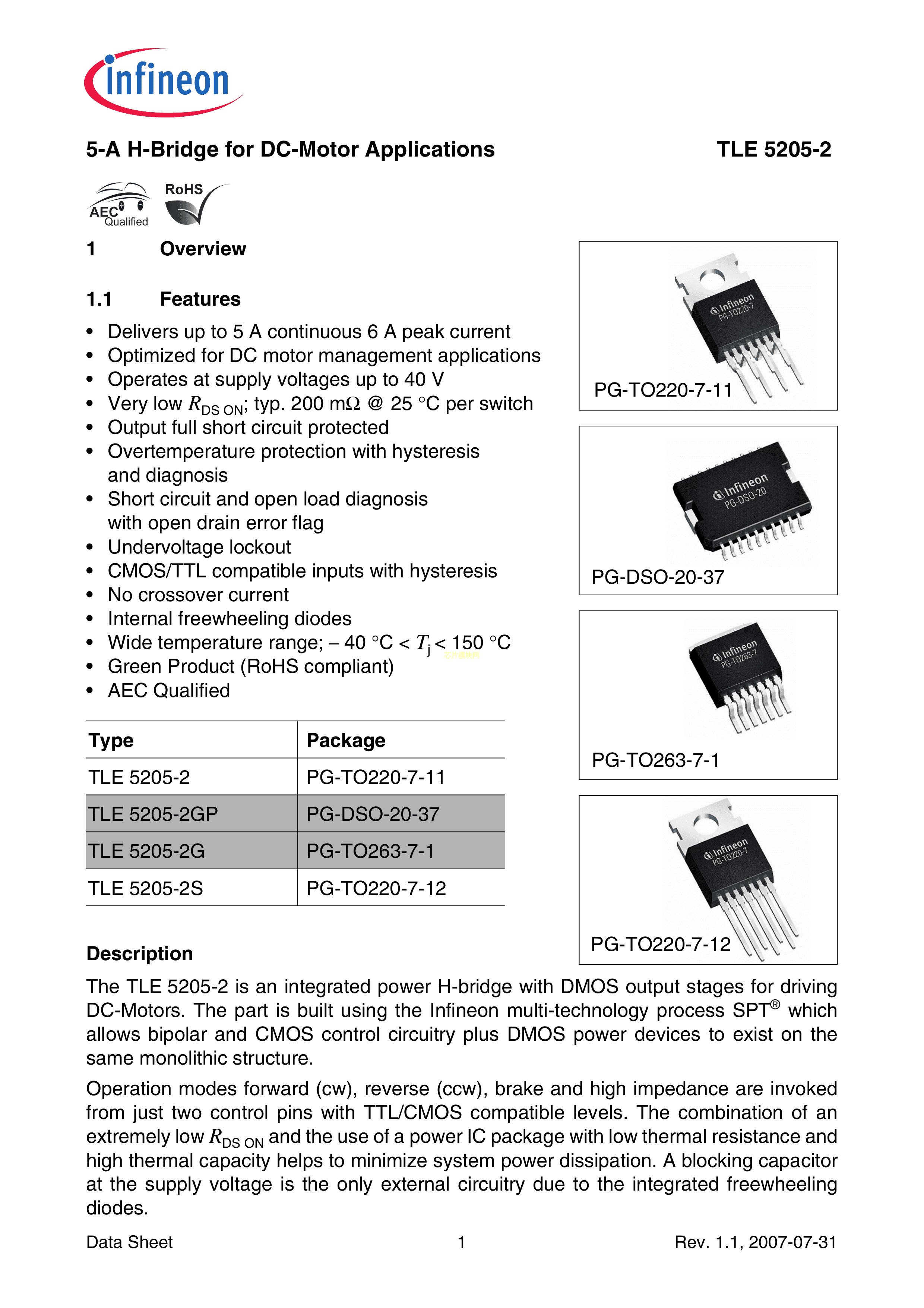 TLE5205-2G数据手册TO-263-7封装Infineon(英飞凌)PDF规格书,中英文下载