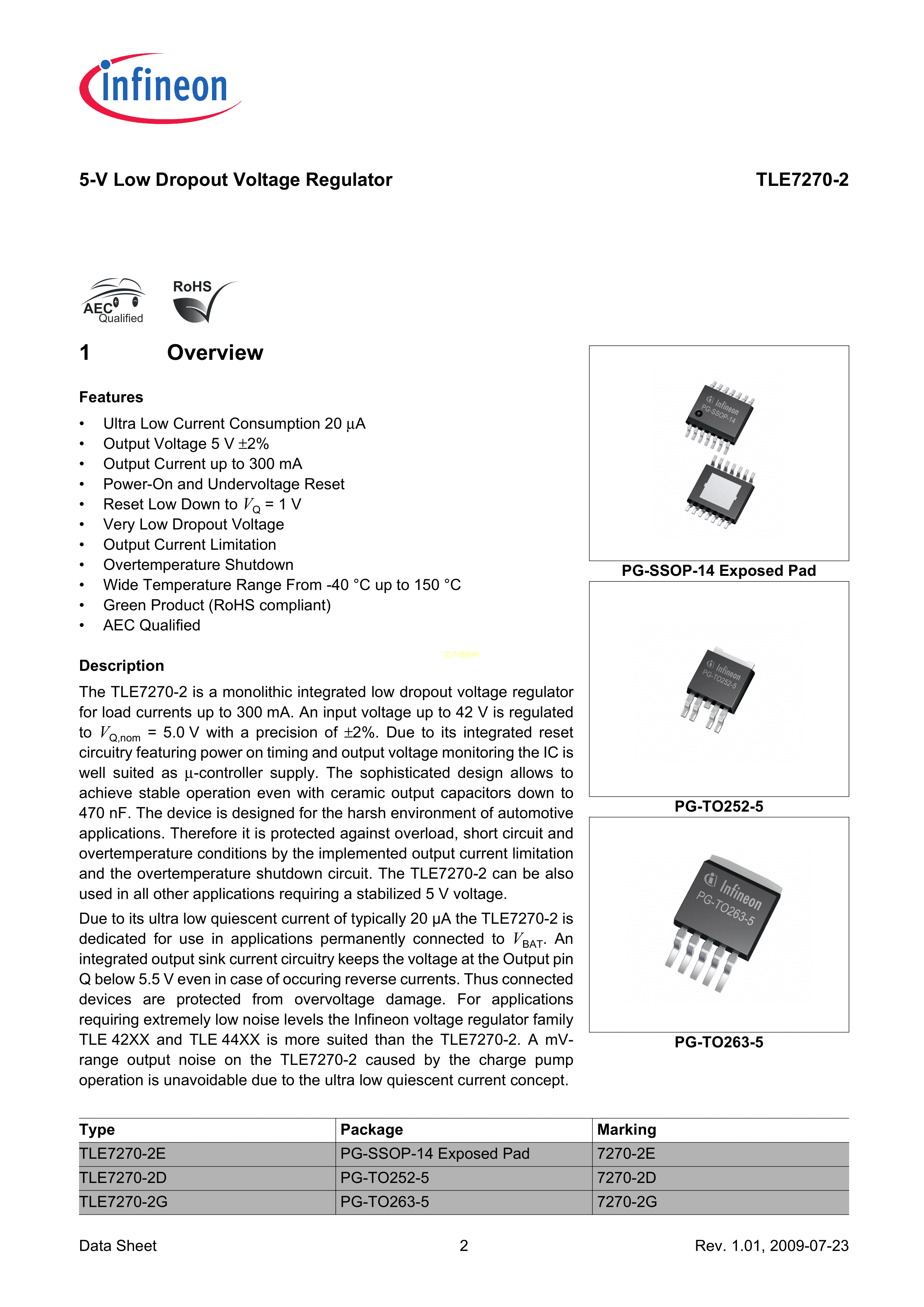 TLE7270-2E数据手册PG-SSOP-14封装Infineon(英飞凌)PDF规格书,中英文下